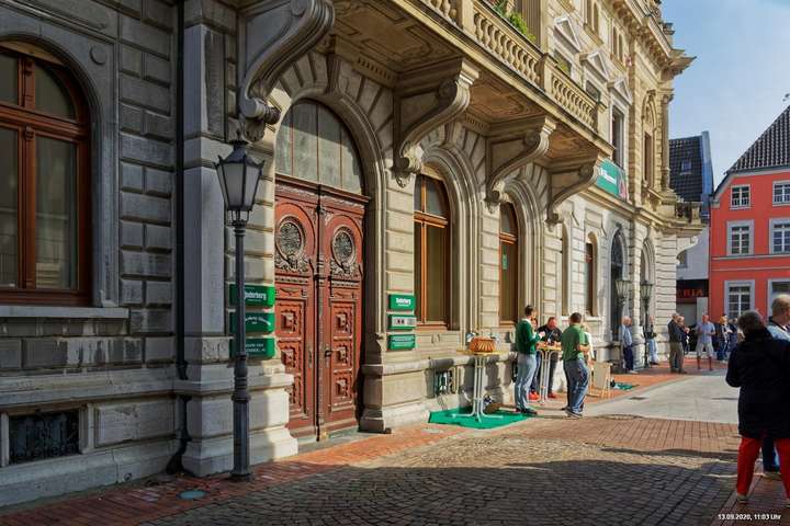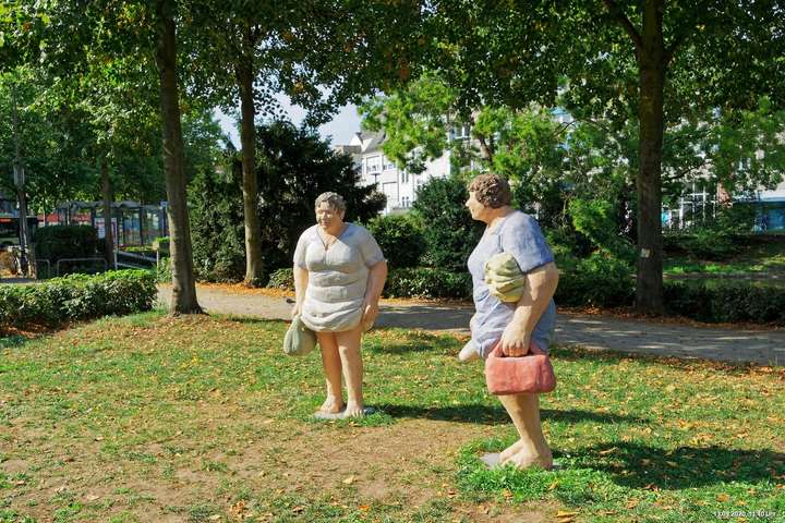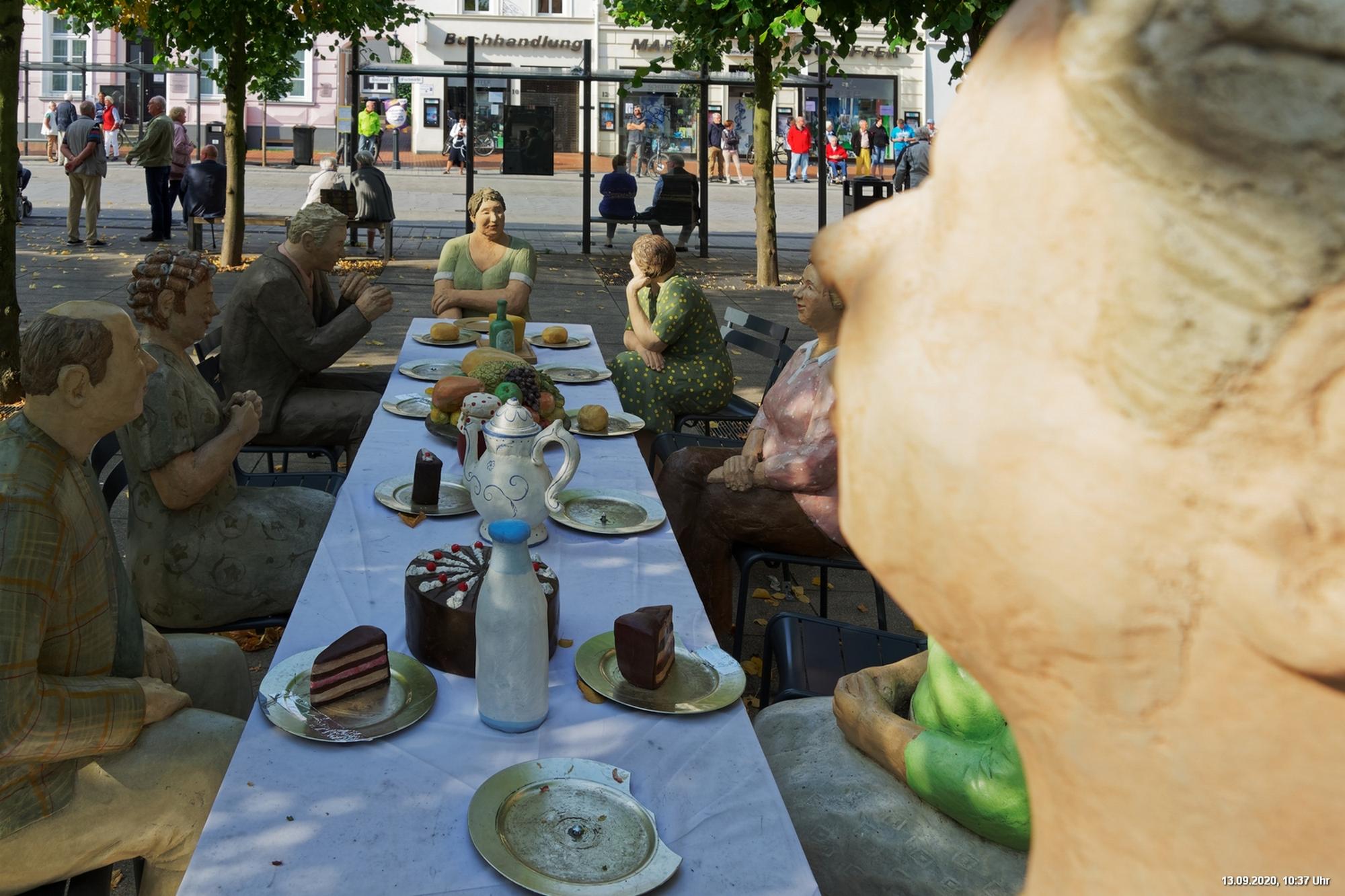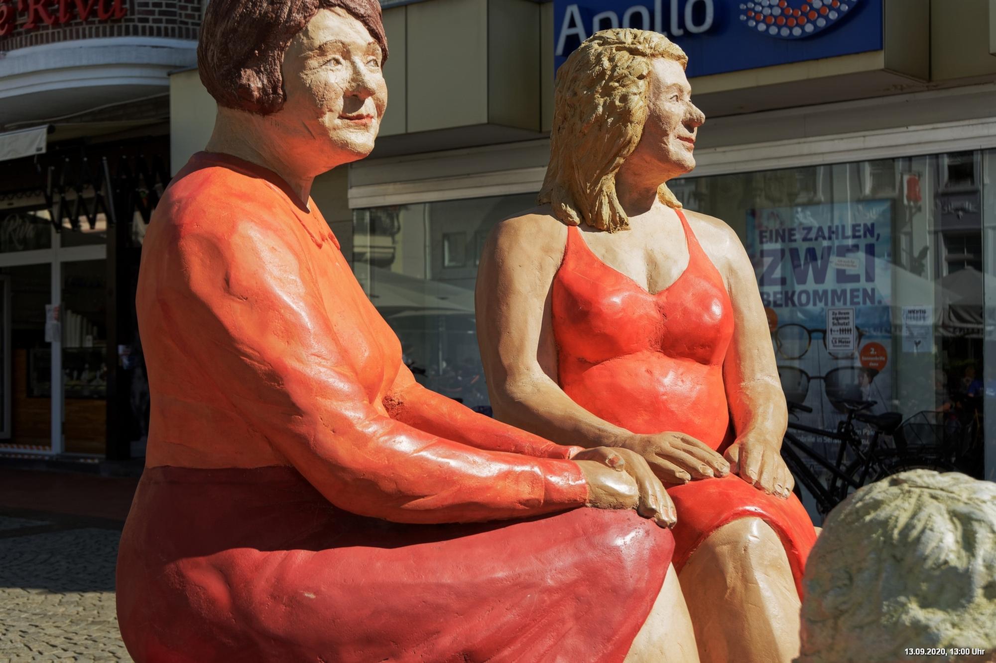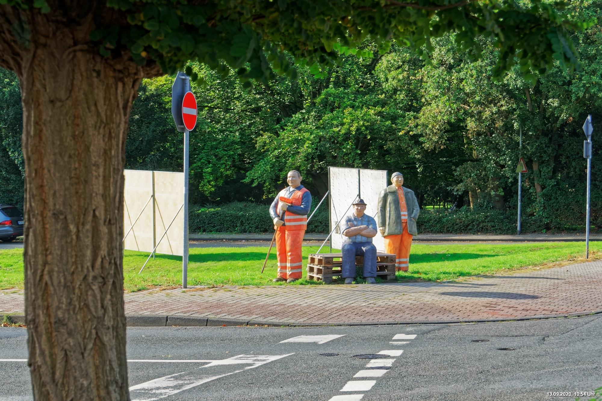 In Rheinberg und Moers standen und saßen sie verstreut herum und wirkten manchmal so normal, dass man genauer hinsehen musste, um sie zu entdecken. An der großen Tafel wollte man sie ansprechen und sich zu ihnen setzen – Alltagsmenschen eben! So ganz nebenbei haben wir natürlich auch ein weinig von den beiden Städten gesehen. Es war interessant.