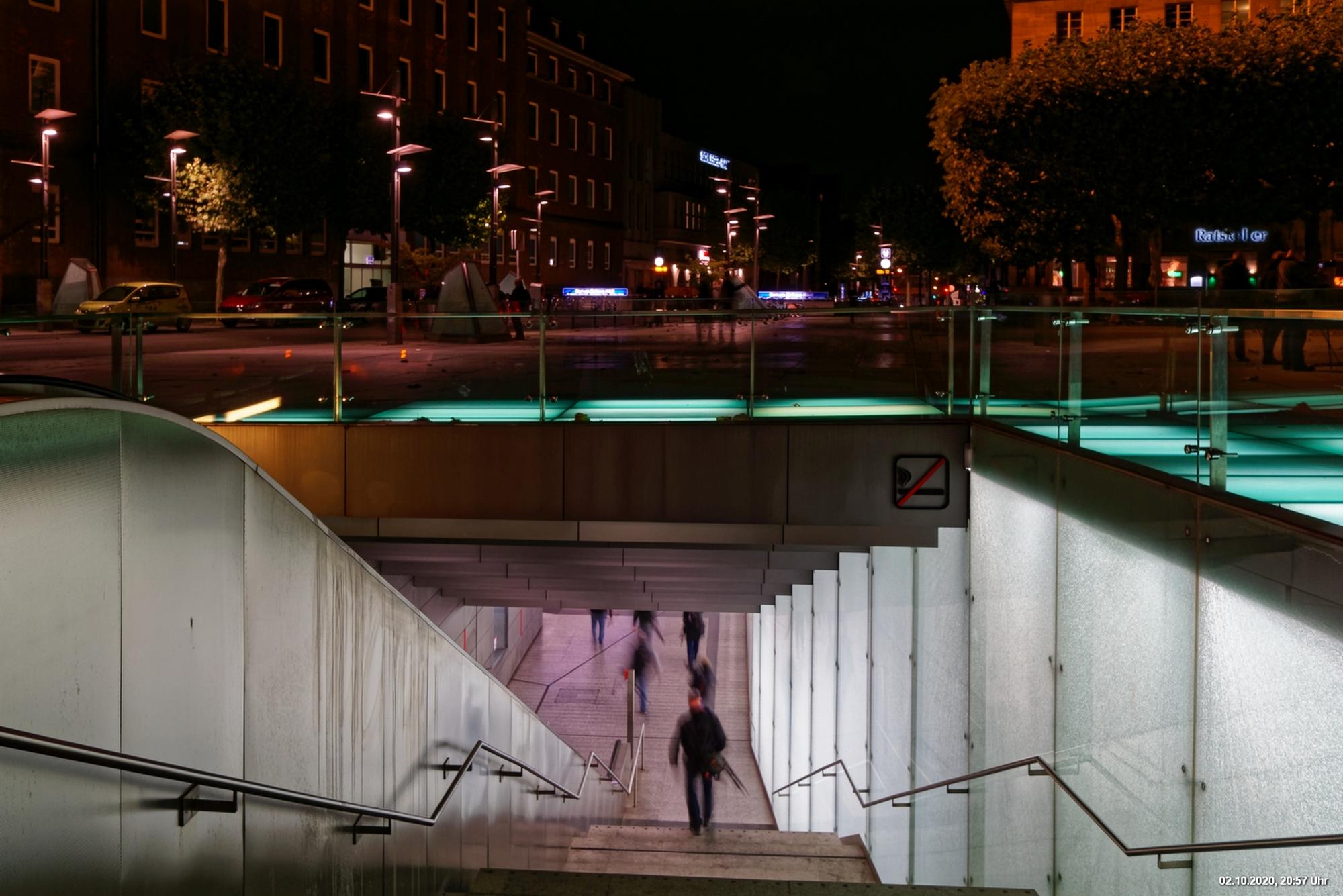 Wieder einmal trafen wir uns am Brennpunkt der Nacht, dem „Bermuda 3Eck“. Selbst bei frischen Temperaturen ist es dort immer rappelvoll – es gibt Unmengen von Lokalen. Wir haben den Trubel (Corona bedingt) gemieden und haben uns einige interessante Punkt angesehen. Besonders interessant war der U-Bahn-Bahnhof am Rathaus.