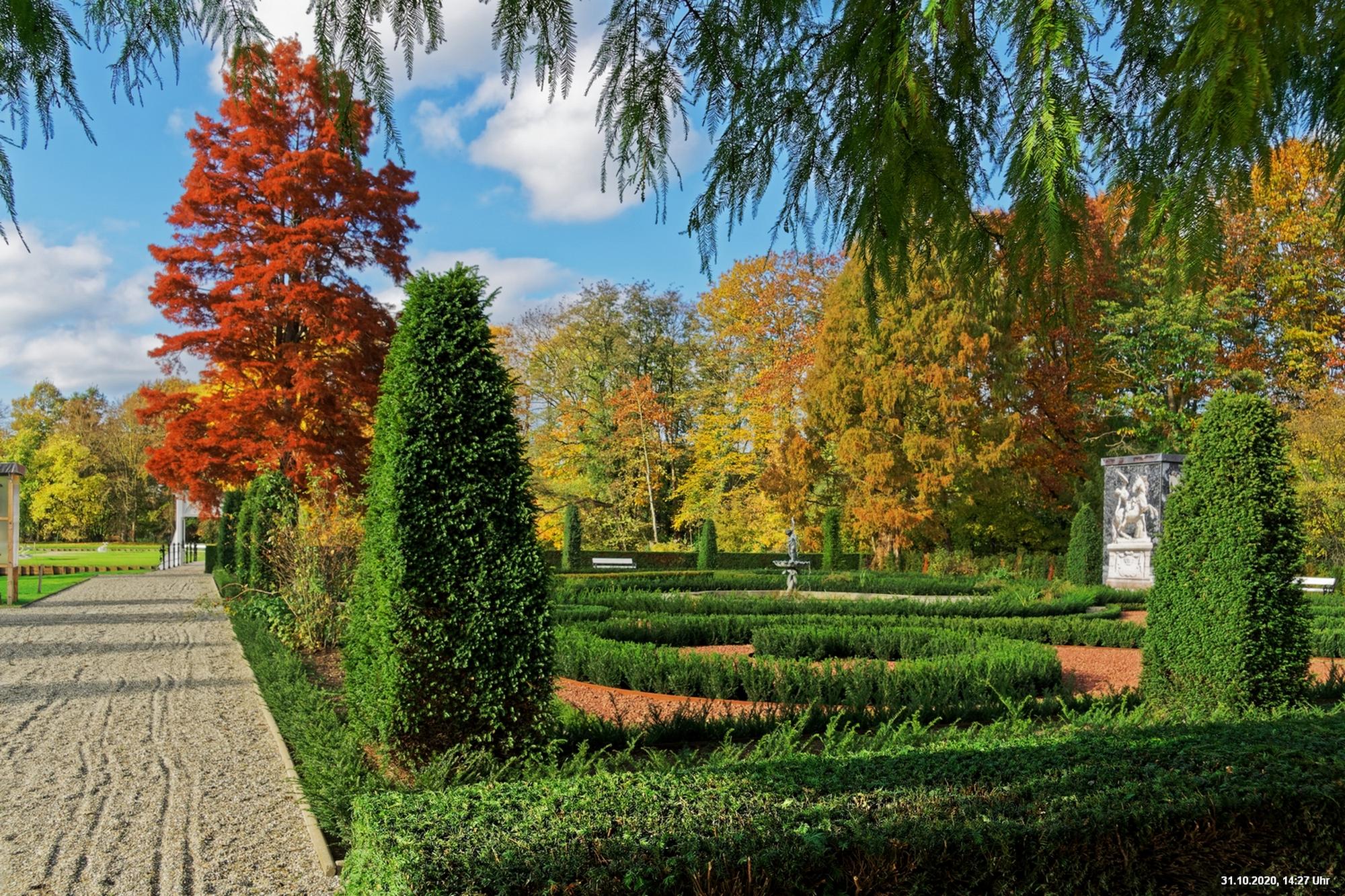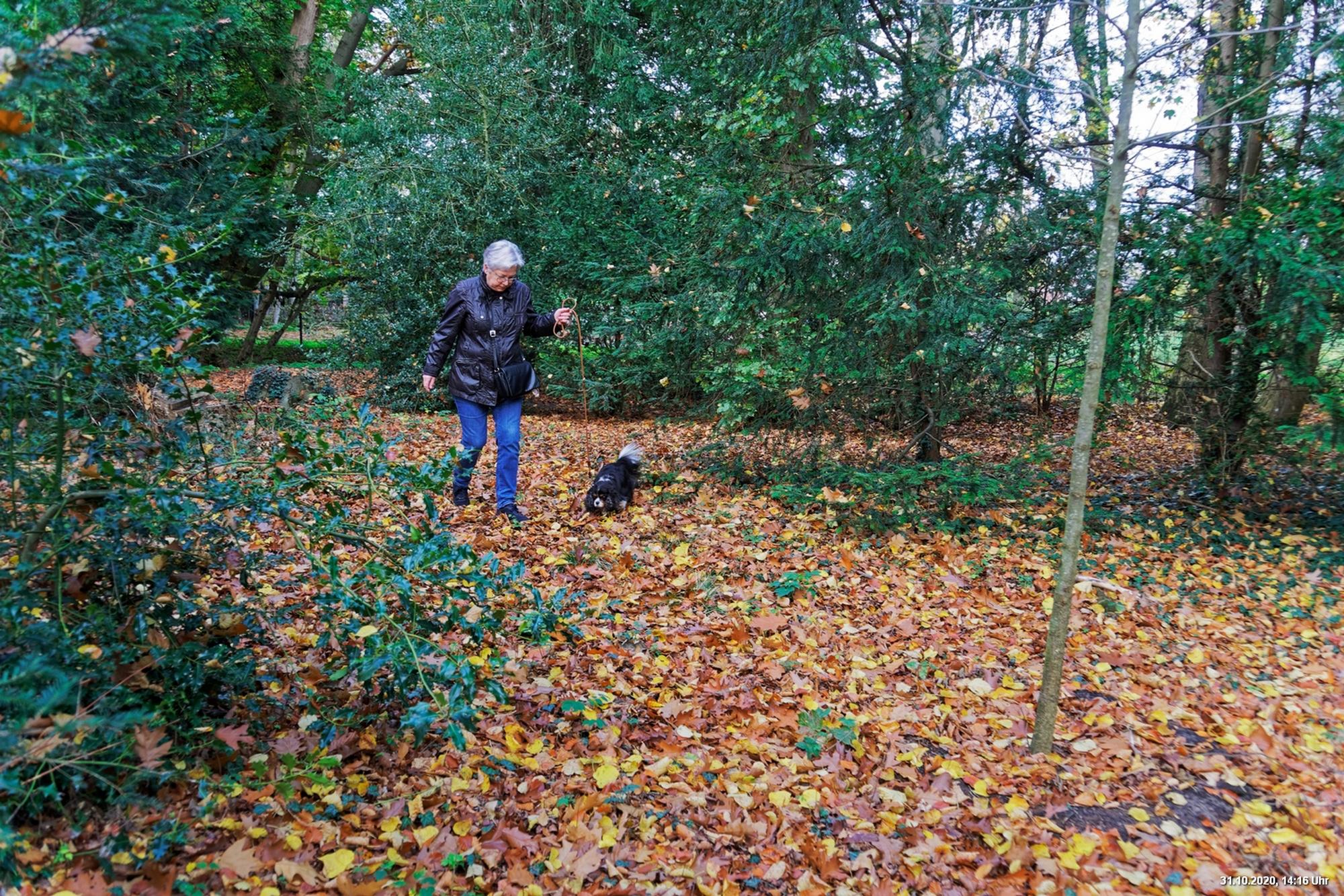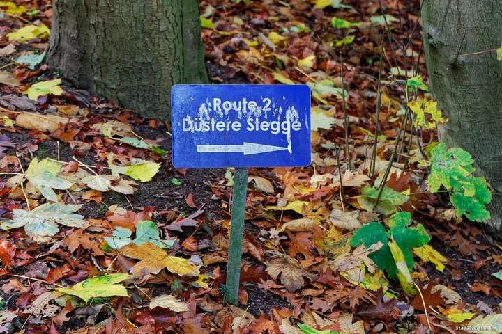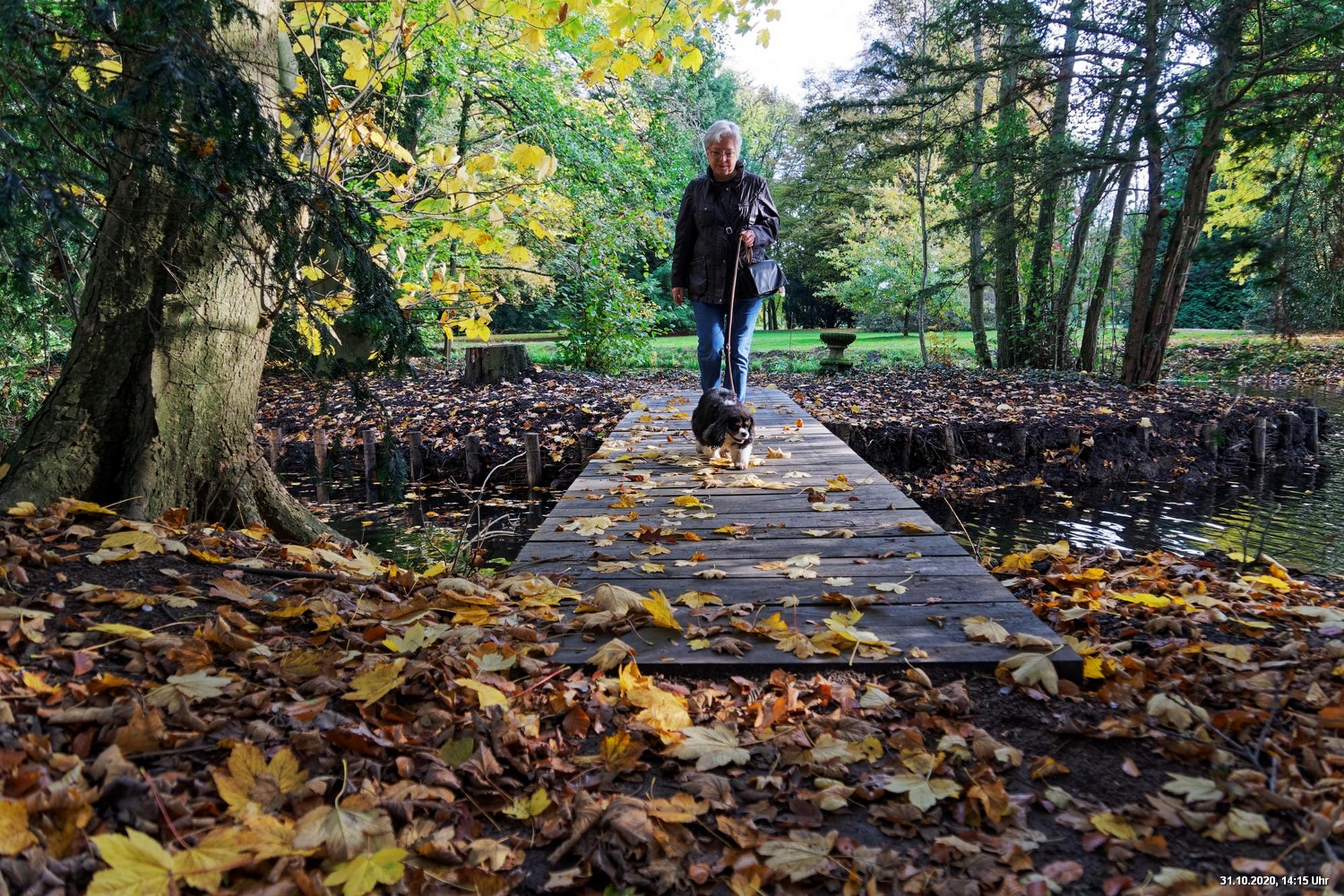 Der Herbst war ziemlich verregnet und so haben wir heute die wenigen schönen Stunden für diesen kleinen Ausflug genutzt. Unser Vorteil zu Coronazeiten: Die Parkanlage ist verschlossen und nur gegen einen kleinen Eintritt zugänglich. Vielleicht auch darum haben wir nicht eine einzige Person gesehen! Wir waren nach einiger Zeit gerne wieder einmal dort. Wir sind auch den Seitenweg "Düstere Stegge" genutzt, der uns auf schmalen, fast unbefestigten Wegen und über kleine Brücken ohne Geländer führte. Es ist ein schönes Fleckchen Erde dort.