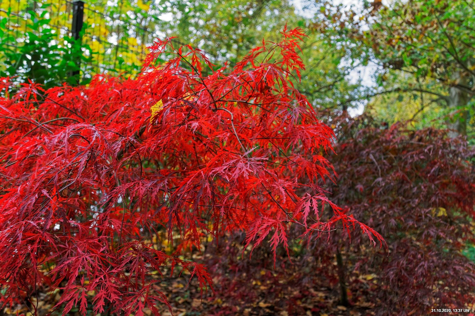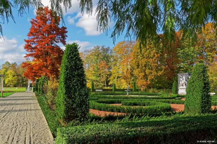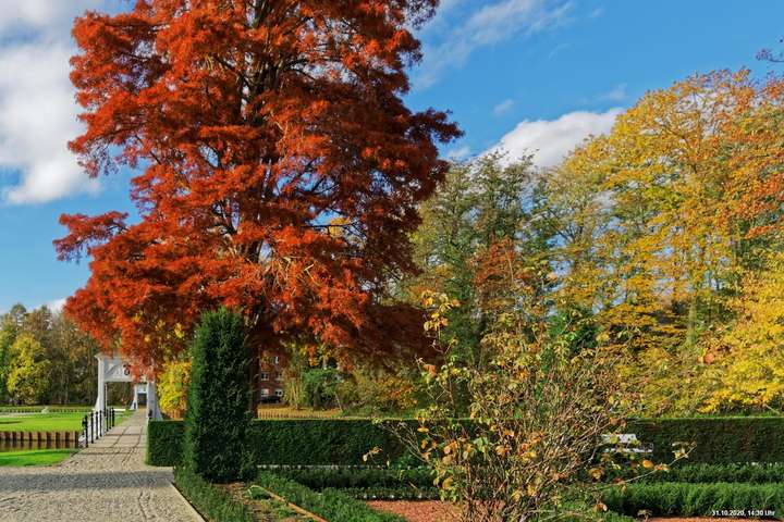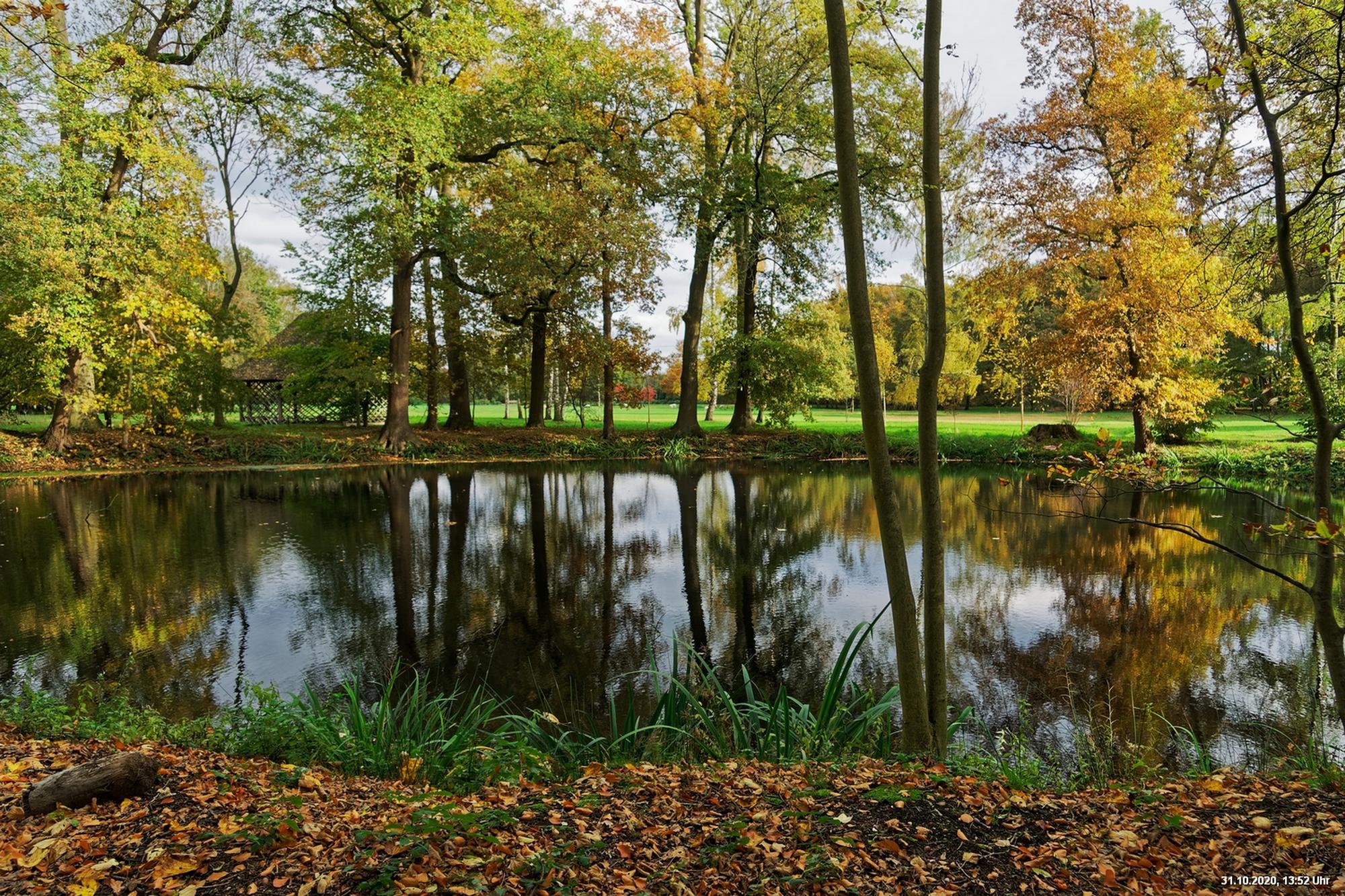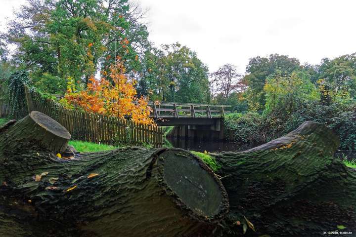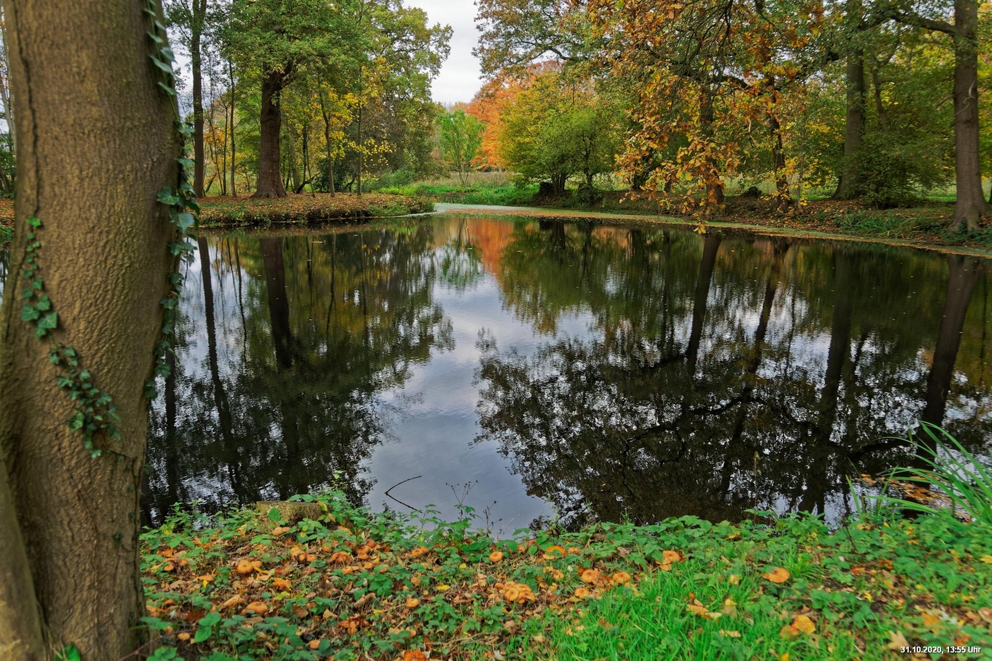Der Herbst war ziemlich verregnet und so haben wir heute die wenigen schönen Stunden für diesen kleinen Ausflug genutzt. Unser Vorteil zu Coronazeiten: Die Parkanlage ist verschlossen und nur gegen einen kleinen Eintritt zugänglich. Vielleicht auch darum haben wir nicht eine einzige Person gesehen! Wir waren nach einiger Zeit gerne wieder einmal dort. Wir sind auch den Seitenweg "Düstere Stegge" genutzt, der uns auf schmalen, fast unbefestigten Wegen und über kleine Brücken ohne Geländer führte. Es ist ein schönes Fleckchen Erde dort.