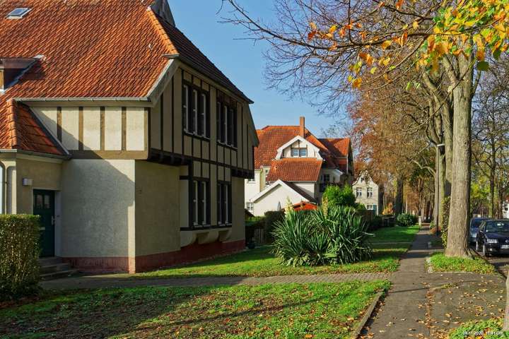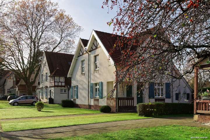 Zwischen 1909 und 1923 wurde die Siedlung mit 136 Gebäuden und 459 Wohnungen fertiggestellt. Ein Ensemble nach der Reformidee der „Gartenstadt“ war entstanden. Licht, Grün und scheinbar ländliche Idylle für die Arbeiter und „Beamten“ der Zeche. Grünflächen und gut geformte Plätze umrahmen die attraktiven Wohngebäude. Es fällt auf, dass fast jedes Haus anders gestaltet ist – und dennoch bilden sie alle zusammen ein äußerst harmonisches Ensemble. Und noch etwas fällt auf: Es ist alles sauber und gut gepflegt – eine Idylle.