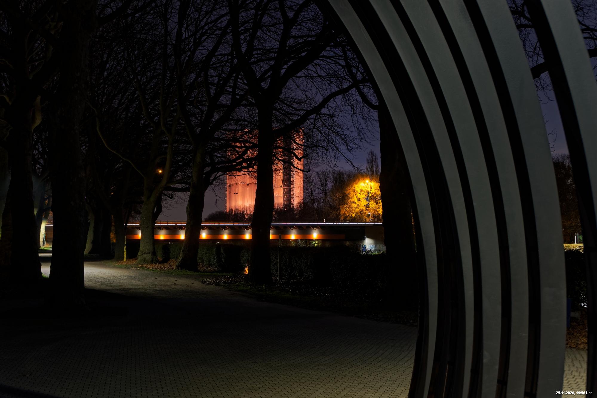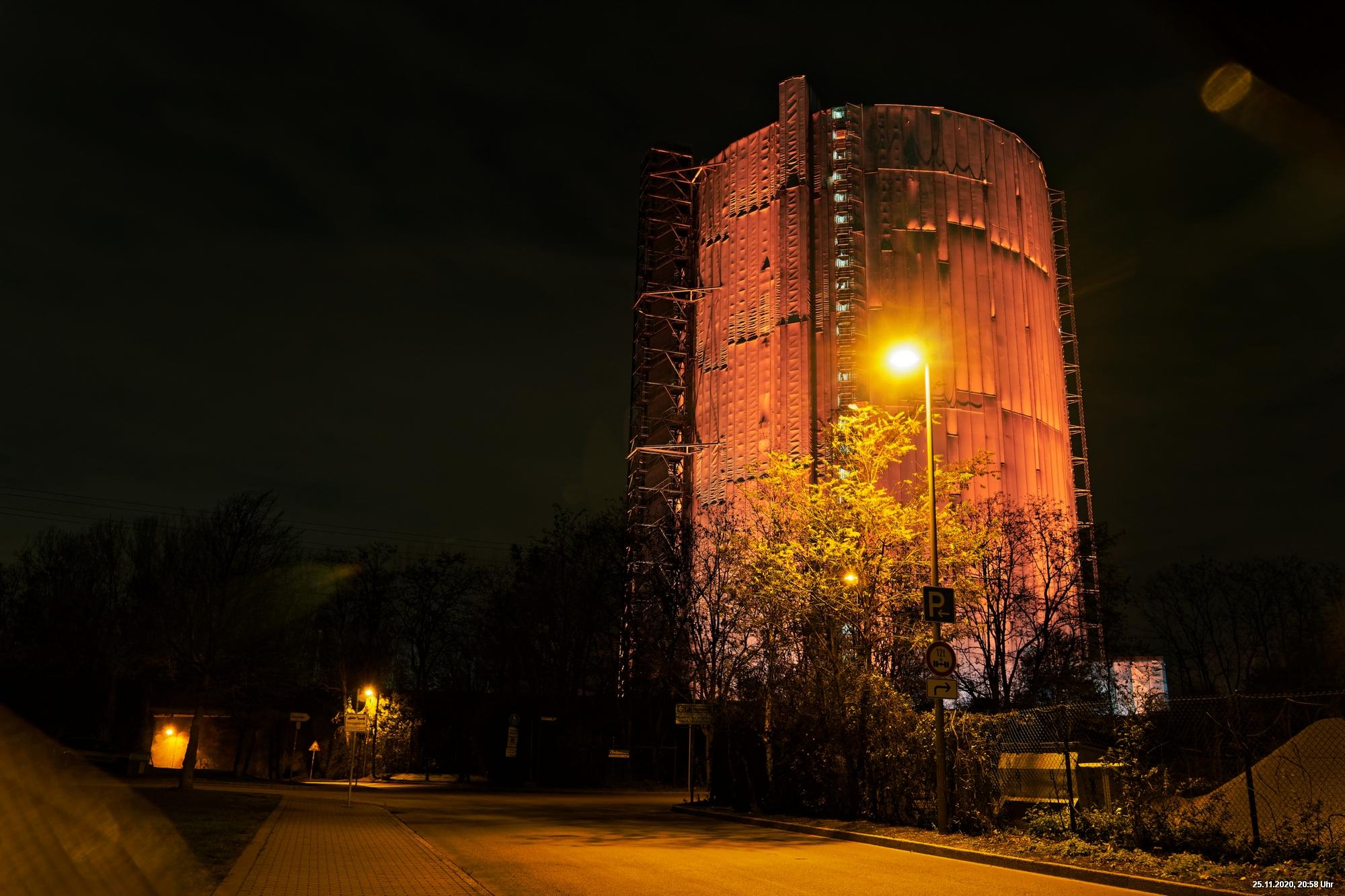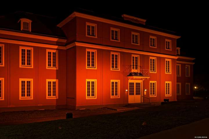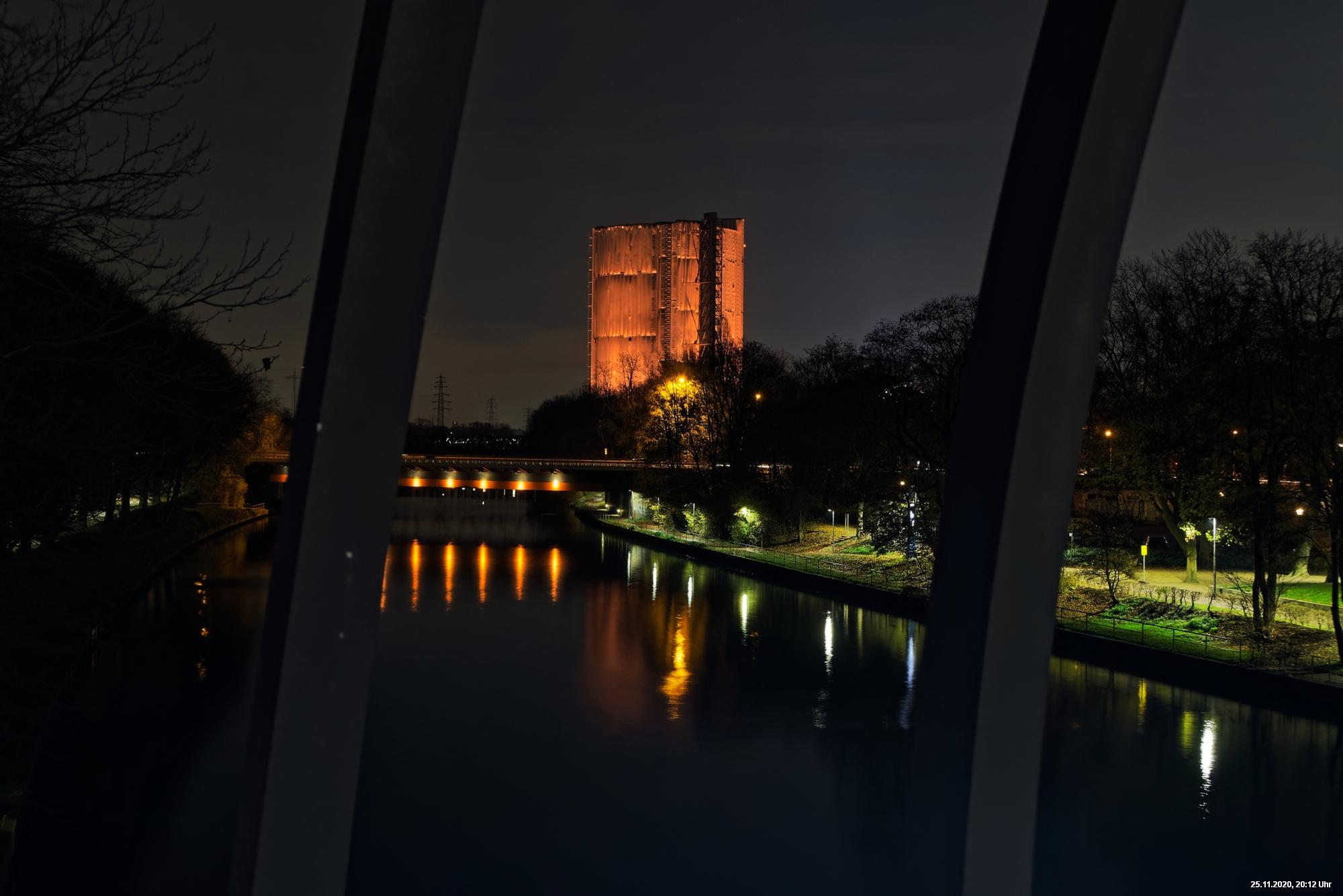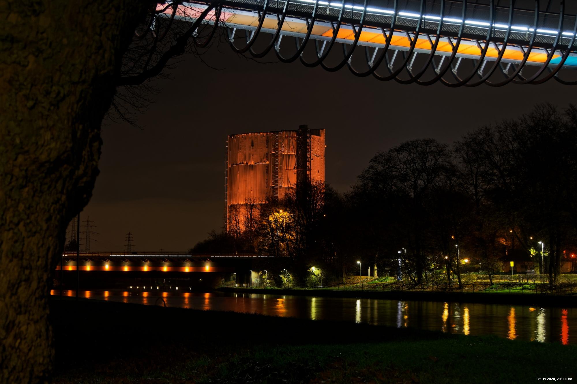 Es war ein weltweit sichtbares Zeichen gegen Gewalt an Frauen durch orangefarbene Kleidung, Fahnen und Beleuchtungen. Das war schon das Positive. Negativ schien, dass die vielen Mühen orangefarbene Beleuchtung an markanten Gebäuden (hier in Oberhausen das Schloss und der Gasometer) anzubringen ganz einfach an der Farbe "Orange" scheiterten. Wenn eine Fassade schon rot ist, dann scheitert orange. Genau so wie an der refelxionsmindernden Schutzverkleidung der Gerüste an der Großbaustelle des Gasometers in Oberhausen. Viele Gebäude wurden somit leider übersehen und wurden erst durch direkte Nähe wirklich auffällig.
