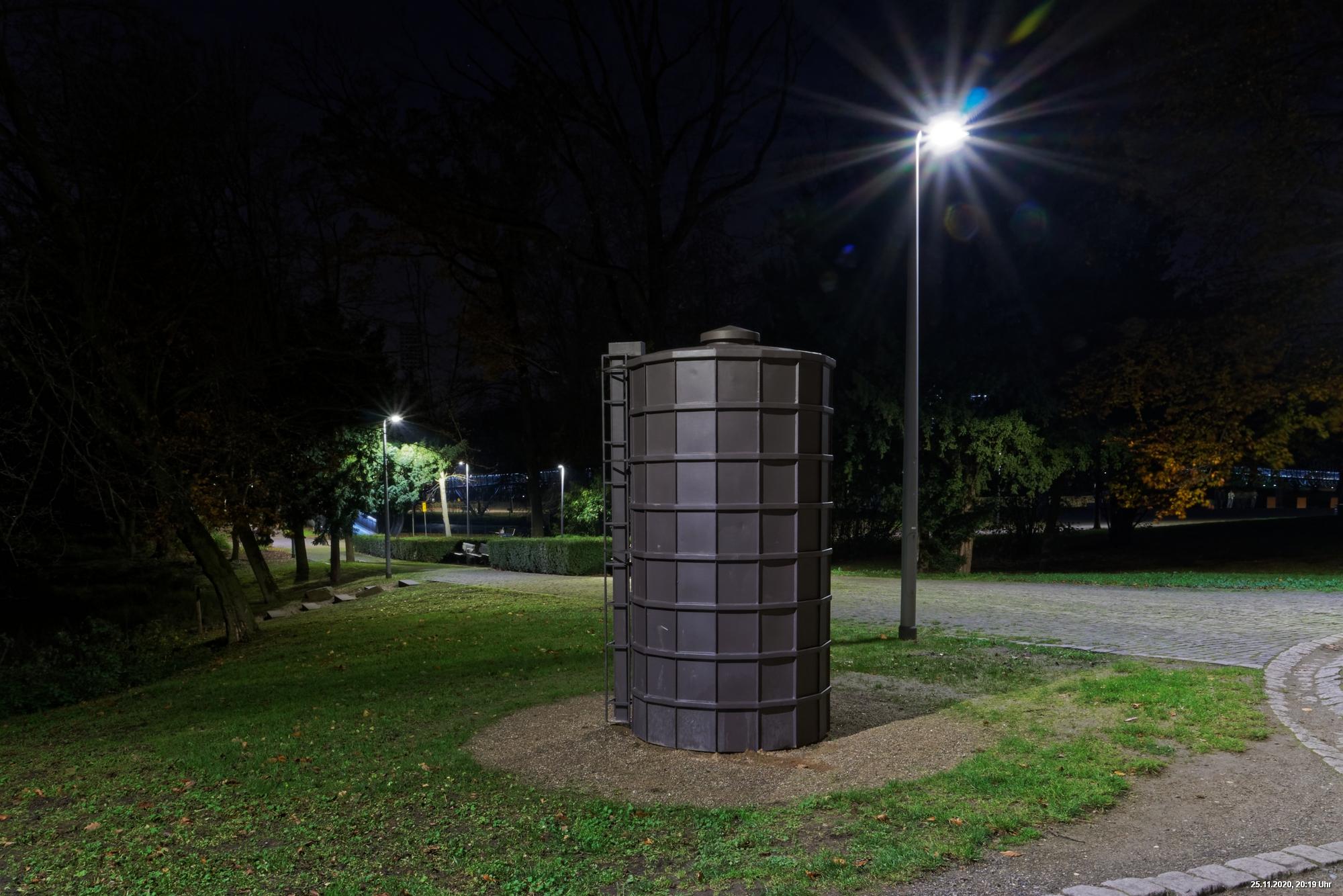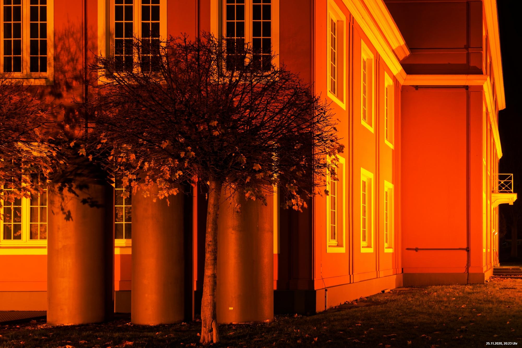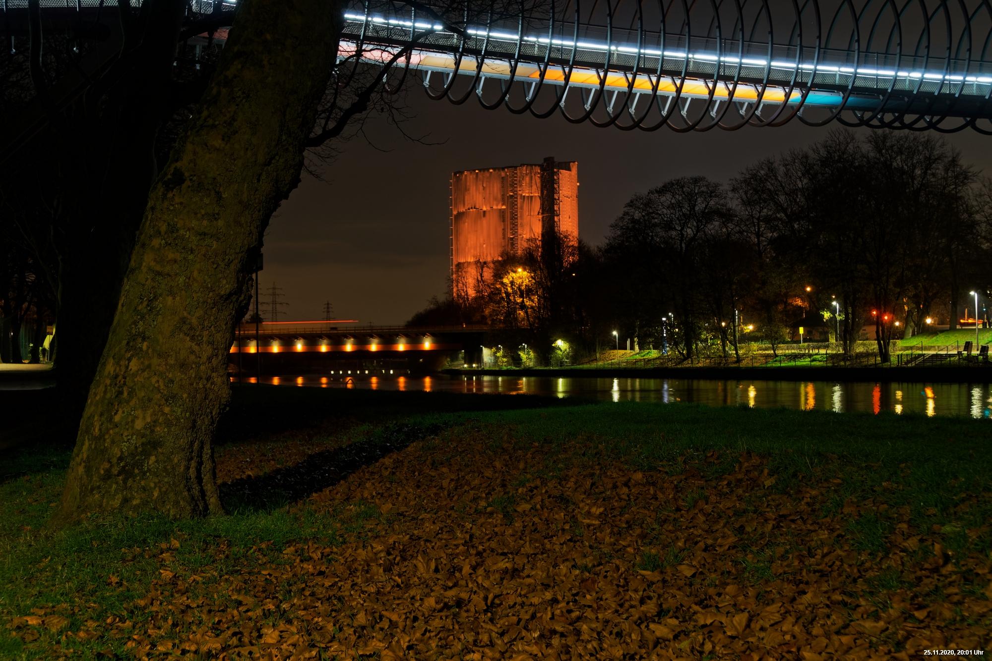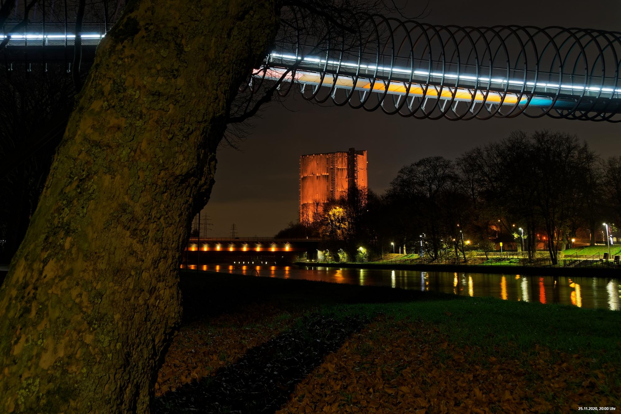 Es war ein weltweit sichtbares Zeichen gegen Gewalt an Frauen durch orangefarbene Kleidung, Fahnen und Beleuchtungen. Das war schon das Positive. Negativ schien, dass die vielen Mühen orangefarbene Beleuchtung an markanten Gebäuden (hier in Oberhausen das Schloss und der Gasometer) anzubringen ganz einfach an der Farbe "Orange" scheiterten. Wenn eine Fassade schon rot ist, dann scheitert orange. Genau so wie an der refelxionsmindernden Schutzverkleidung der Gerüste an der Großbaustelle des Gasometers in Oberhausen. Viele Gebäude wurden somit leider übersehen und wurden erst durch direkte Nähe wirklich auffällig.