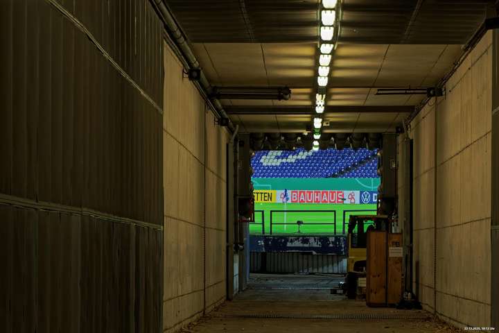 In 2001 wurde sie fertig gestellt und wir waren schon bei der Eröffnung dabei - 2 von möglichen 62.271. Rudi sei dank - da hast Du was tolles geschaffen! Wenigstens leuchtet die Arena (bei Heimspielen), auch wenn auf dem Rasen momentan weniger Leuchten unterwegs sind. Einsam war es nicht. Es gab genügend Ordner vom Wachdienst, die sich die Zeit auch vertreiben mussten. Wenn man sich die gigantischen Parkplatzflächen ansieht - Wahnsinn - und in Corona-Zeiten alles leer.