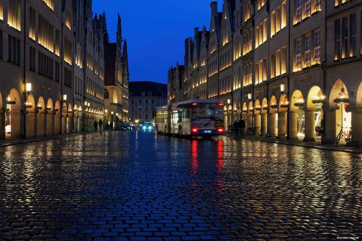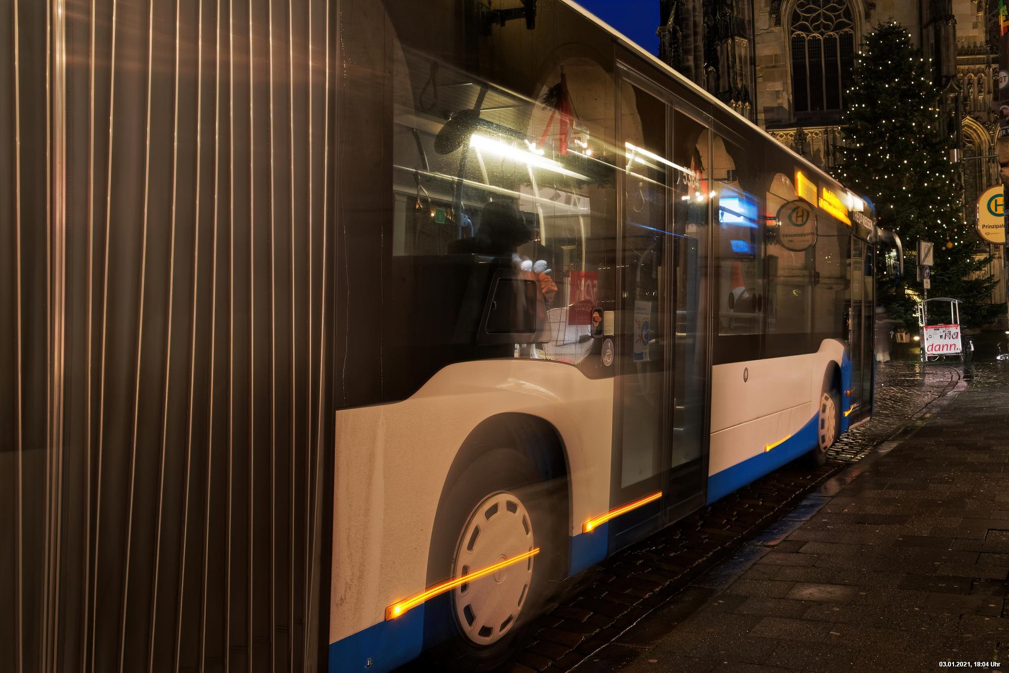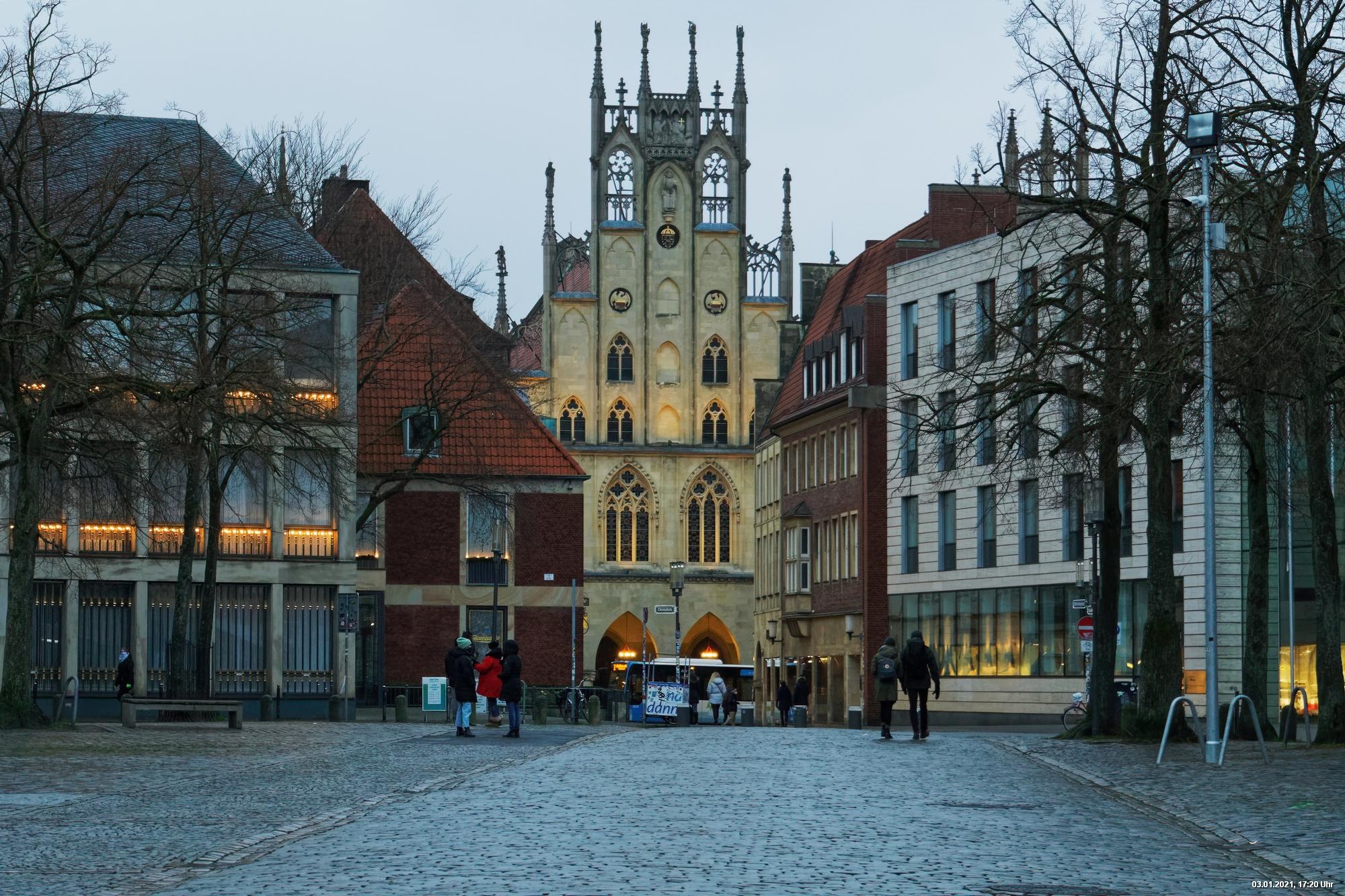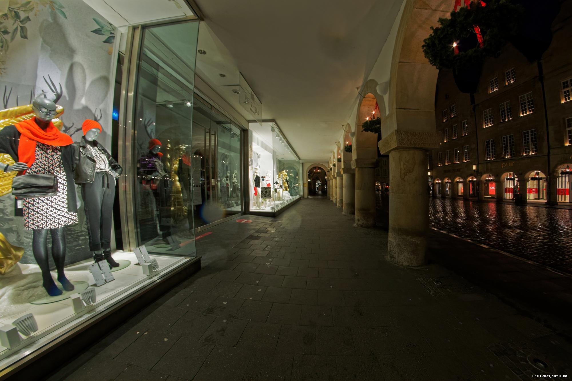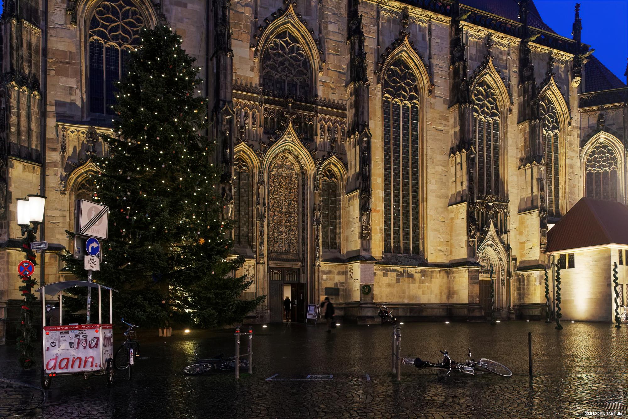 Dann war es also Sonntag, und abends, und dunkel, und kalt, und nass. Corona hat auch in Münster die Straßen ziemlich leergefegt. Die, die sich nach draußen gertaut haben, haben sich sehr diszipliniert an die Schutzverordnung gehalten. So konnten einige Fotos gemacht werden, die ansonsten kaum gelingen würden.