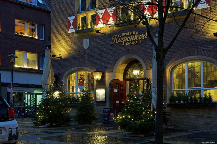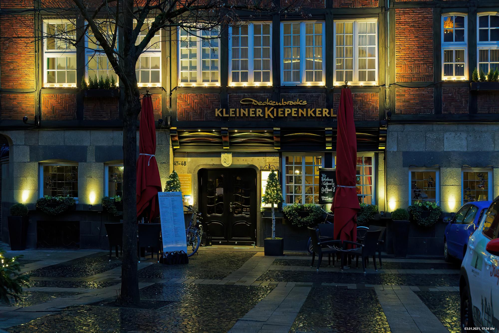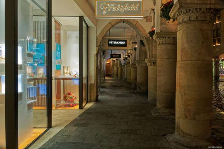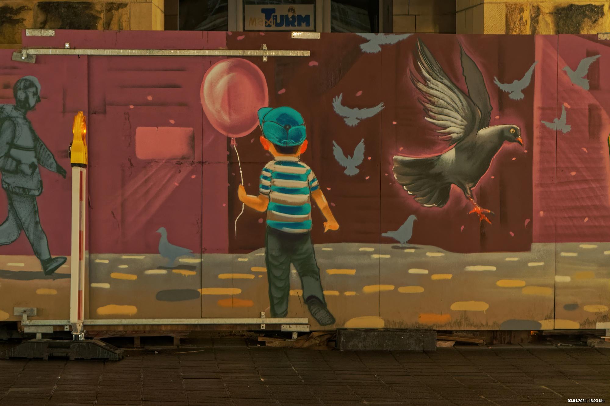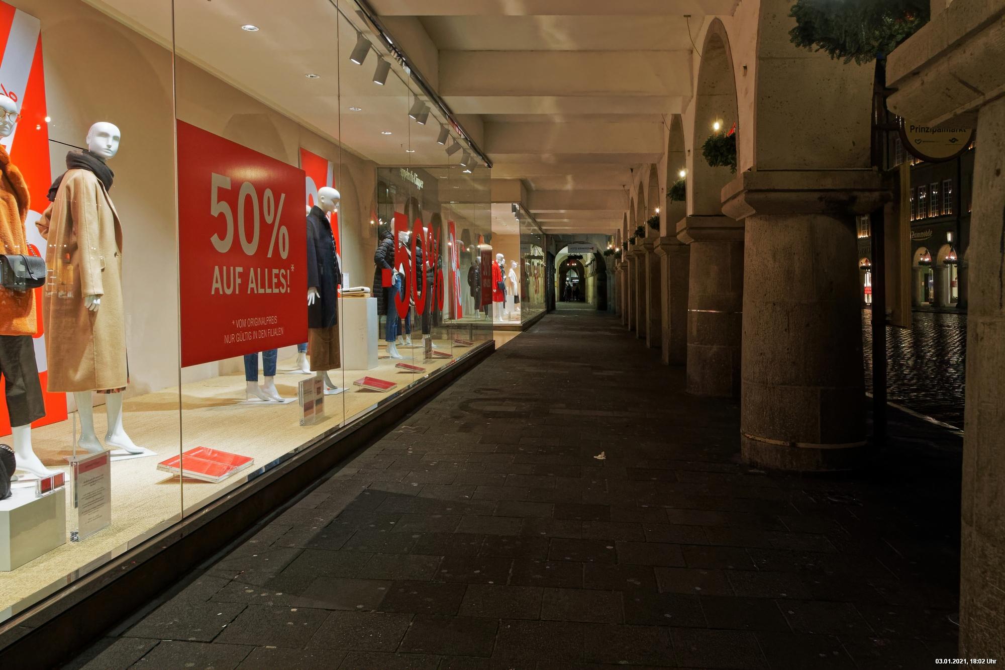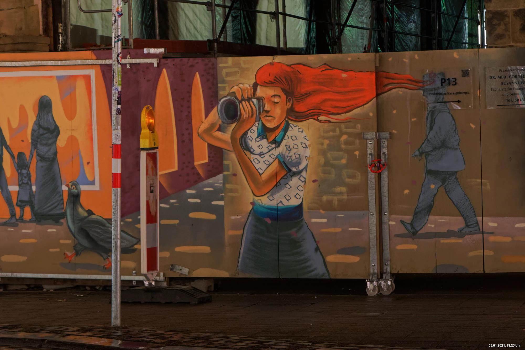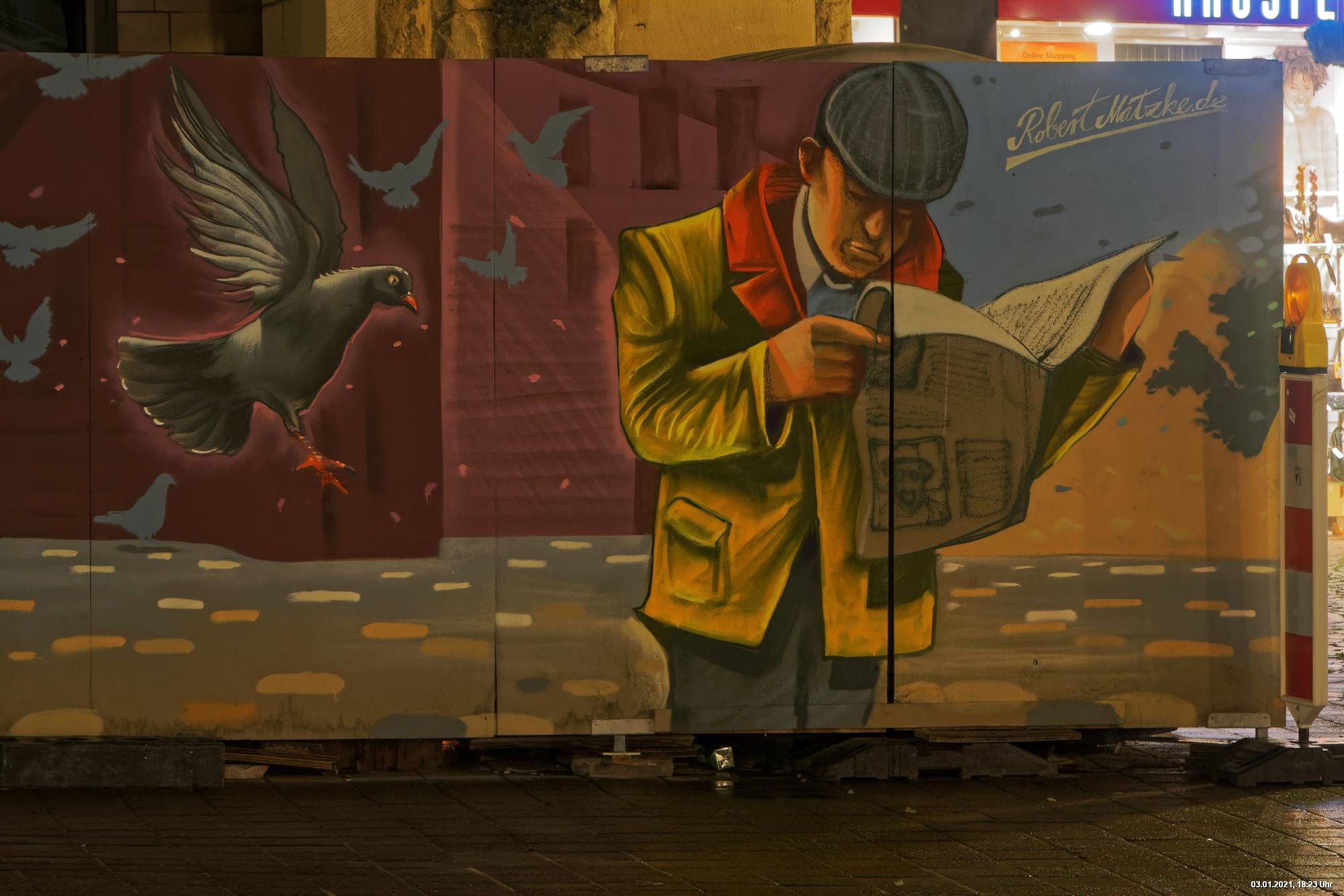 Dann war es also Sonntag, und abends, und dunkel, und kalt, und nass. Corona hat auch in Münster die Straßen ziemlich leergefegt. Die, die sich nach draußen gertaut haben, haben sich sehr diszipliniert an die Schutzverordnung gehalten. So konnten einige Fotos gemacht werden, die ansonsten kaum gelingen würden.