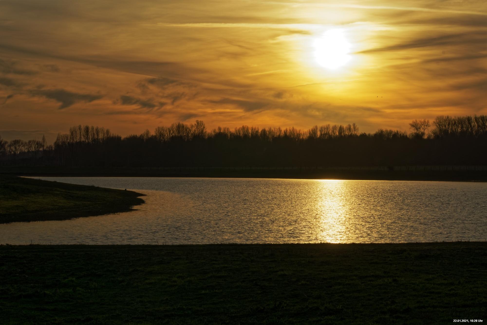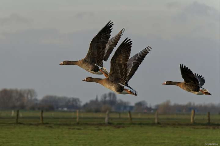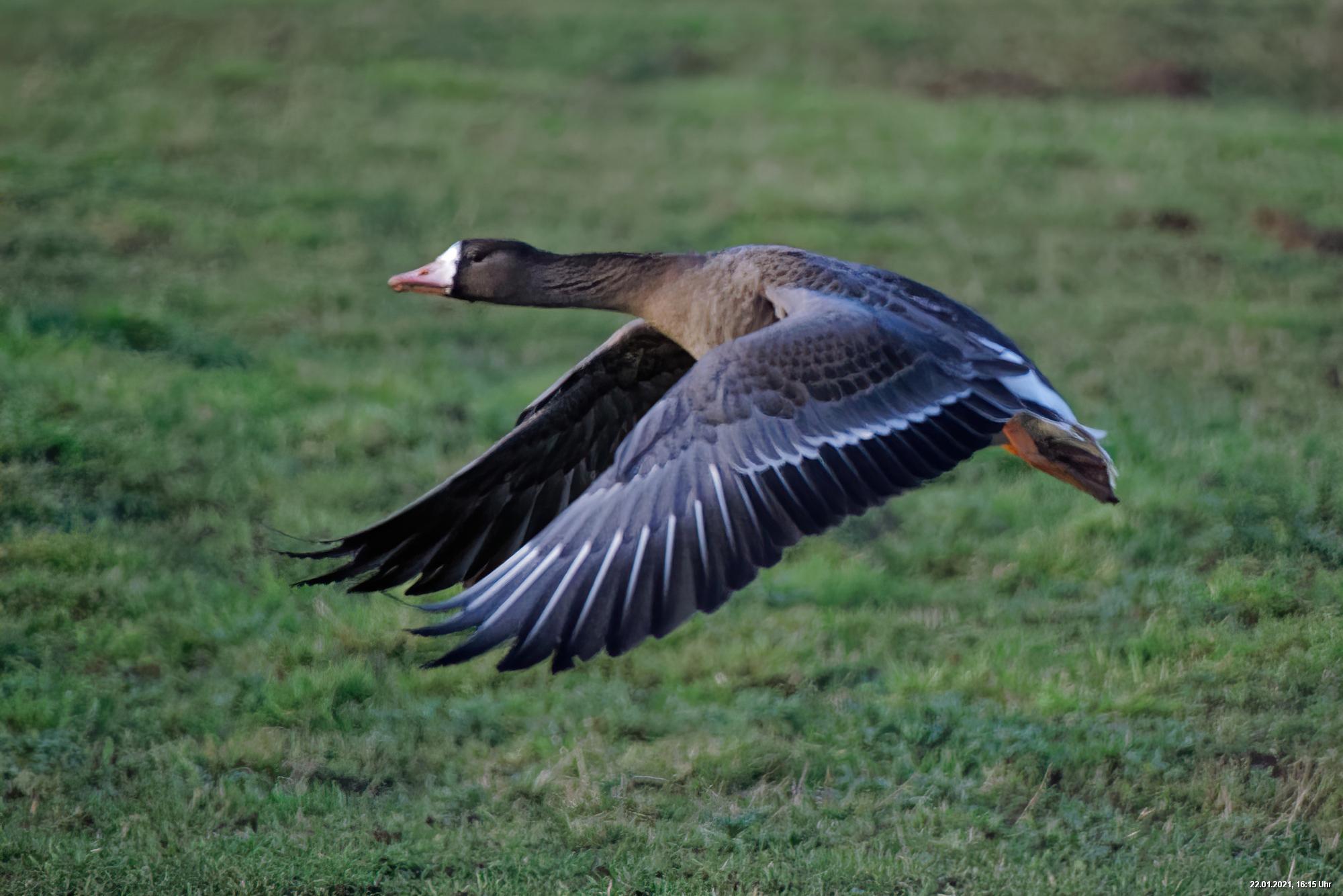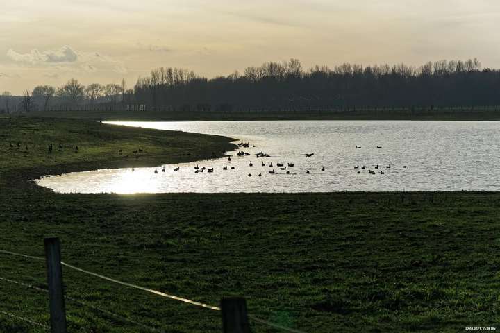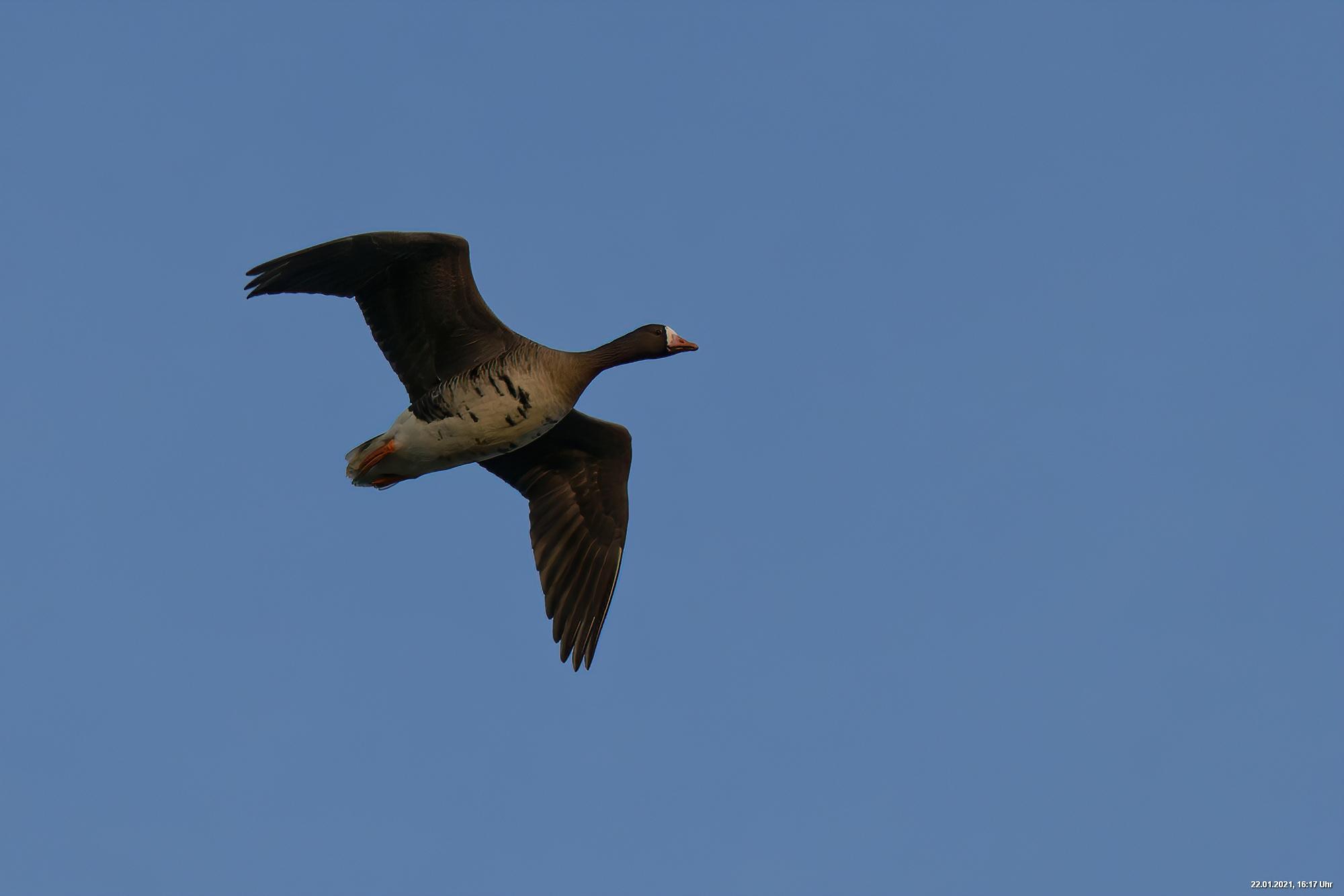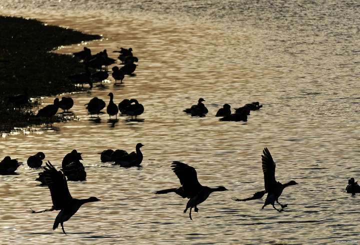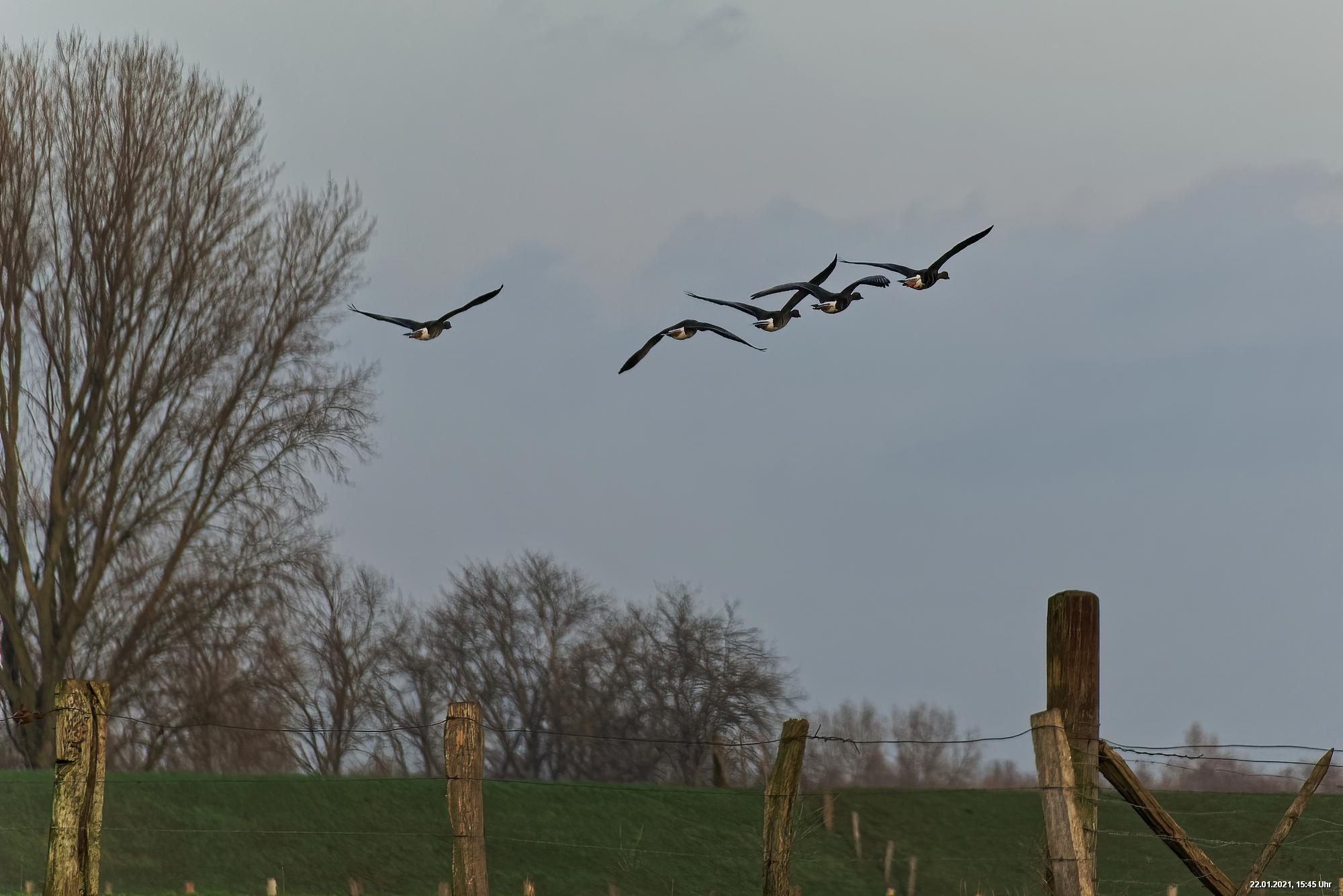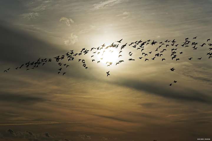 So oft bin ich schon mit mäßigem Erfolg dort gewesen. Jetzt wurde ich total entschädigt. Immer wieder starteten riesige Mengen der Wildgänse mit wilden Flügelschlag und lautem Geschnatter. Ganze Schwärme flogen oft an der tief stehenden Sonne vorbei und um mich herum. Gen Osten war der Himmel blau und gegen Westen spendete die Sonne ihr goldenes Licht. Ich konnte den Blick erst lösen, als die Gänse kurz vor Sonnenuntergang ihre Aktivitäten einstellten. Zuhause habe ich festgestellt, dass ich 998 Fotos gemacht habe. Hier eine kleine Auswahl: