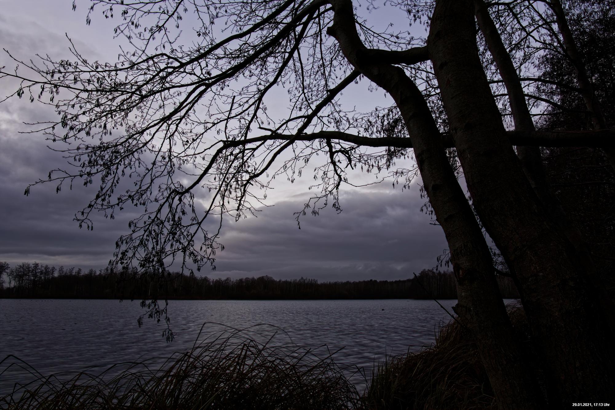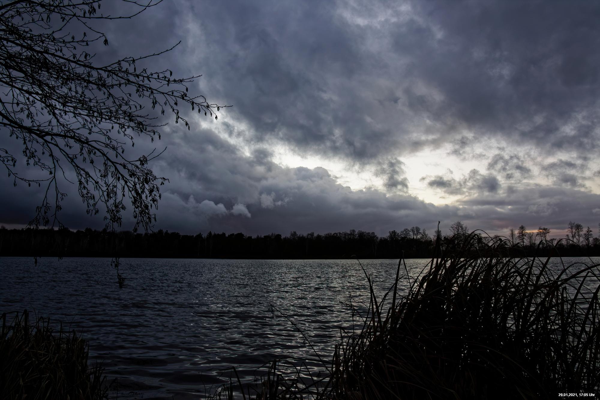 Nachmittags sah es eigentlich gut aus. Nach dem tagelangen Dauerregen rissen die Wolken auf. Der ordentliche Wind trieb einige Löcher dazwischen und ich packte schnell die Ausrüstung und fuhr zum See. Ab, fast wie immer, ich hatte gerade die Kamera auf dem Stativ montiert, da kamen die dicken Wolken zurück und nischt war's mit Sonnenuntergang. Hab die Zeit genutzt, trotzdem mal einige Bilder von der Umgebung zu machen.
