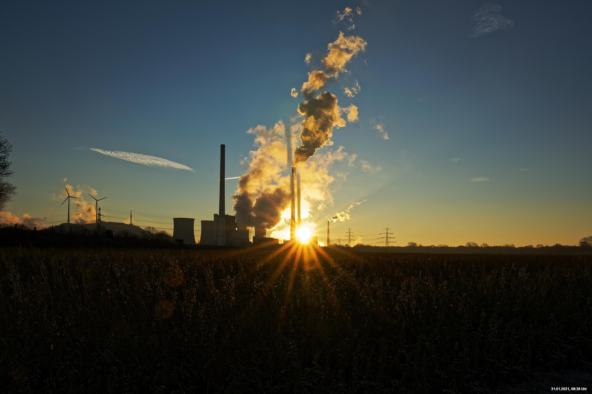 849 Sonnenaufgang hinter dem Kraftwerk Scholven