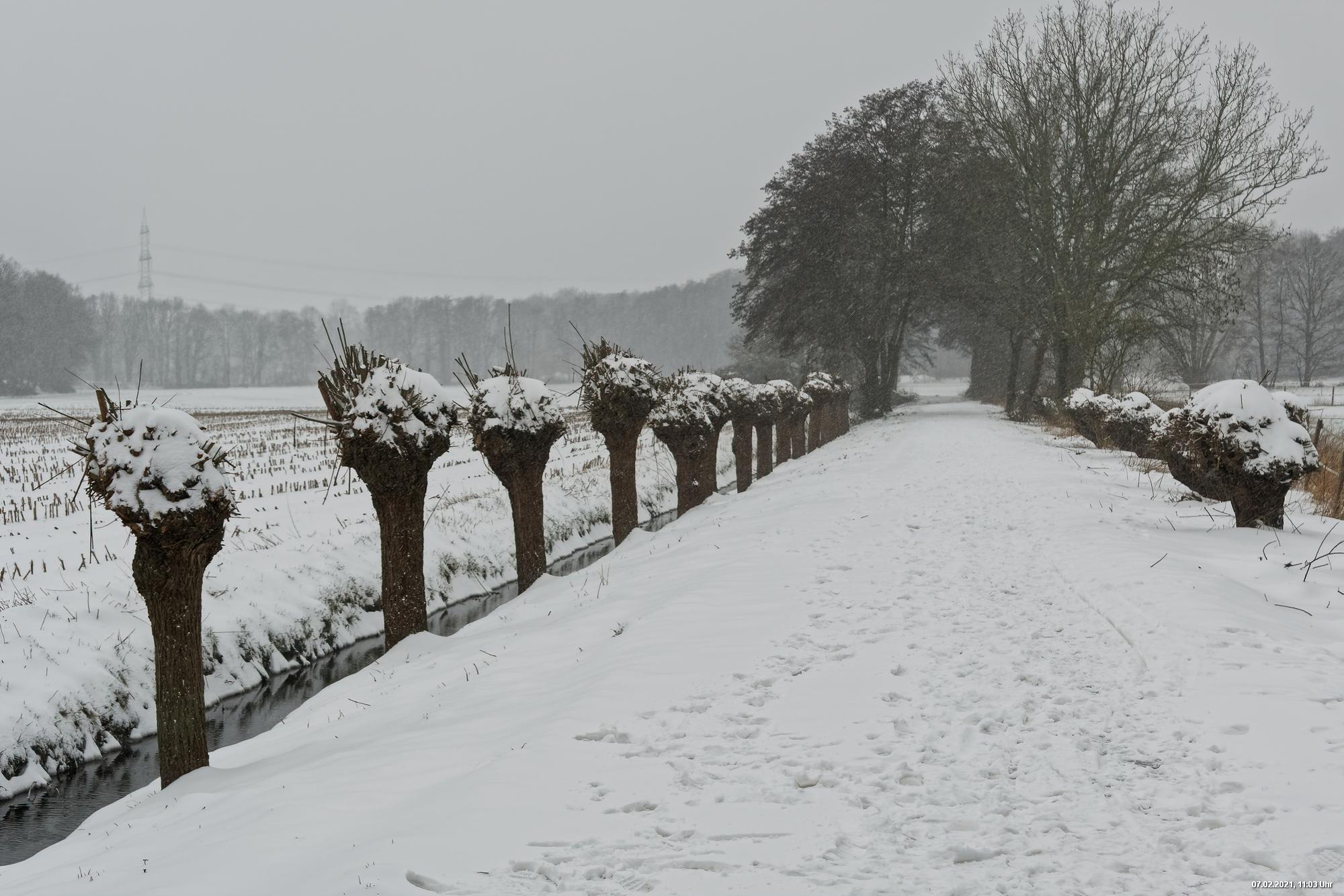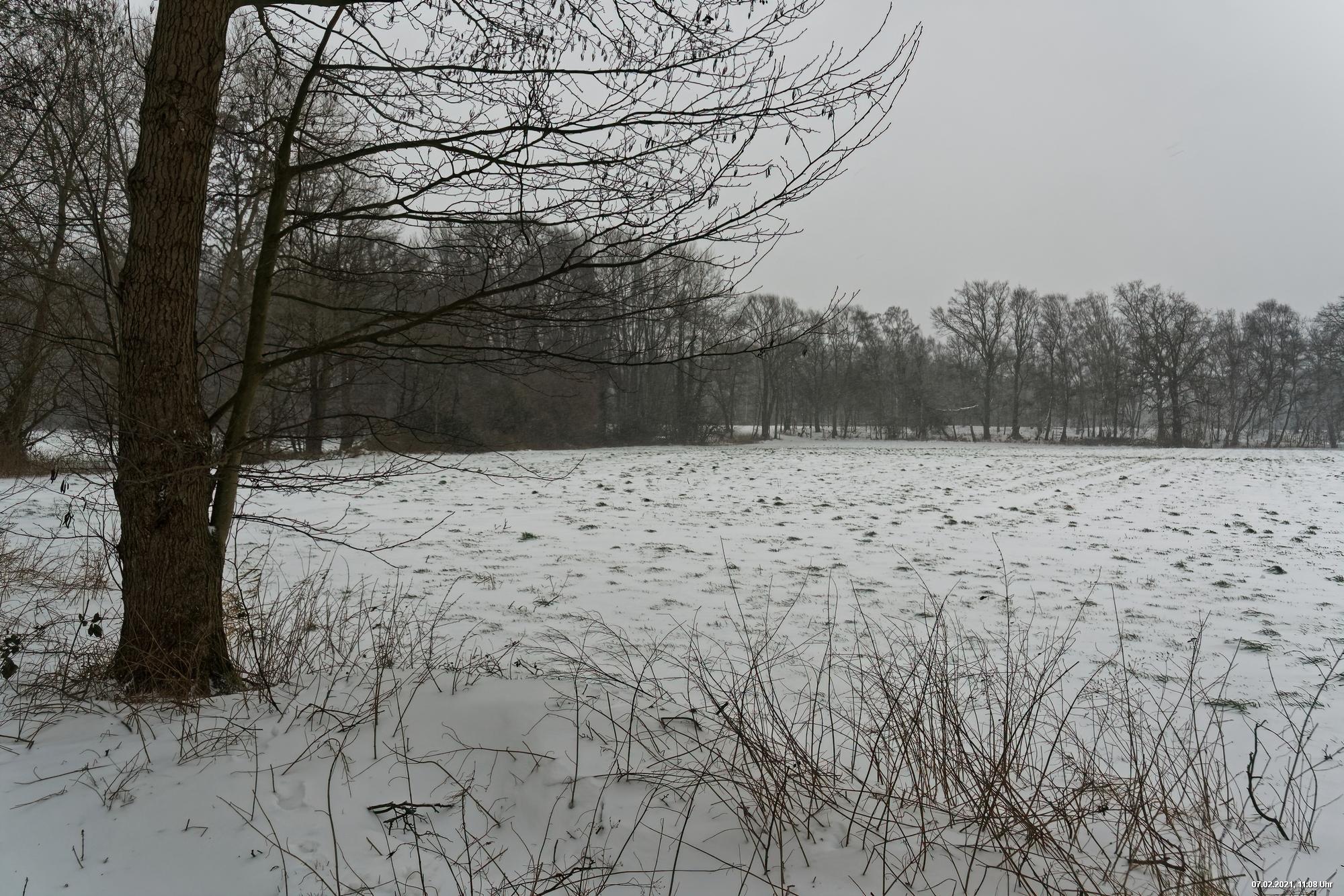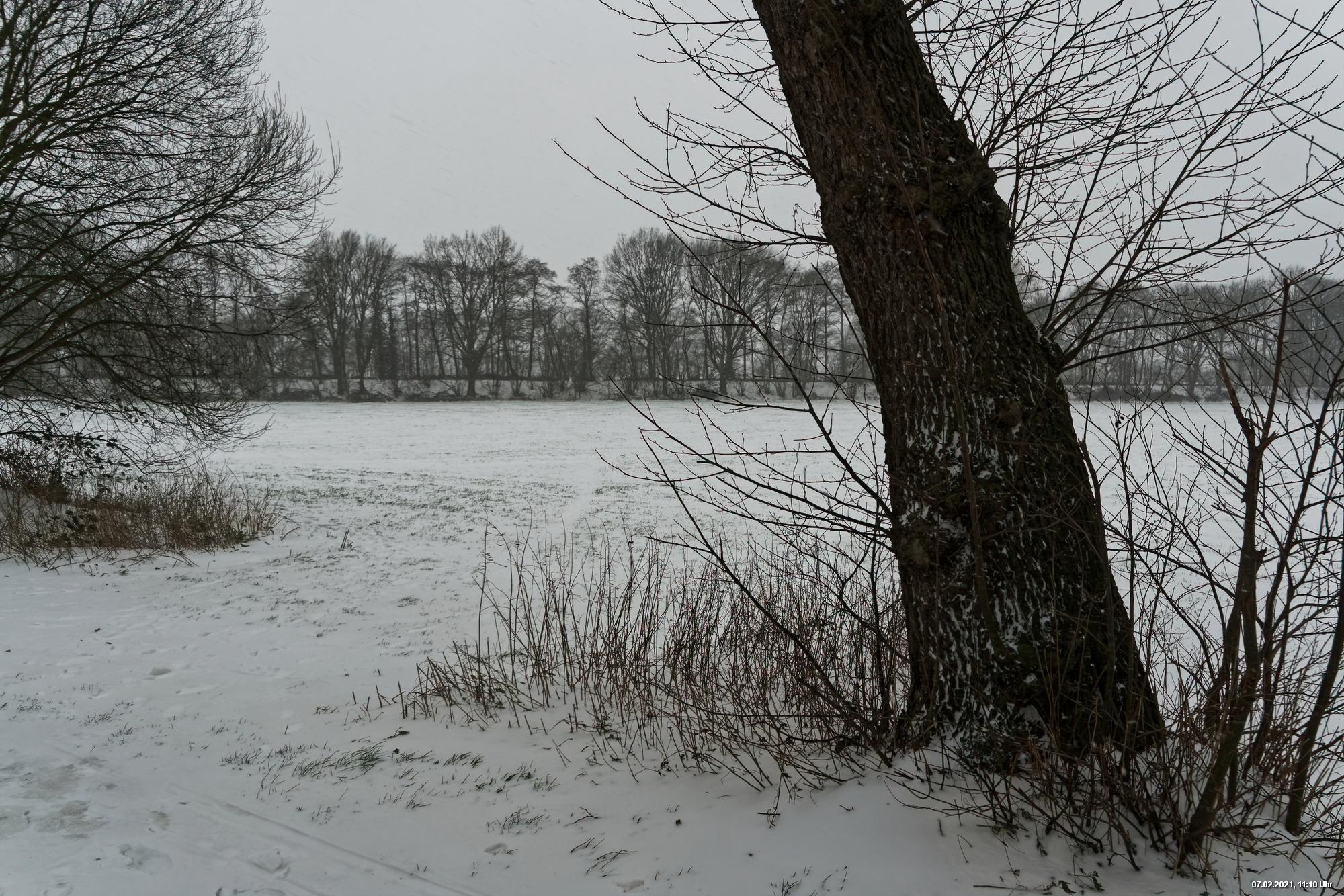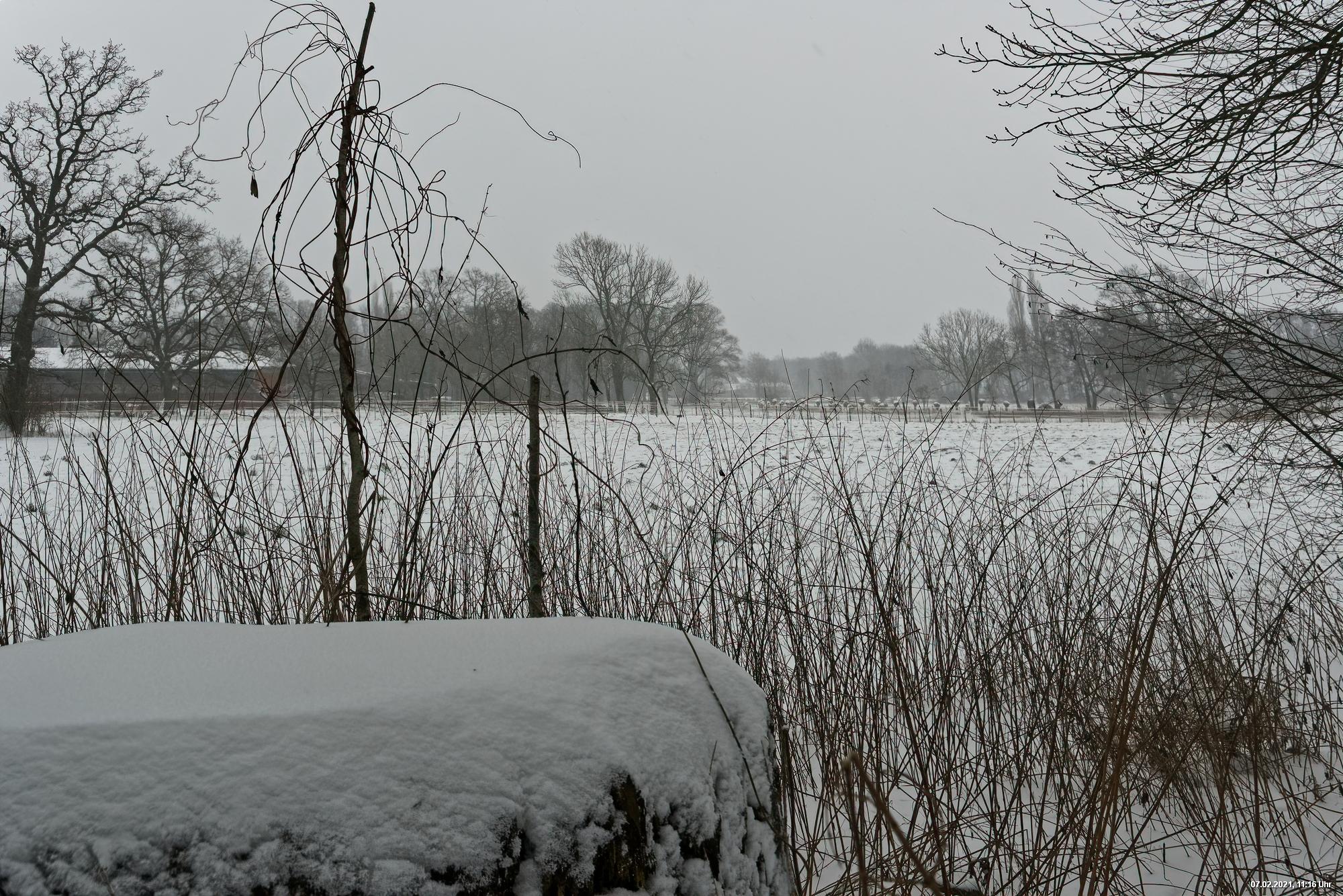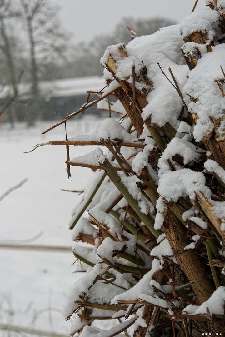 Über Nacht hat es geschneit und die Temperaturen sind deutlich bi -4° C gesunken. Der Wind frischte stark auf mit stürmischen Böen und eigentlich hat es den ganzen Tag weiter geschneit. Der kleine Spaziergang fand unter erschwerten Bedingungen statt, da der starke Wind den Schnee oft auf die Linse blies. Außerdem war es im Wind gefühlt deutlich kälter.