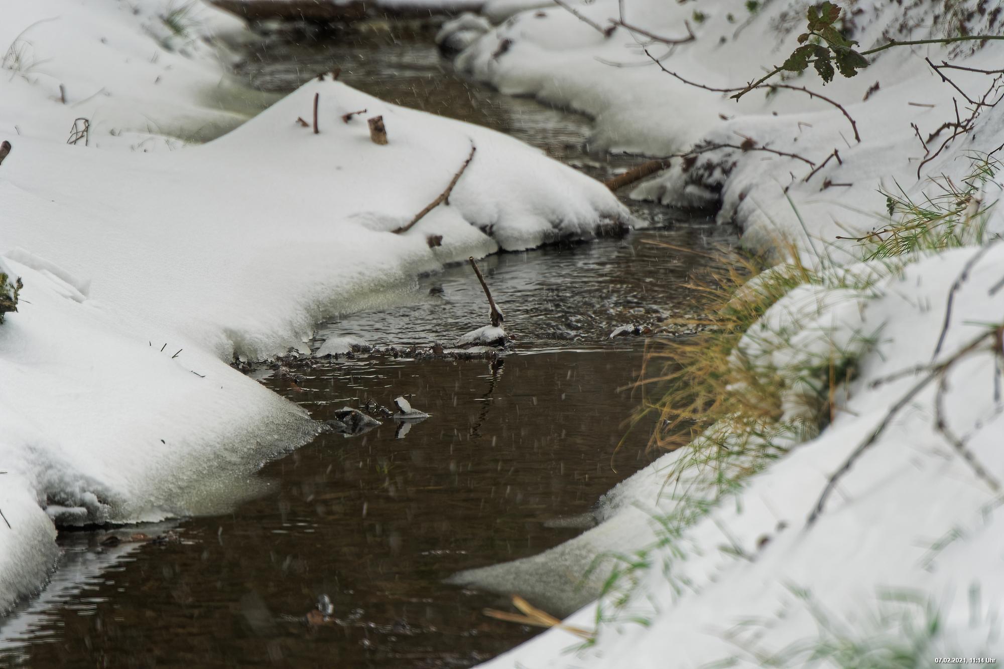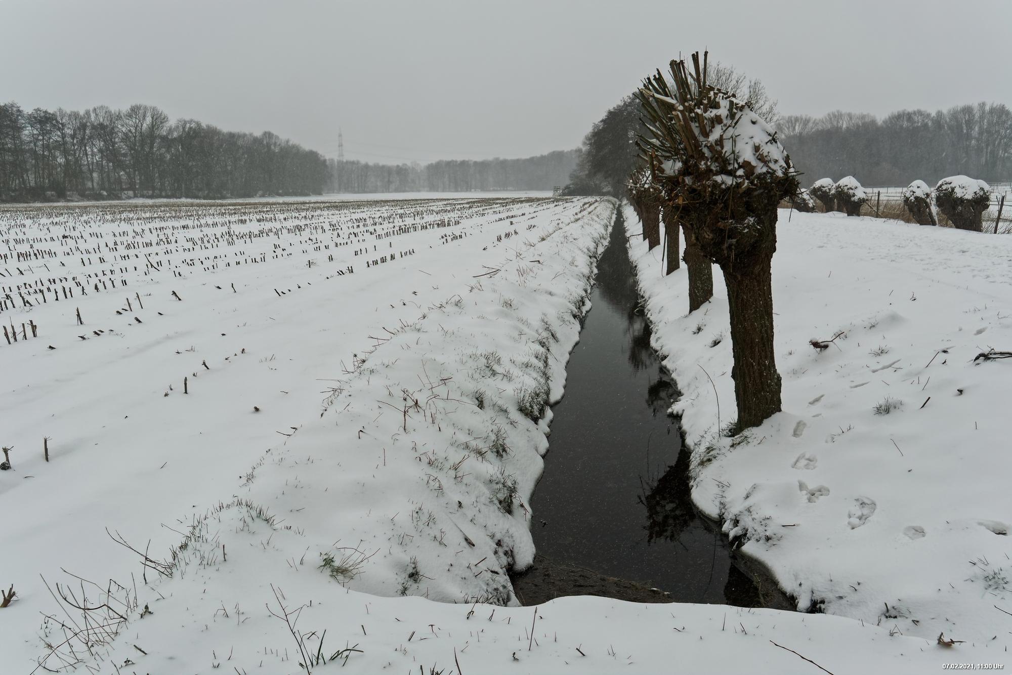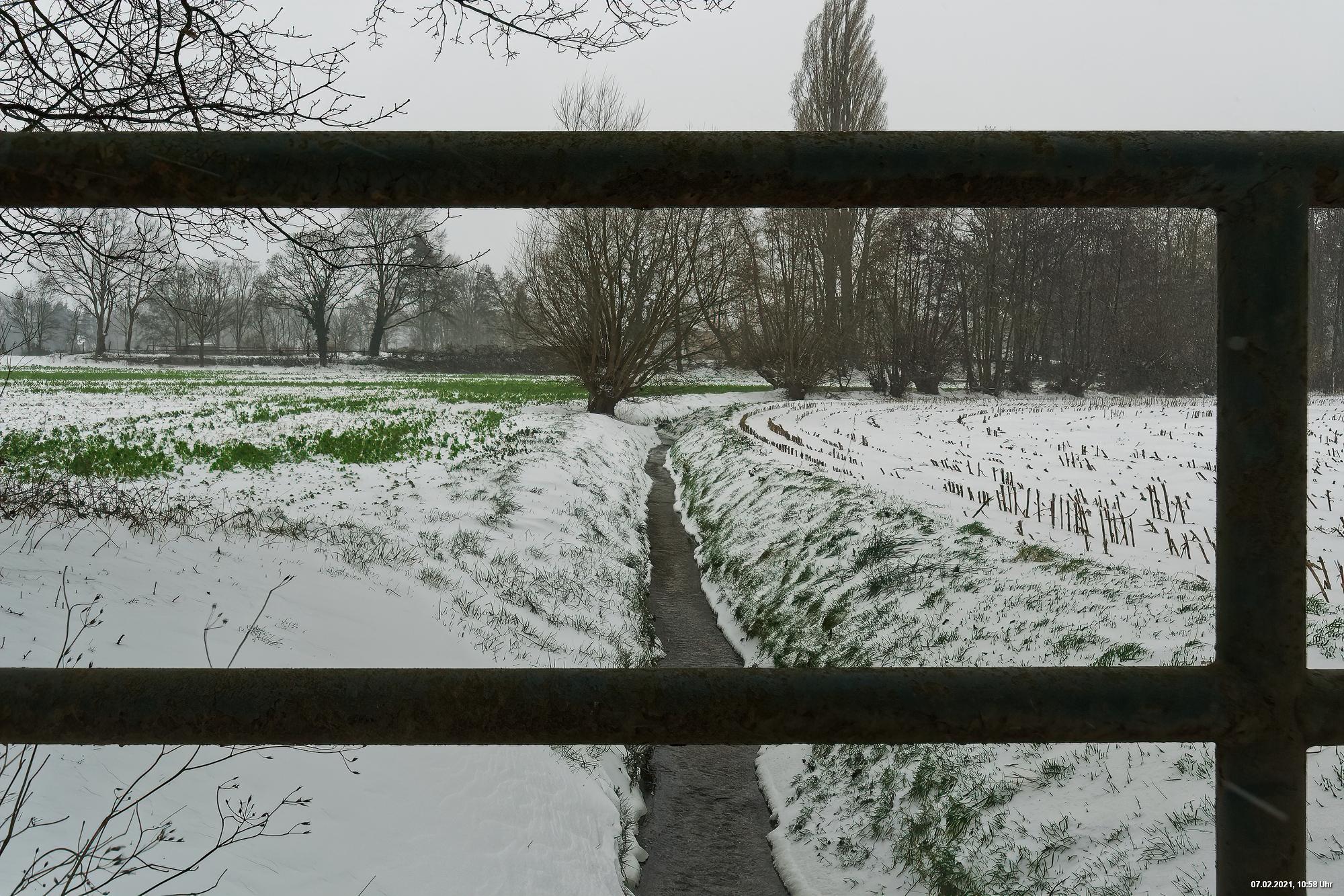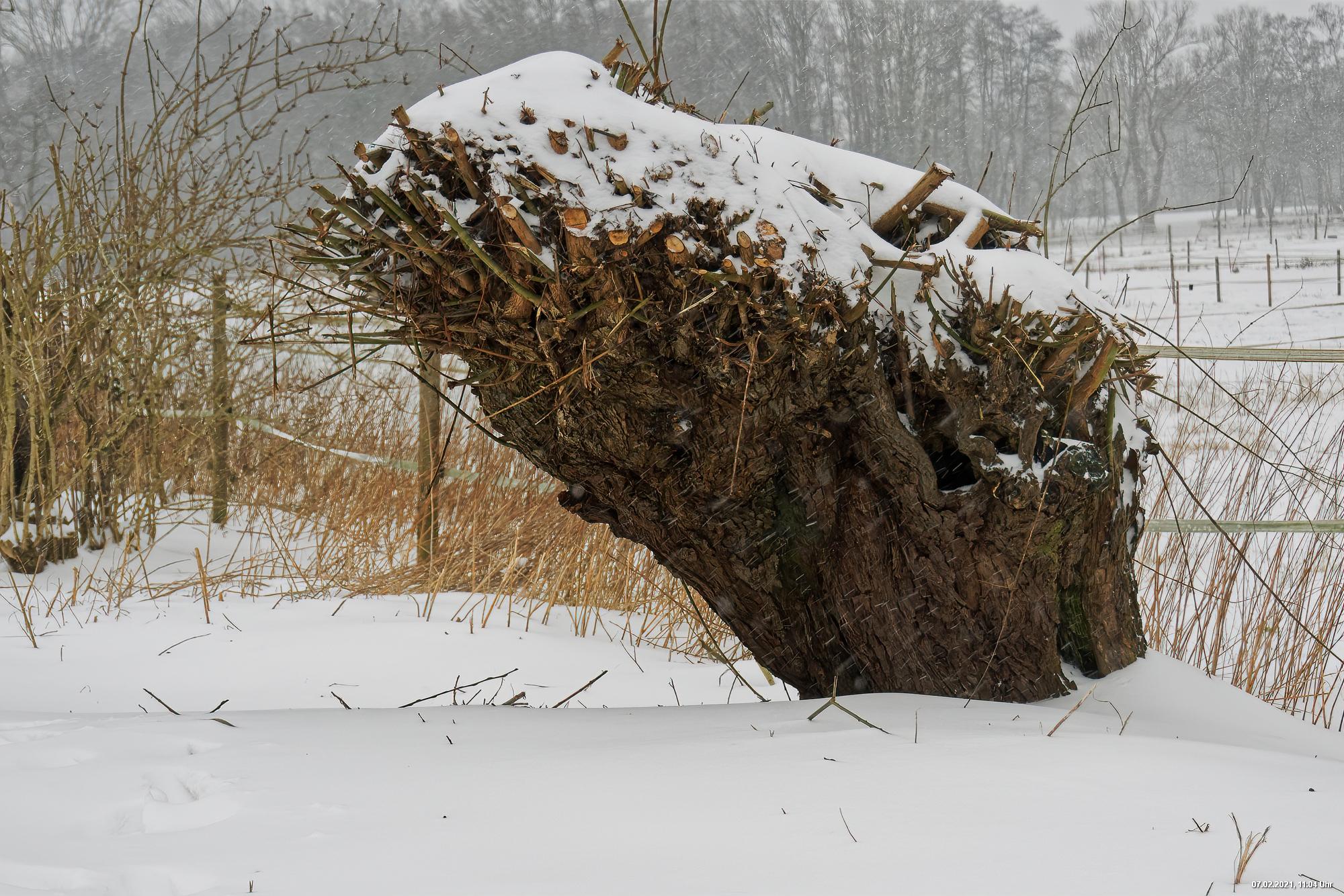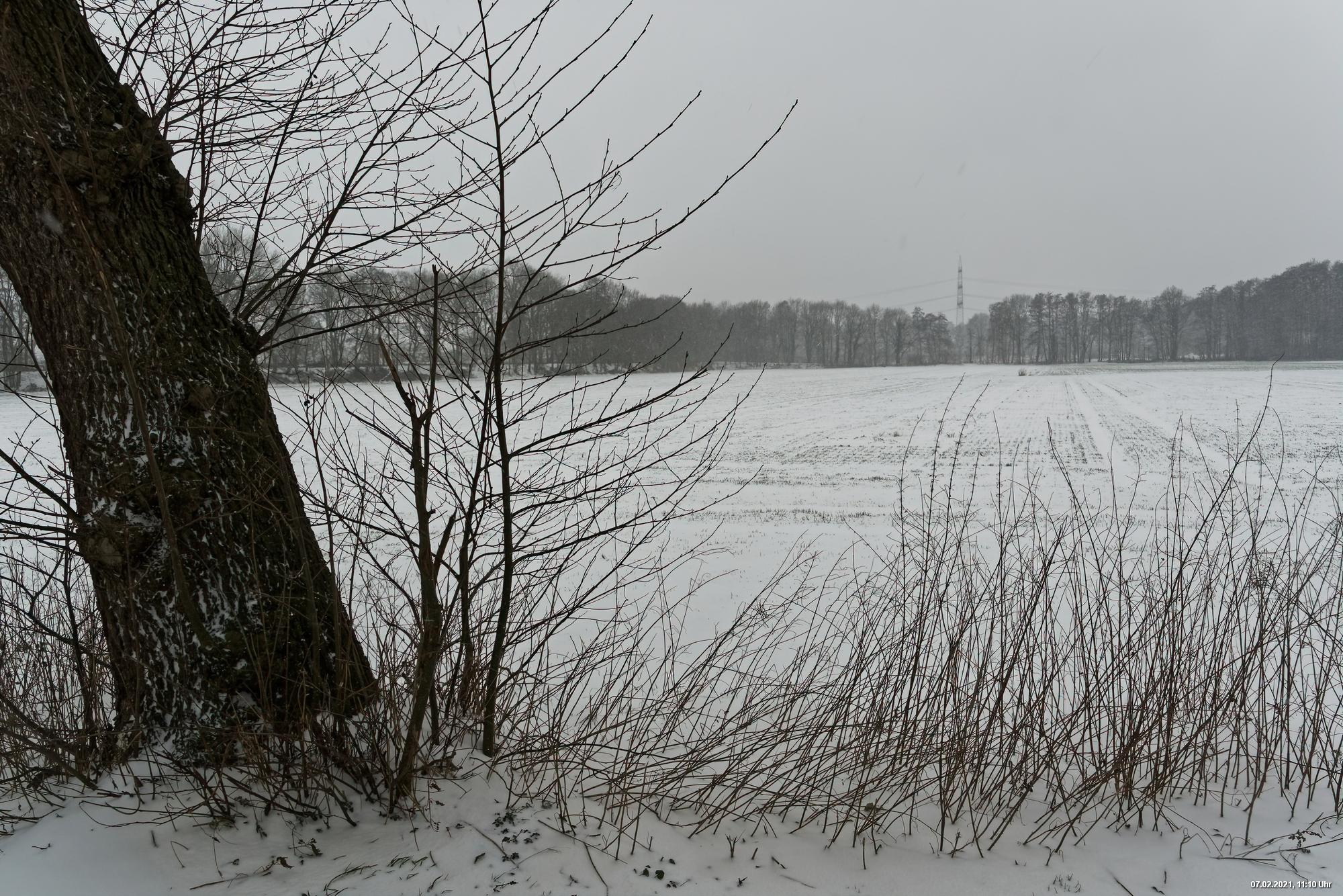 Über Nacht hat es geschneit und die Temperaturen sind deutlich bi -4° C gesunken. Der Wind frischte stark auf mit stürmischen Böen und eigentlich hat es den ganzen Tag weiter geschneit. Der kleine Spaziergang fand unter erschwerten Bedingungen statt, da der starke Wind den Schnee oft auf die Linse blies. Außerdem war es im Wind gefühlt deutlich kälter.