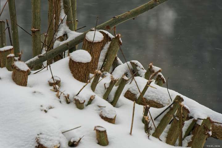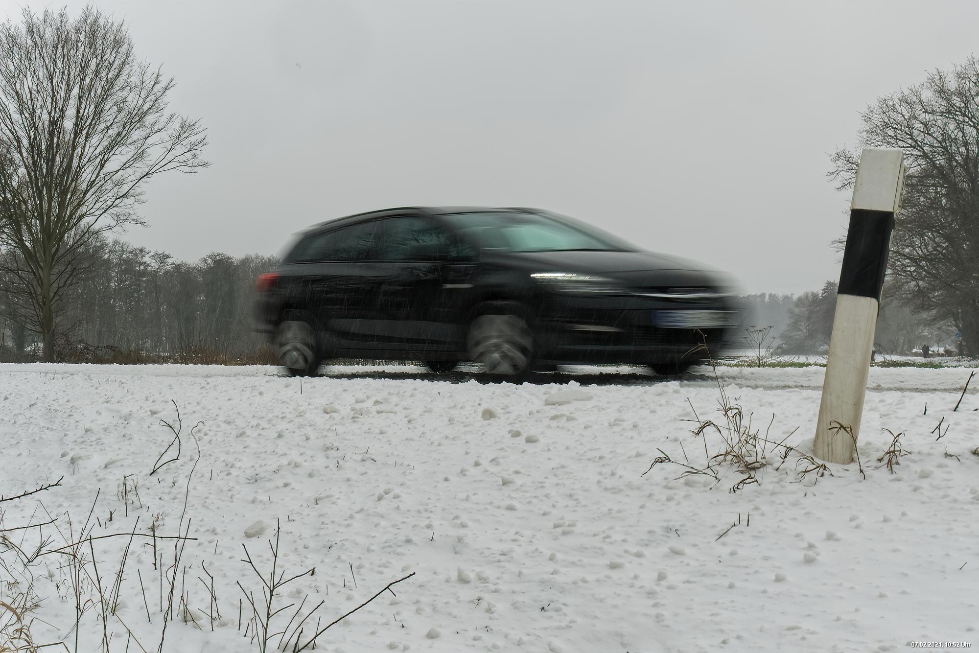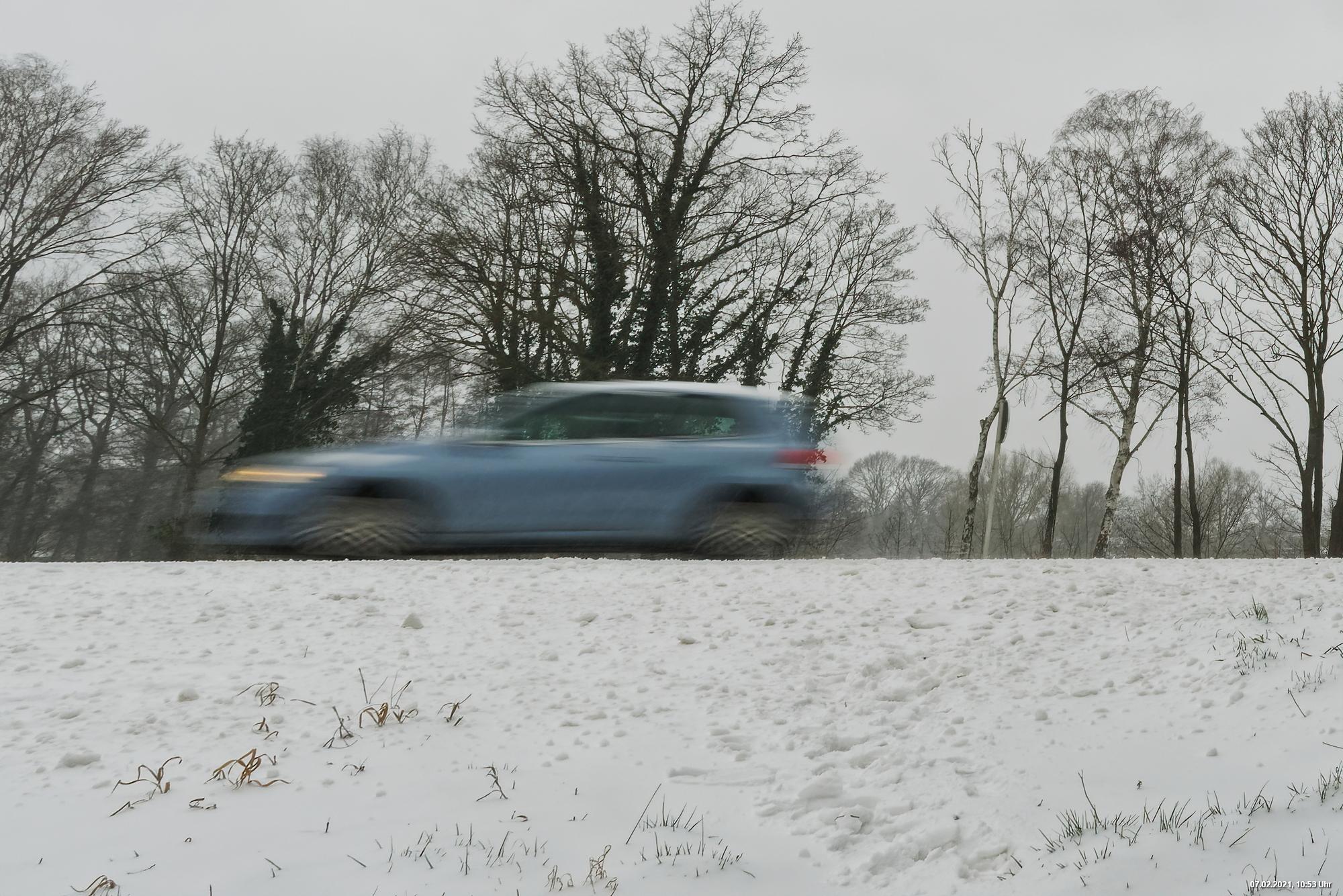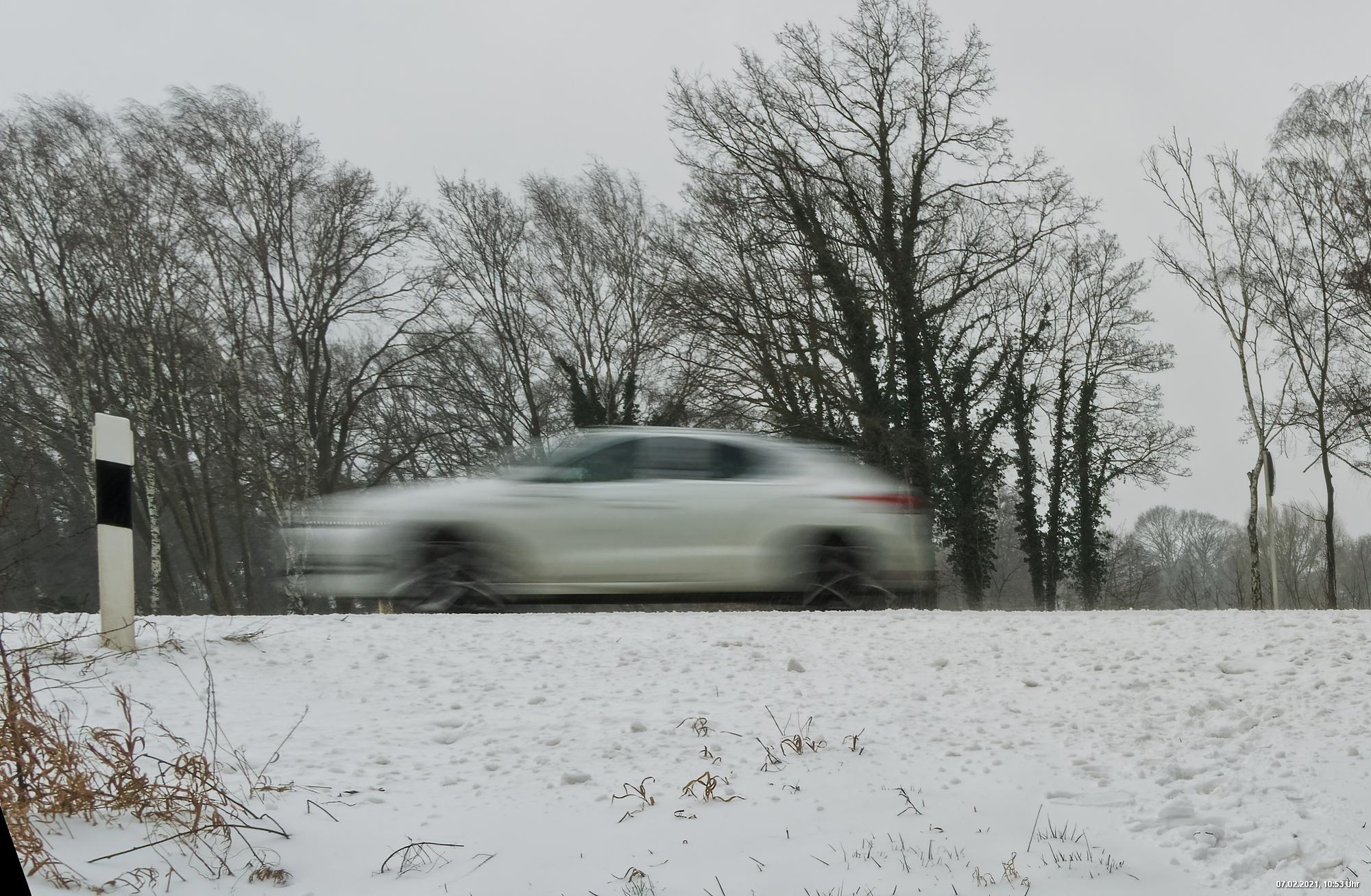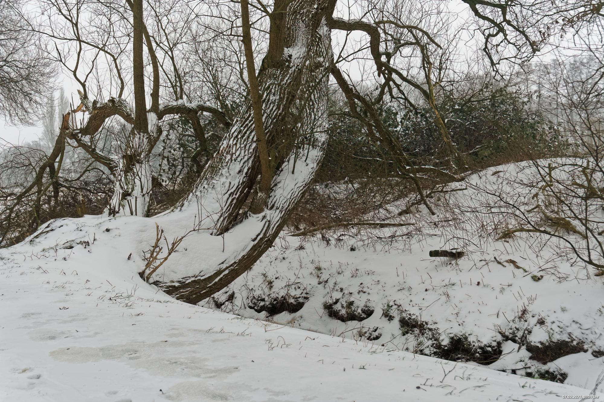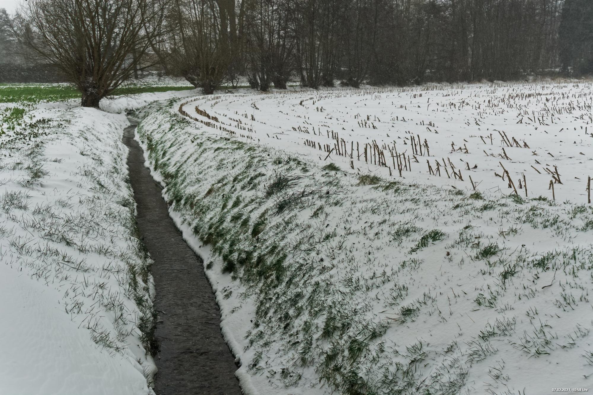 Über Nacht hat es geschneit und die Temperaturen sind deutlich bi -4° C gesunken. Der Wind frischte stark auf mit stürmischen Böen und eigentlich hat es den ganzen Tag weiter geschneit. Der kleine Spaziergang fand unter erschwerten Bedingungen statt, da der starke Wind den Schnee oft auf die Linse blies. Außerdem war es im Wind gefühlt deutlich kälter.