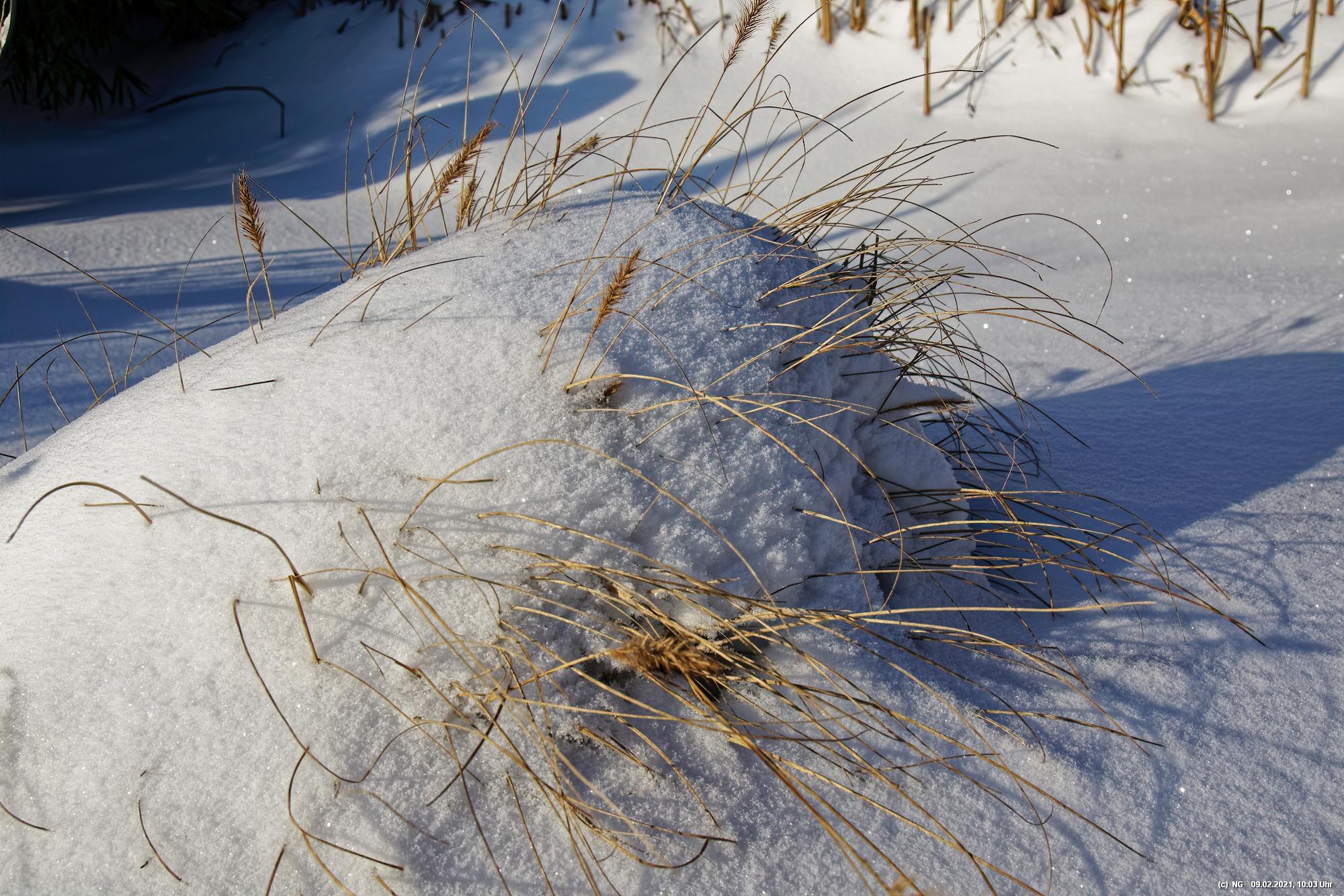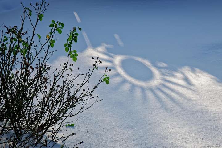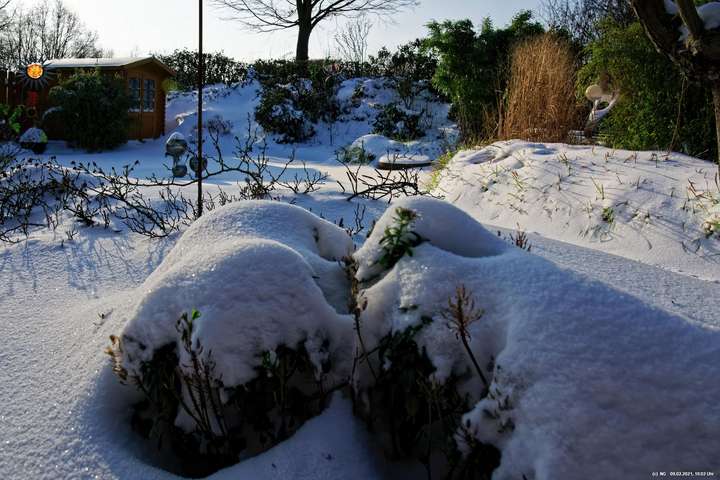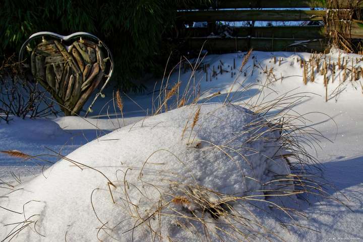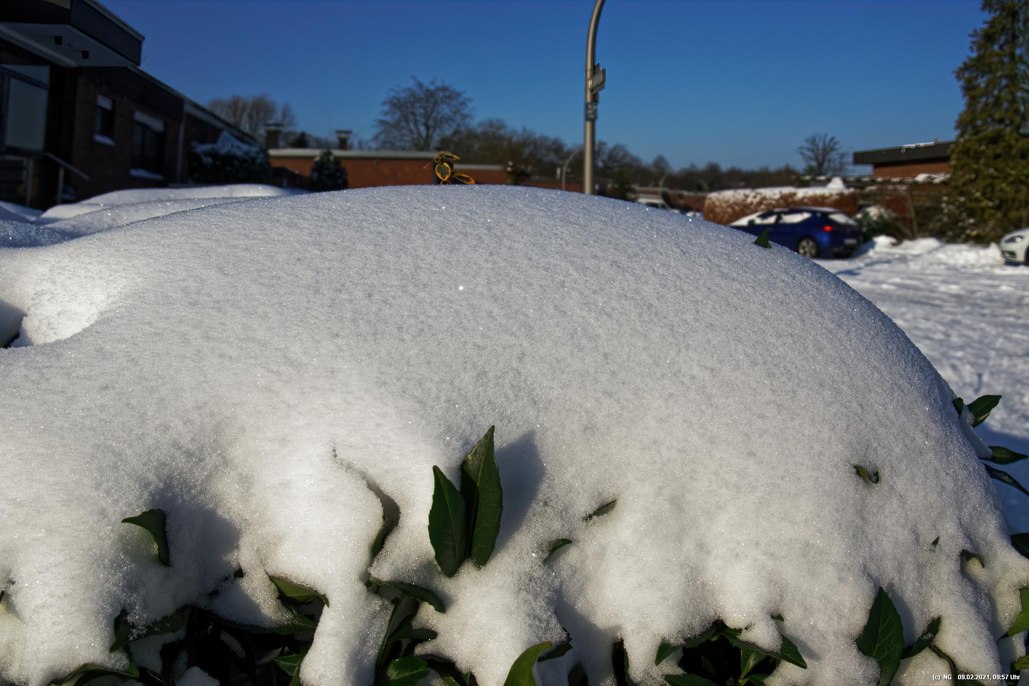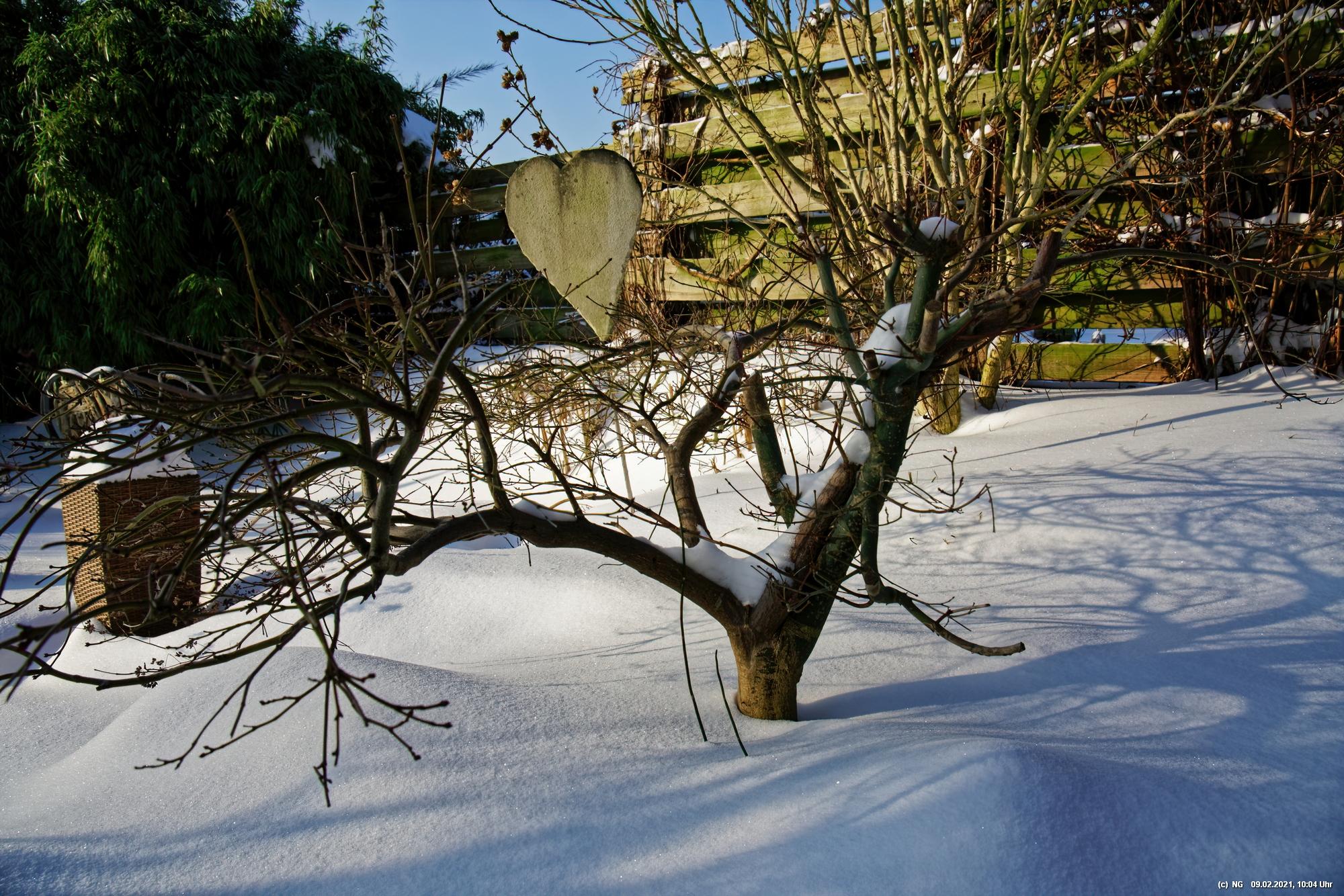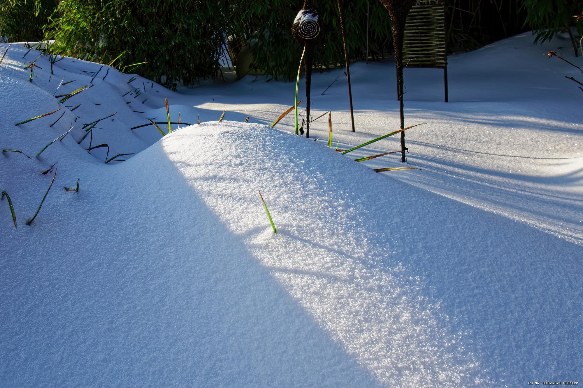 Nach dem ordentlichen Schneefall der letzten Tage habe ich mal versucht, nur 5 m zu gehen und dabei Motive zu suchen. Es gab genug - und es gibt auch Formen, die man sonst im eigenen Garten gar nicht sieht. Spannend war's!