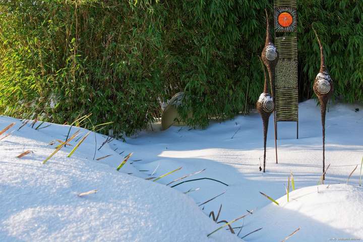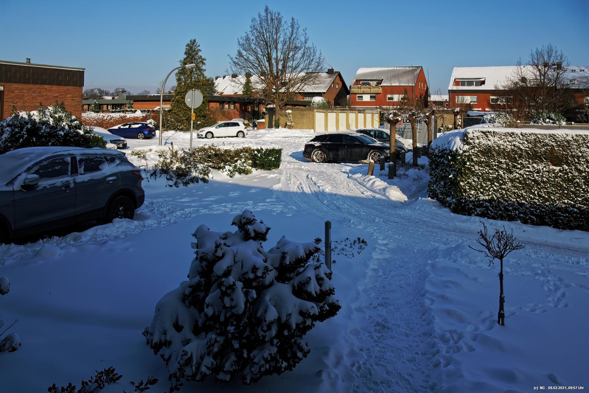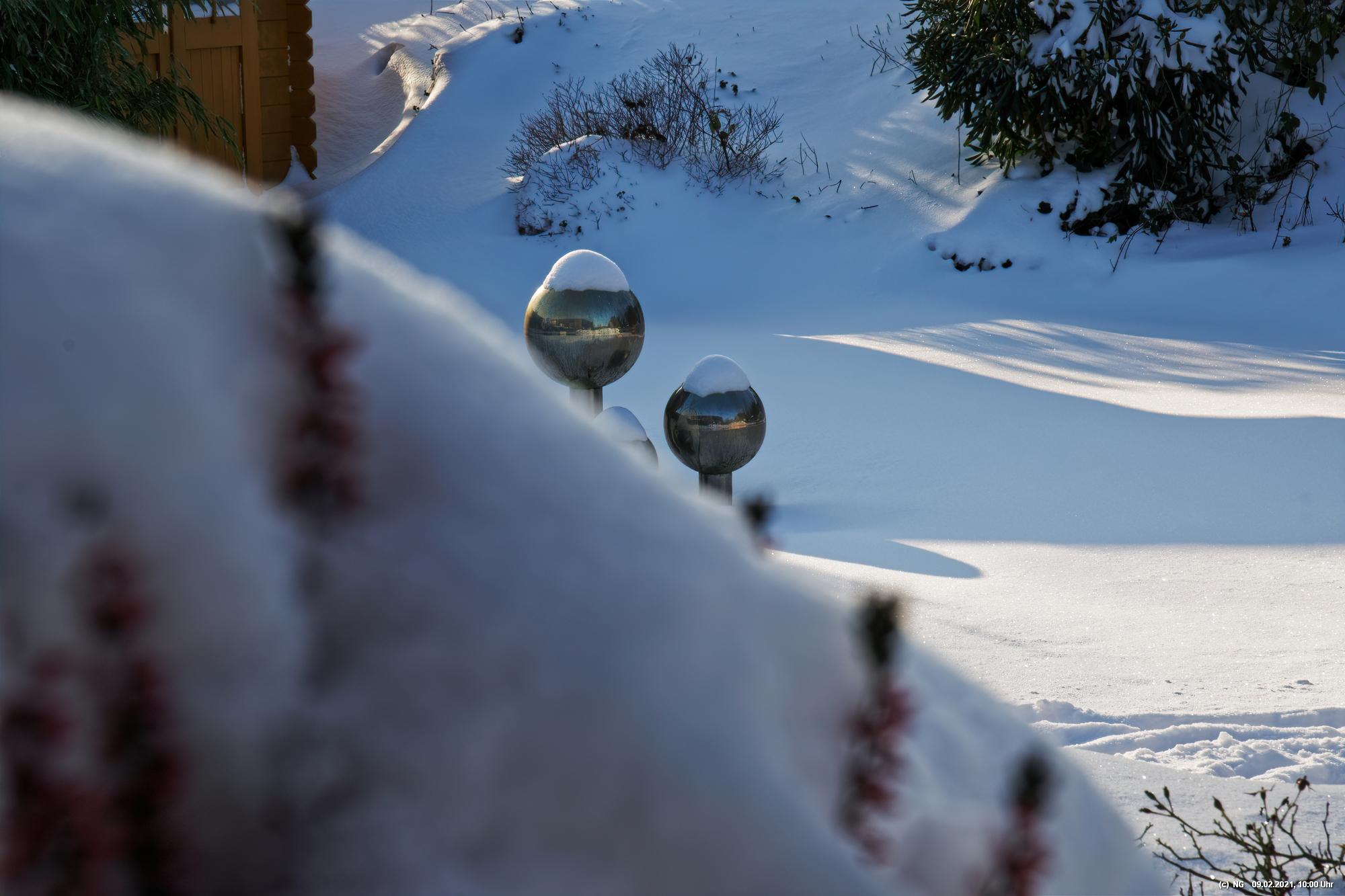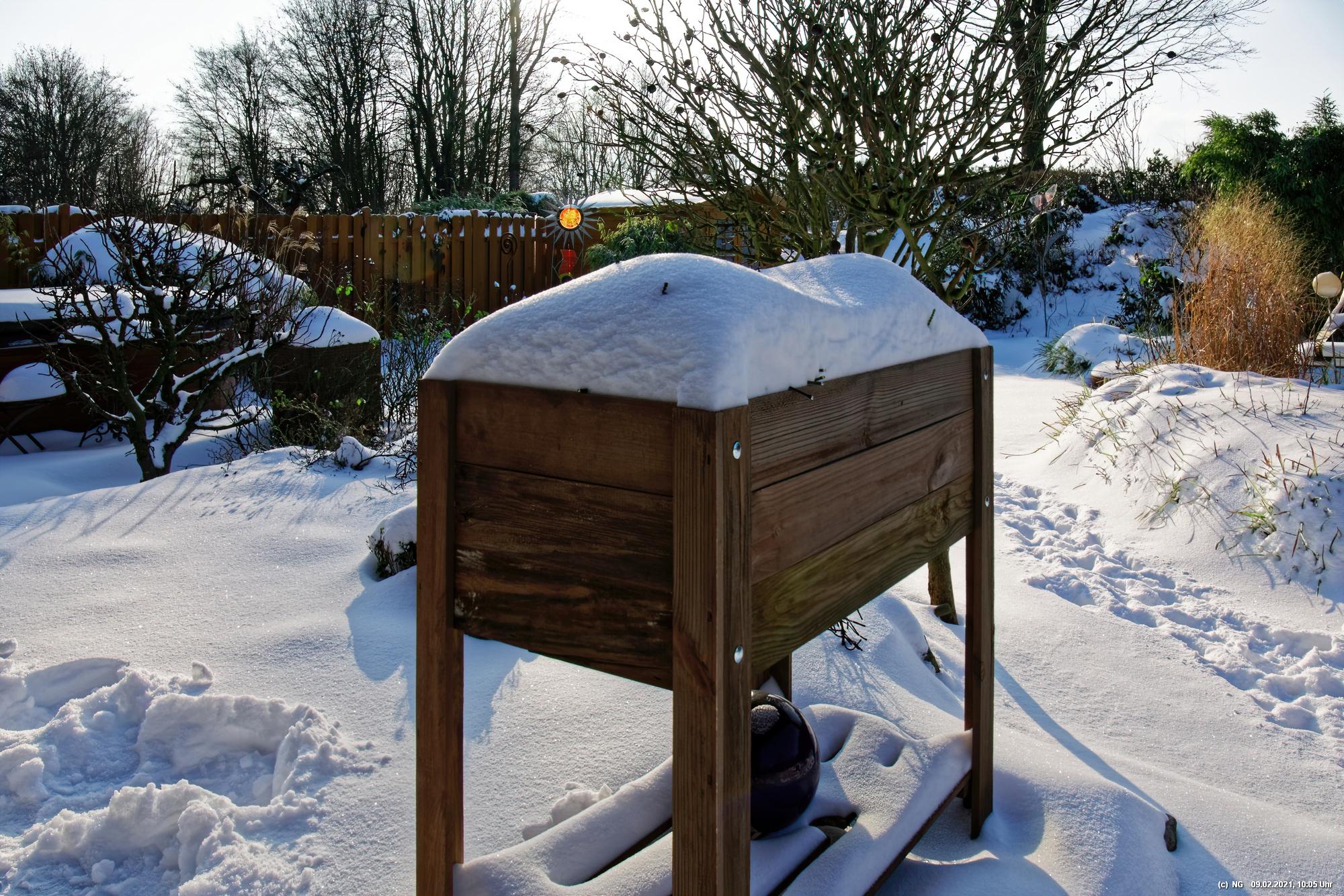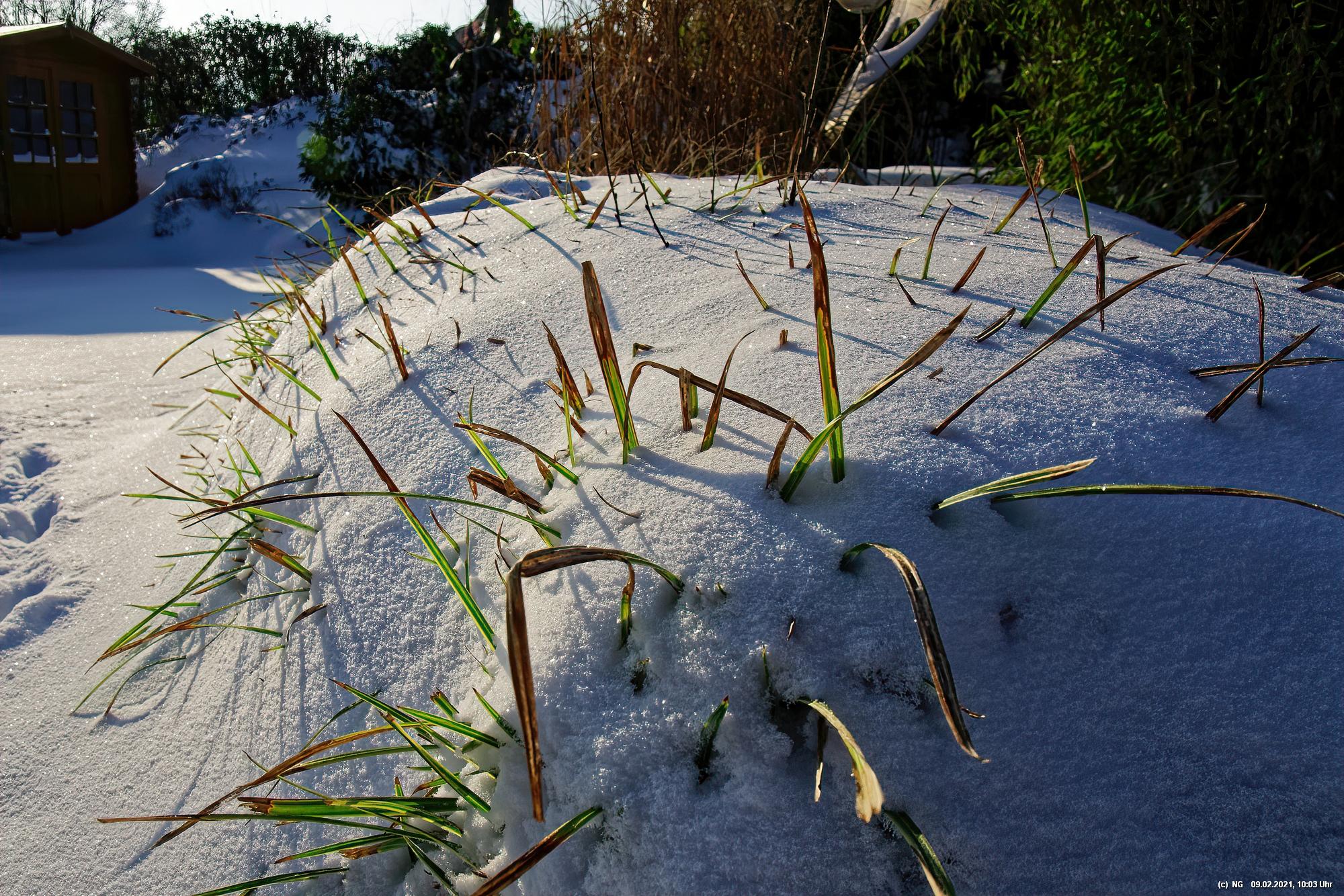 Nach dem ordentlichen Schneefall der letzten Tage habe ich mal versucht, nur 5 m zu gehen und dabei Motive zu suchen. Es gab genug - und es gibt auch Formen, die man sonst im eigenen Garten gar nicht sieht. Spannend war's!