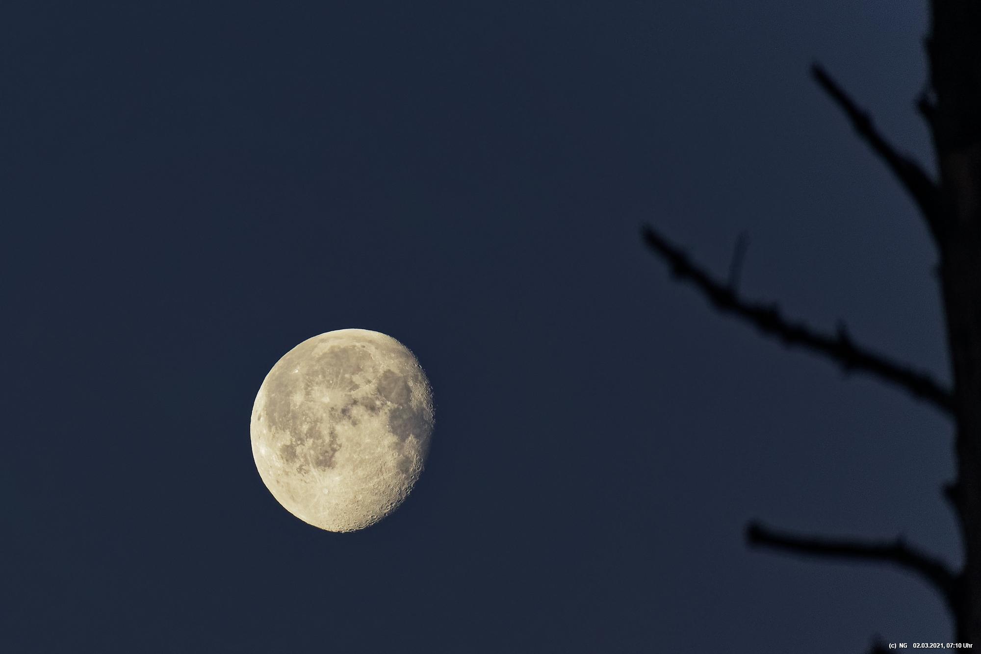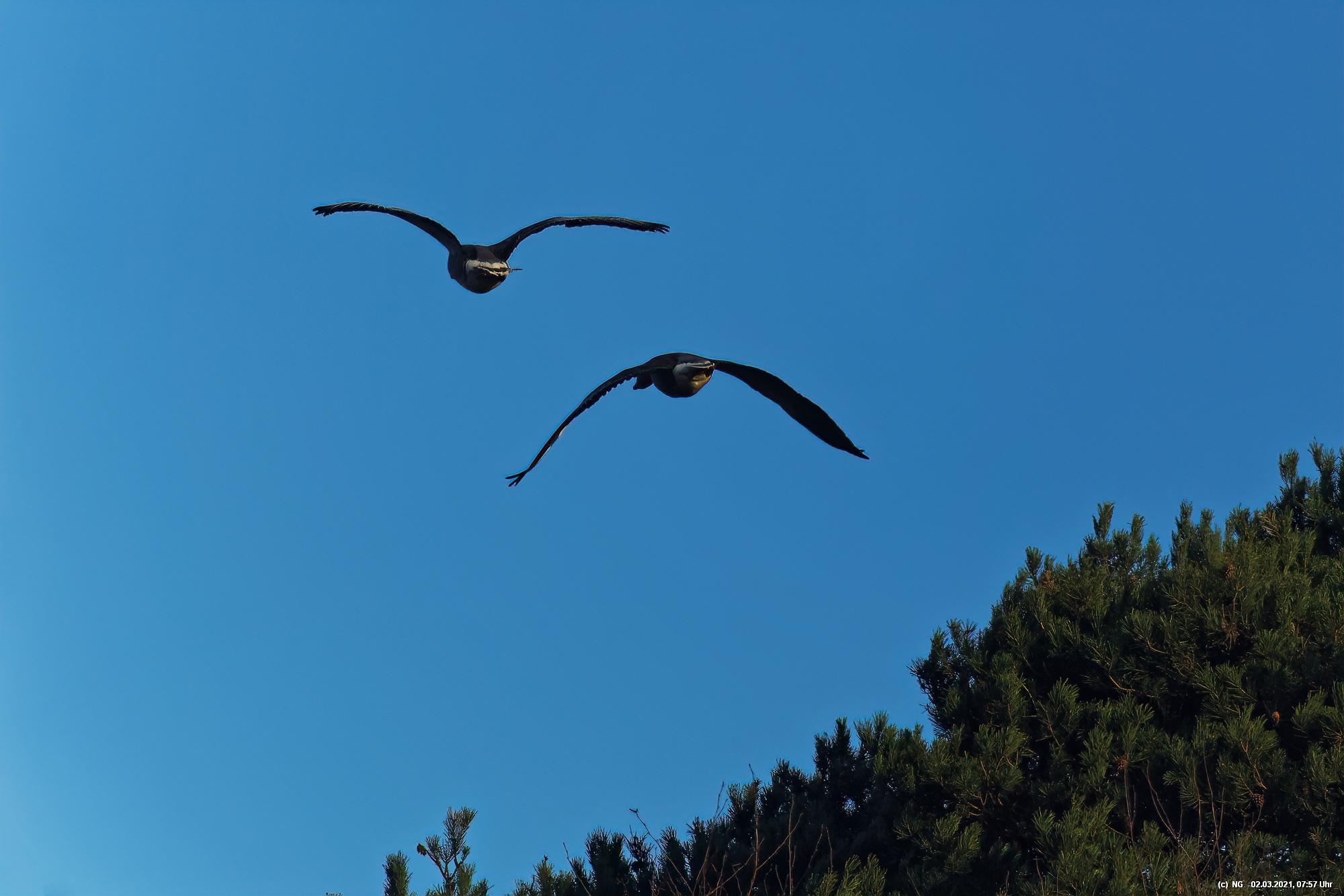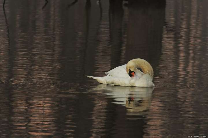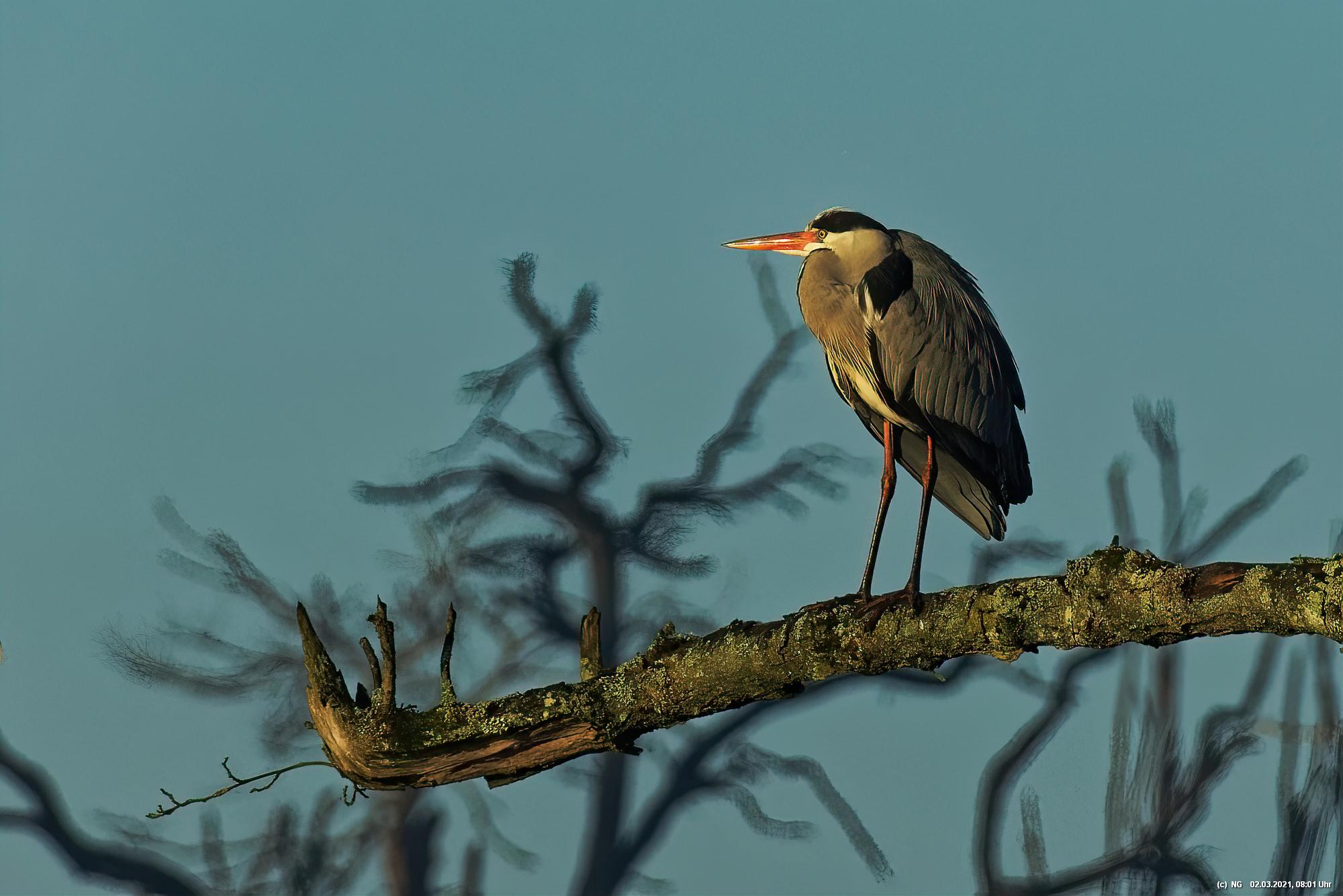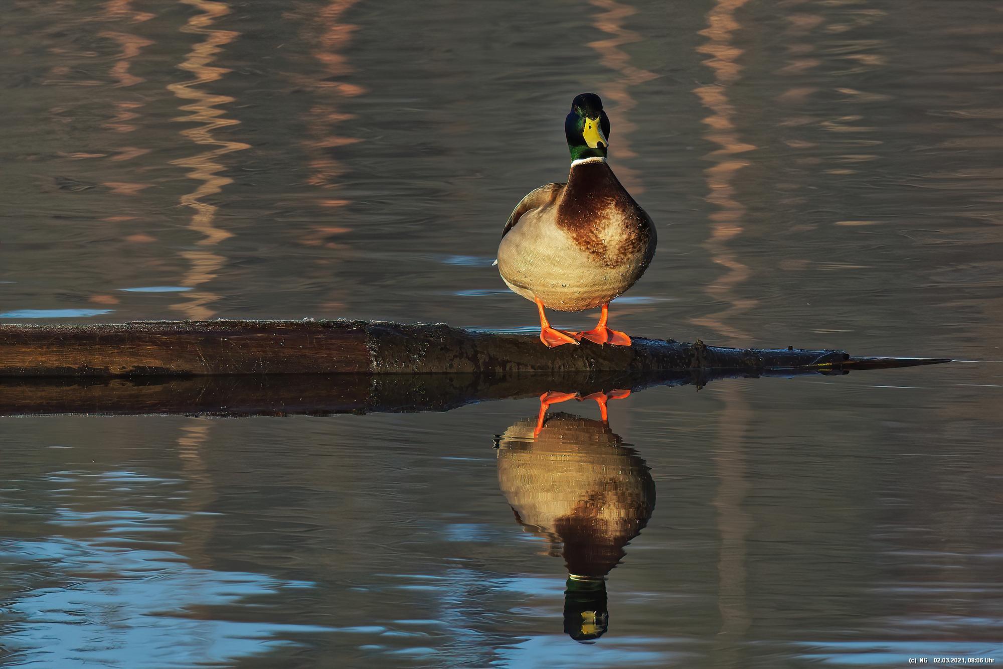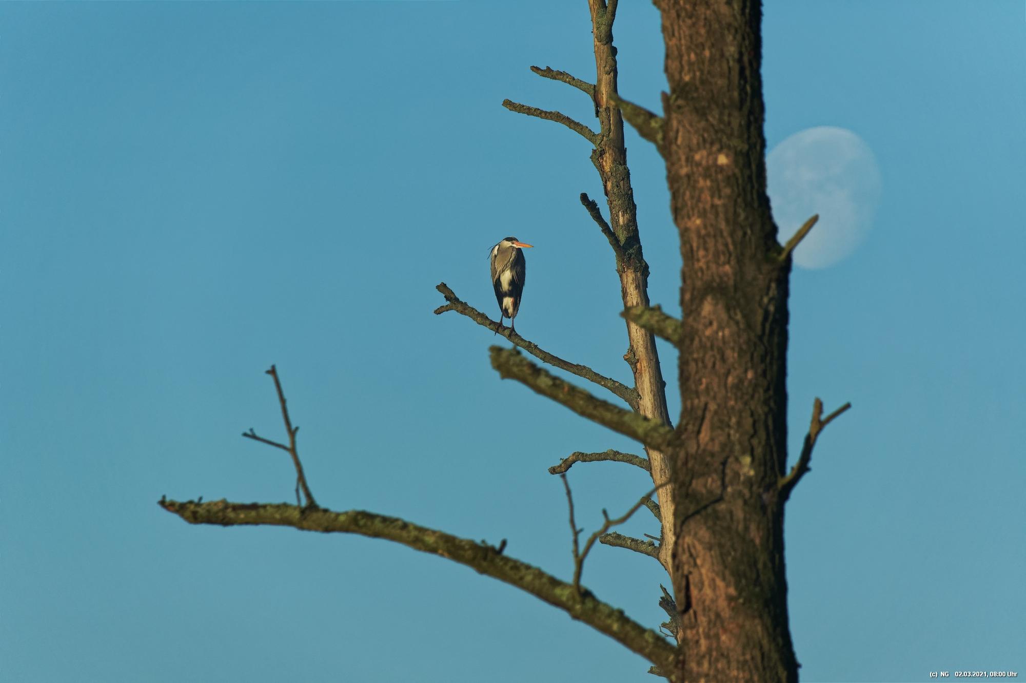 Der See ist spektakulär und für mich ein einzigartiger Ort, der im weitem Umkreis seinesgleichen sucht. Heute kam alles zusammen: Es war dunkel, aber im süd-westlichen Teil stand noch etwa 3/4-Mond und spendete bei wolkenfreiem Himmel viel Licht. Bei Temperaturen um den Gefrierpunkt entwickelten sich wandernde Nebel. Auf der anderen Seite ging dann die Sonne auf und so sah ich 2 unterschiedliche Welten links und rechts des Weges. Die Tiere erwachten und nacheinander lieferten sie ein Spektakel.