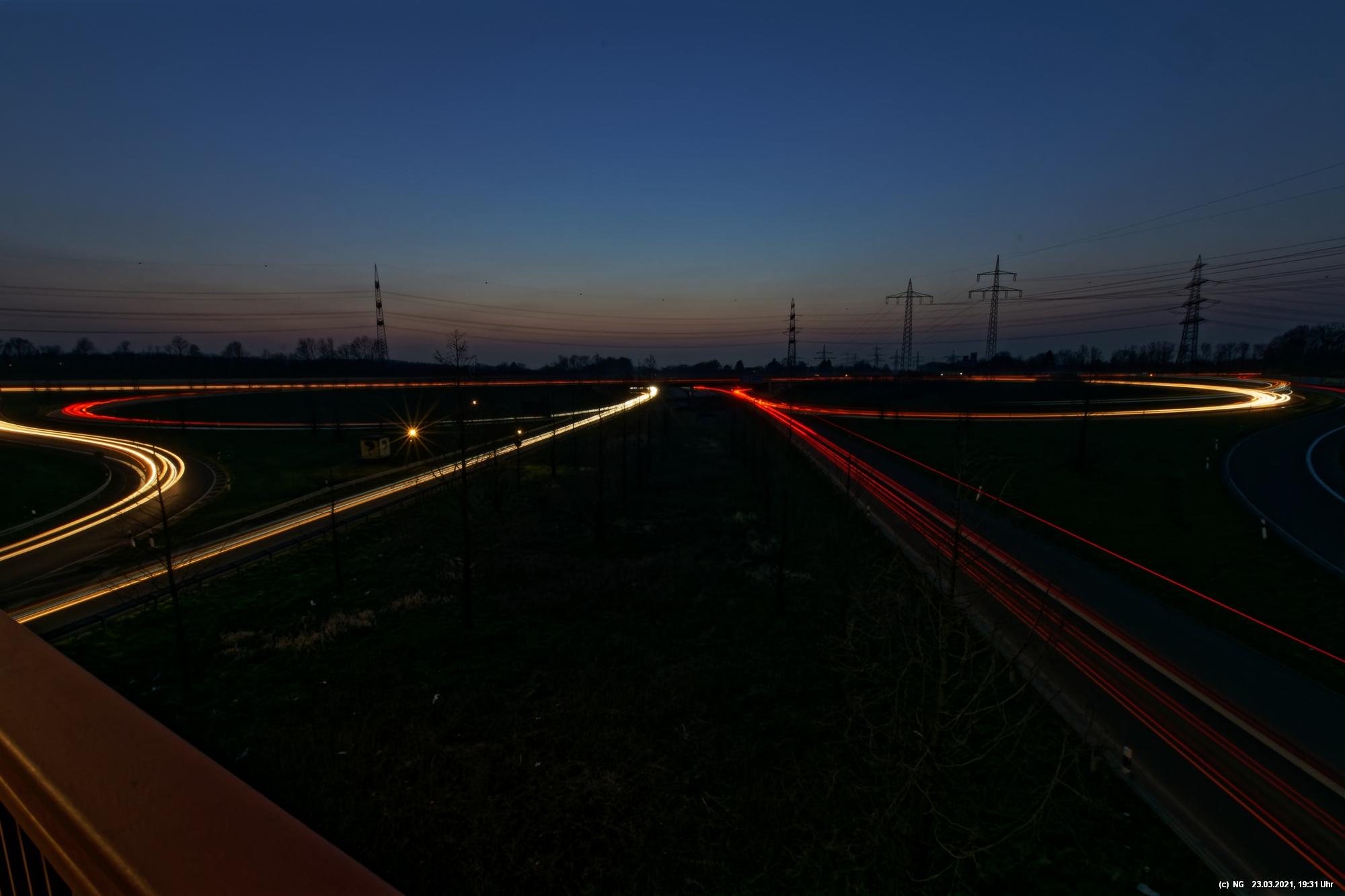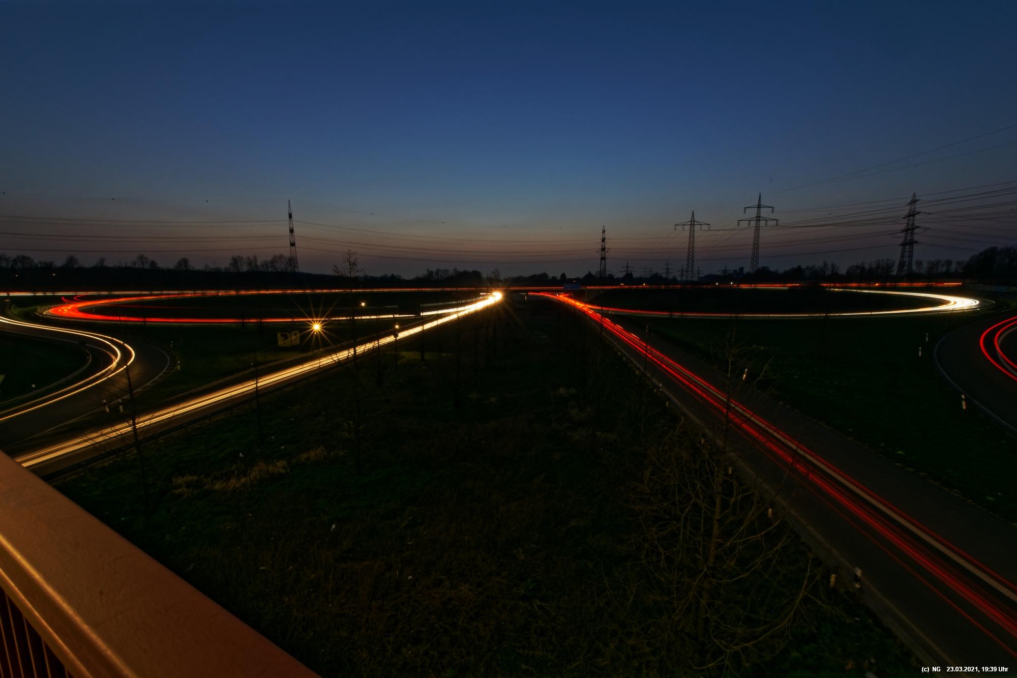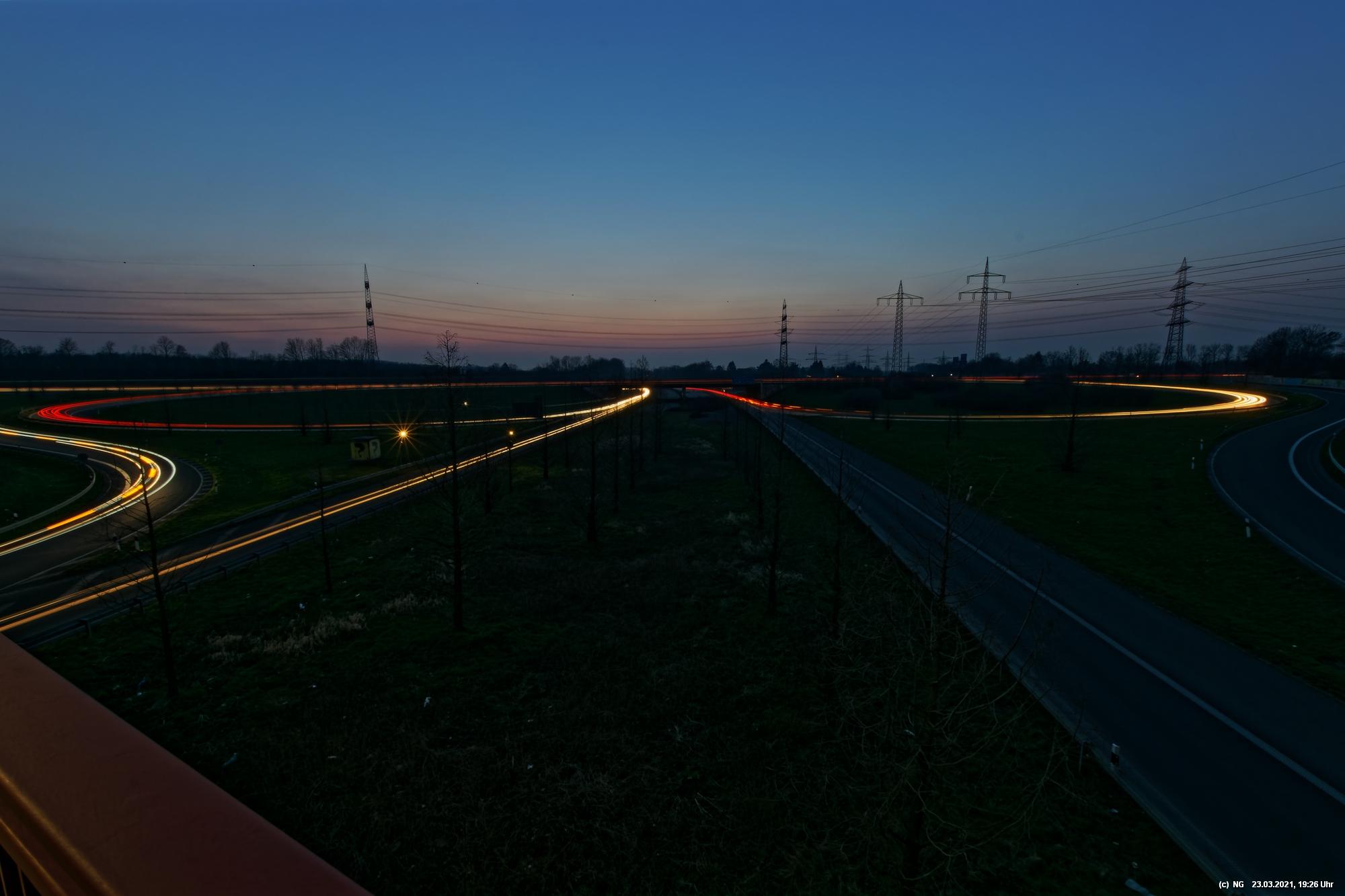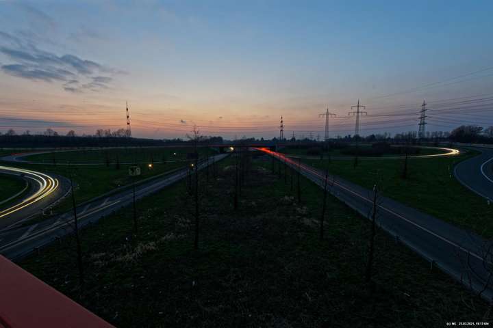 Die ersten 5 Bilder sind am 20.03.2021 entstanden auf der A45 mit Blickrichtung zum Recklinghäuser Kreuz mit der A2 - die anderen Bilder am 23.03.2021 am Dreieck der A42 mit der A45 in Dortmund-Bodelschwingh (Empfehlung durch Revierblicke) und zeigen völlig unterschiedliche Perspektiven.