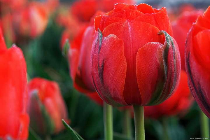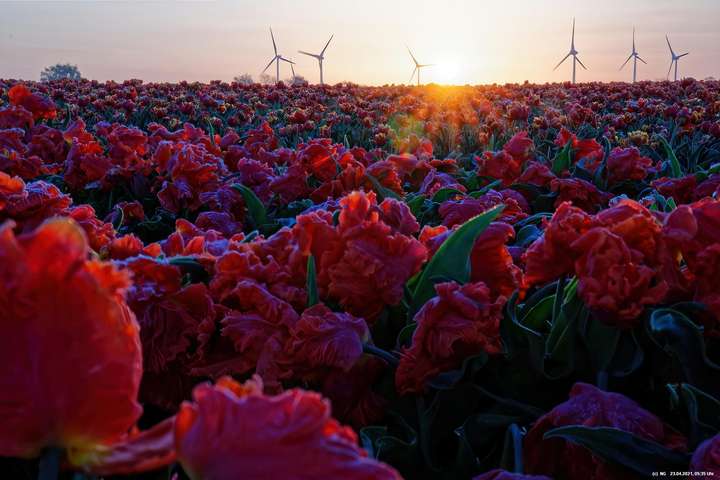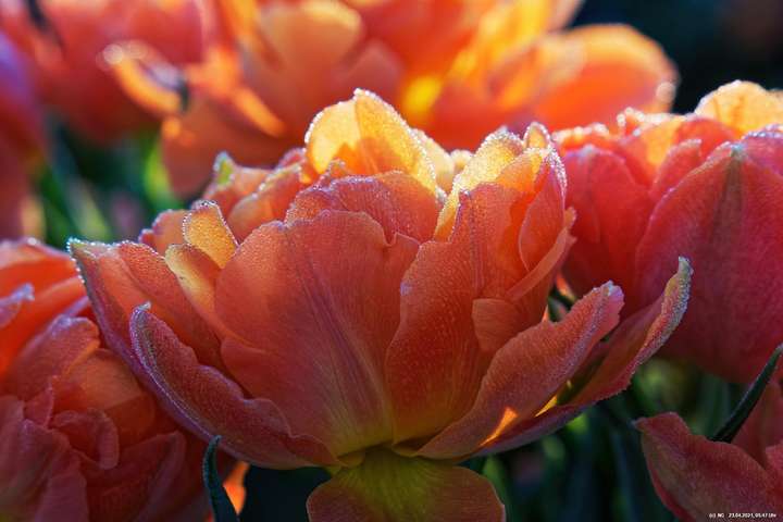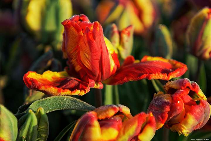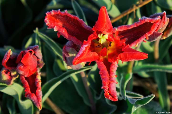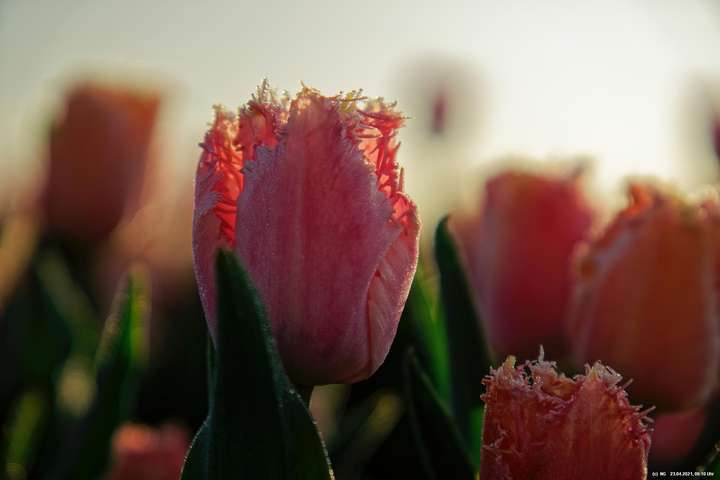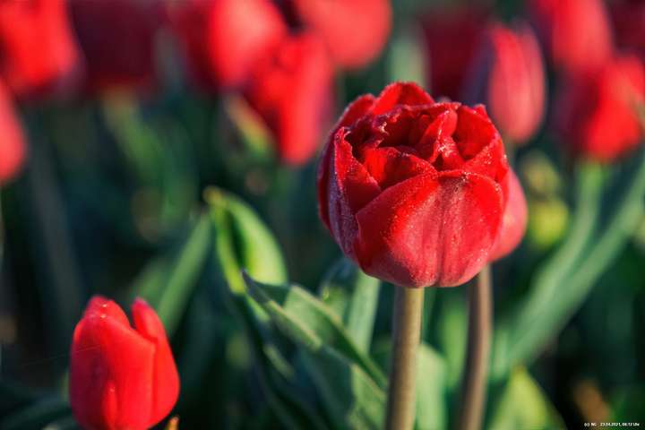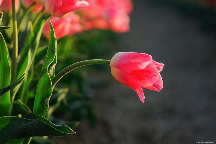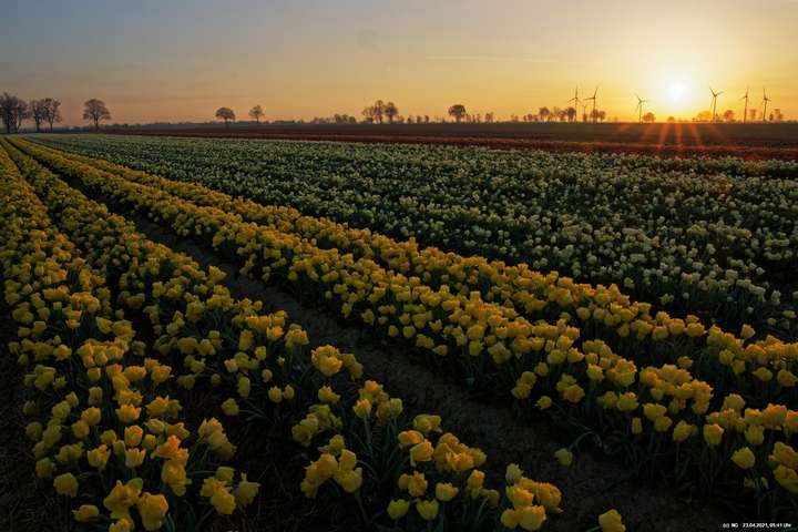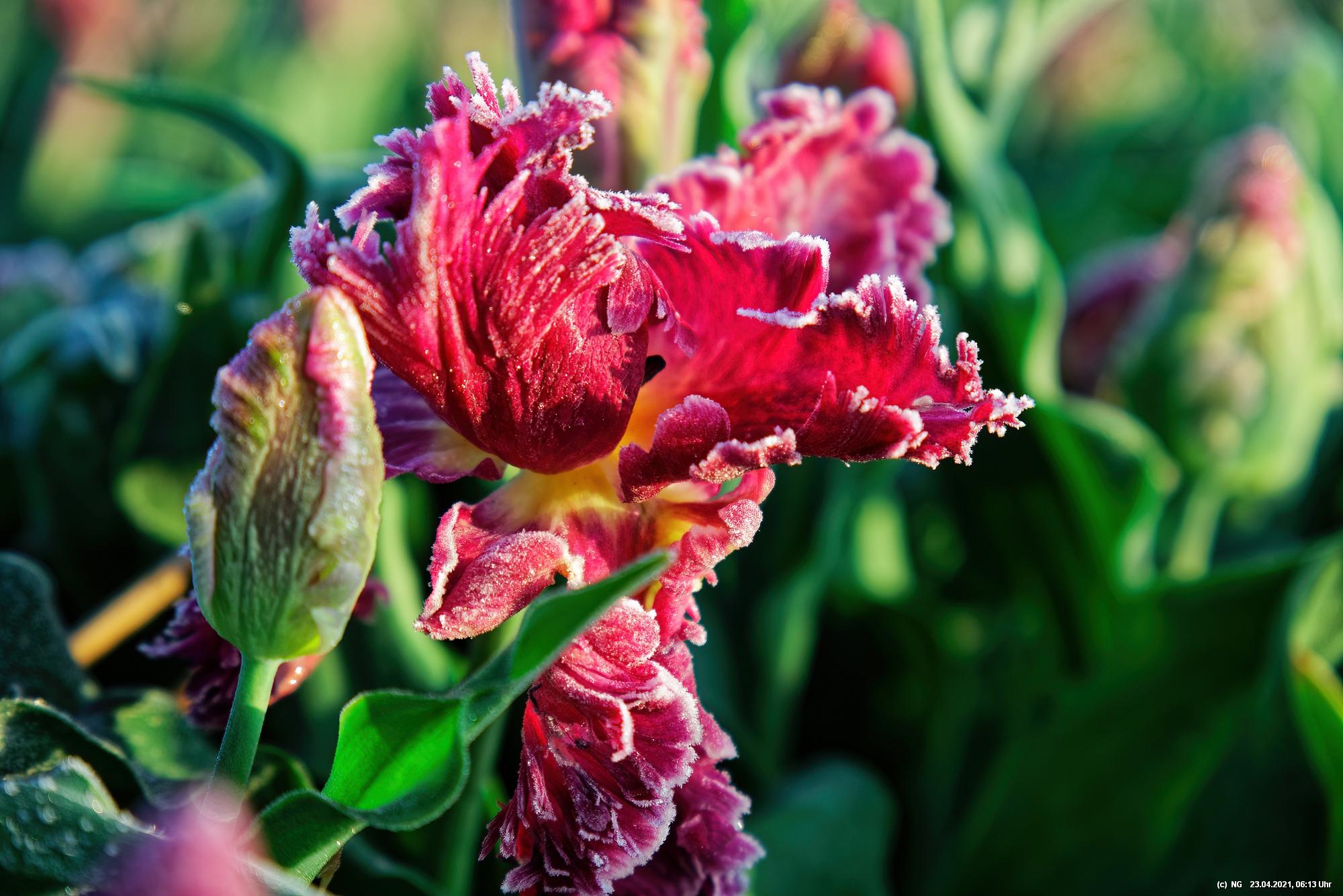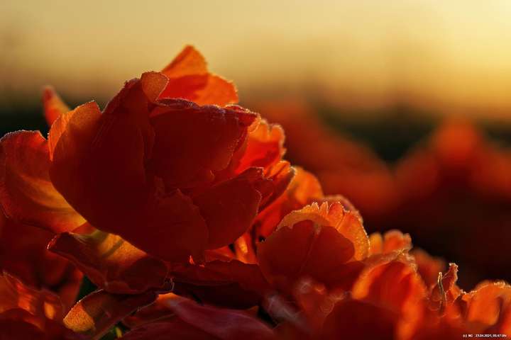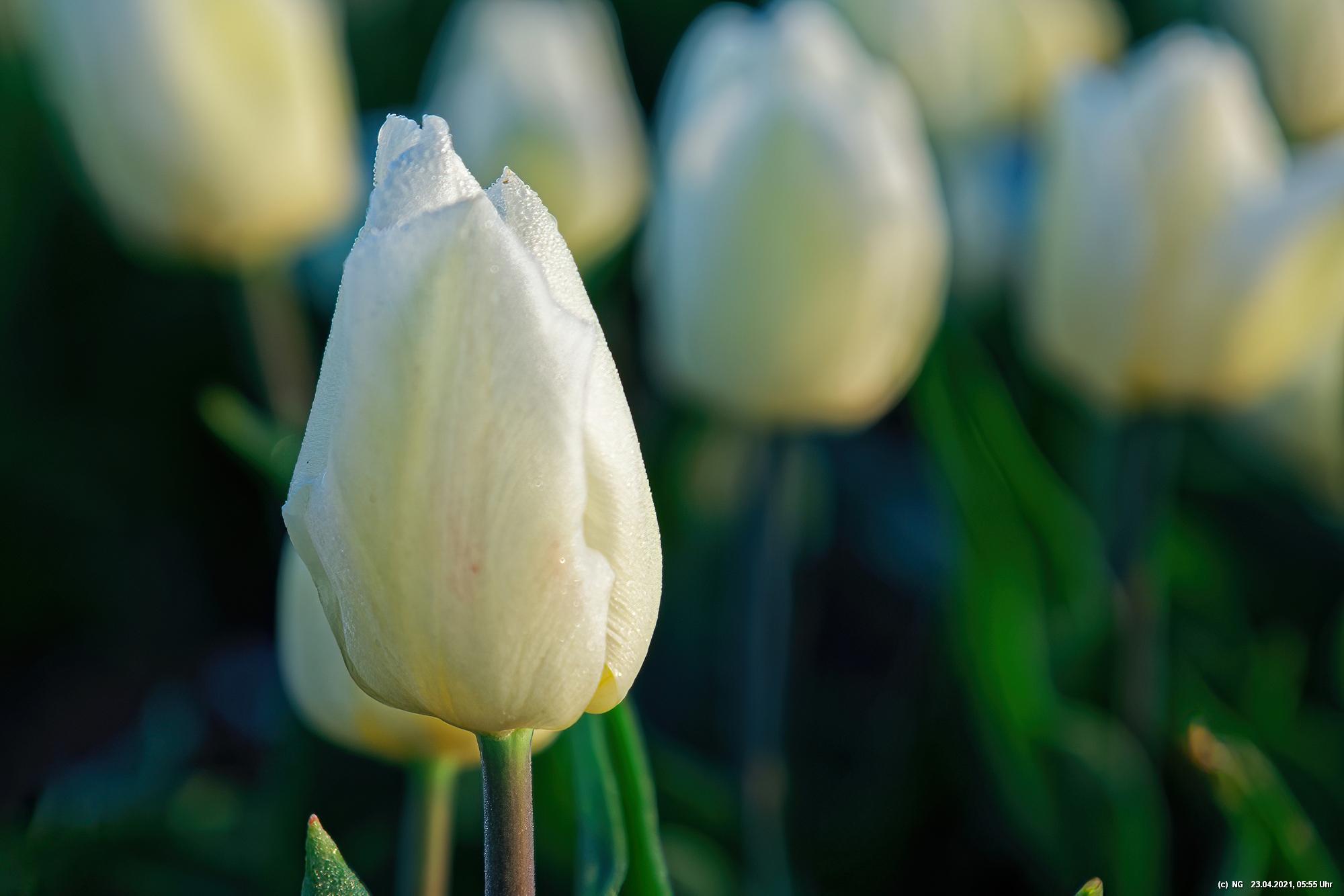 Kurz vor 06:30 Uhr ging dann die Sonne auf. Die Strahlen wärmten und gaben den Tulpen noch mehr Farbe.