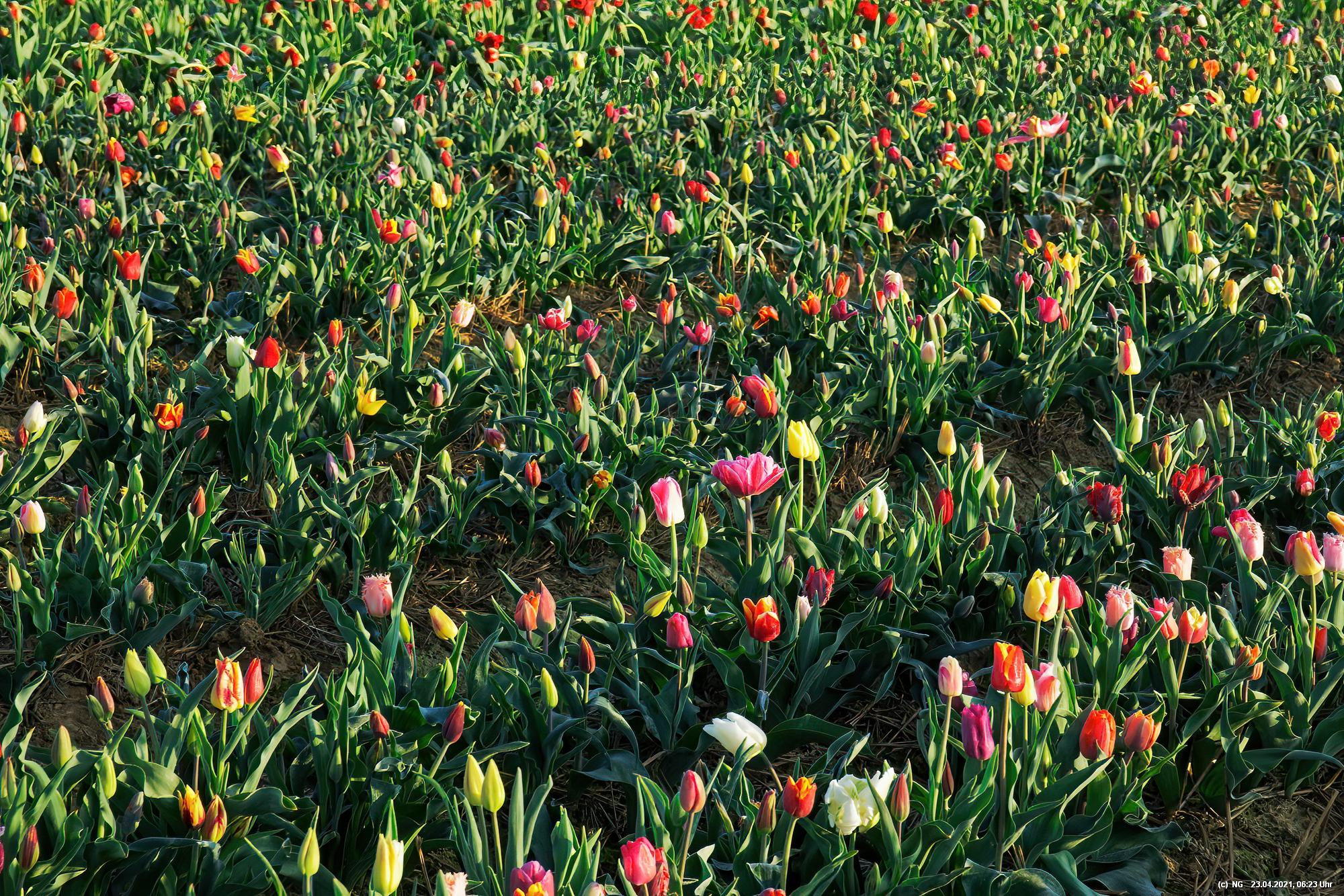 Es gibt sie auch hier bei uns, die Felder mit unzähligen Tulpen.