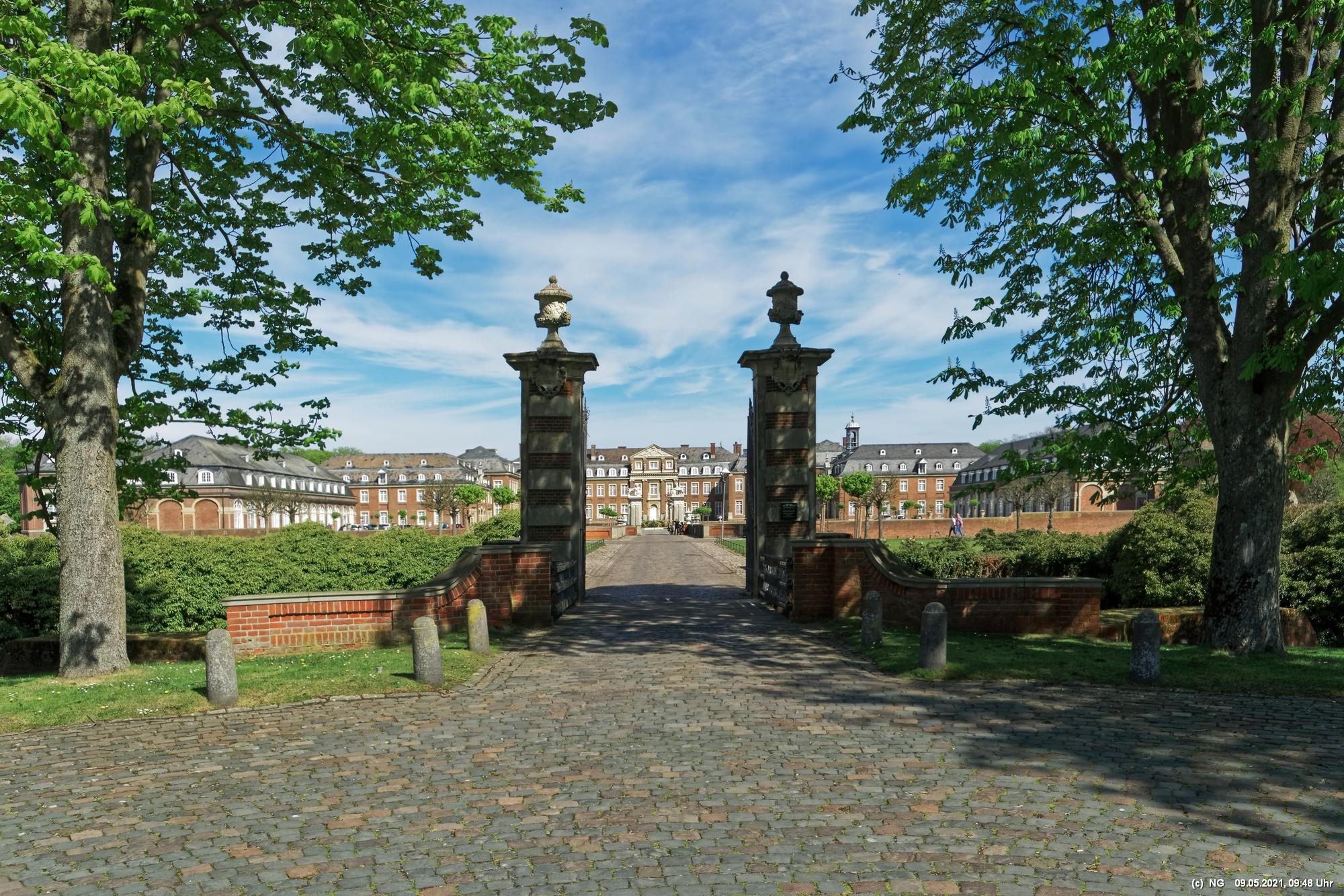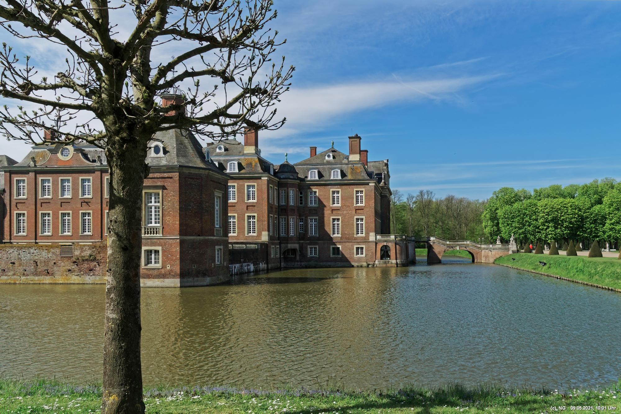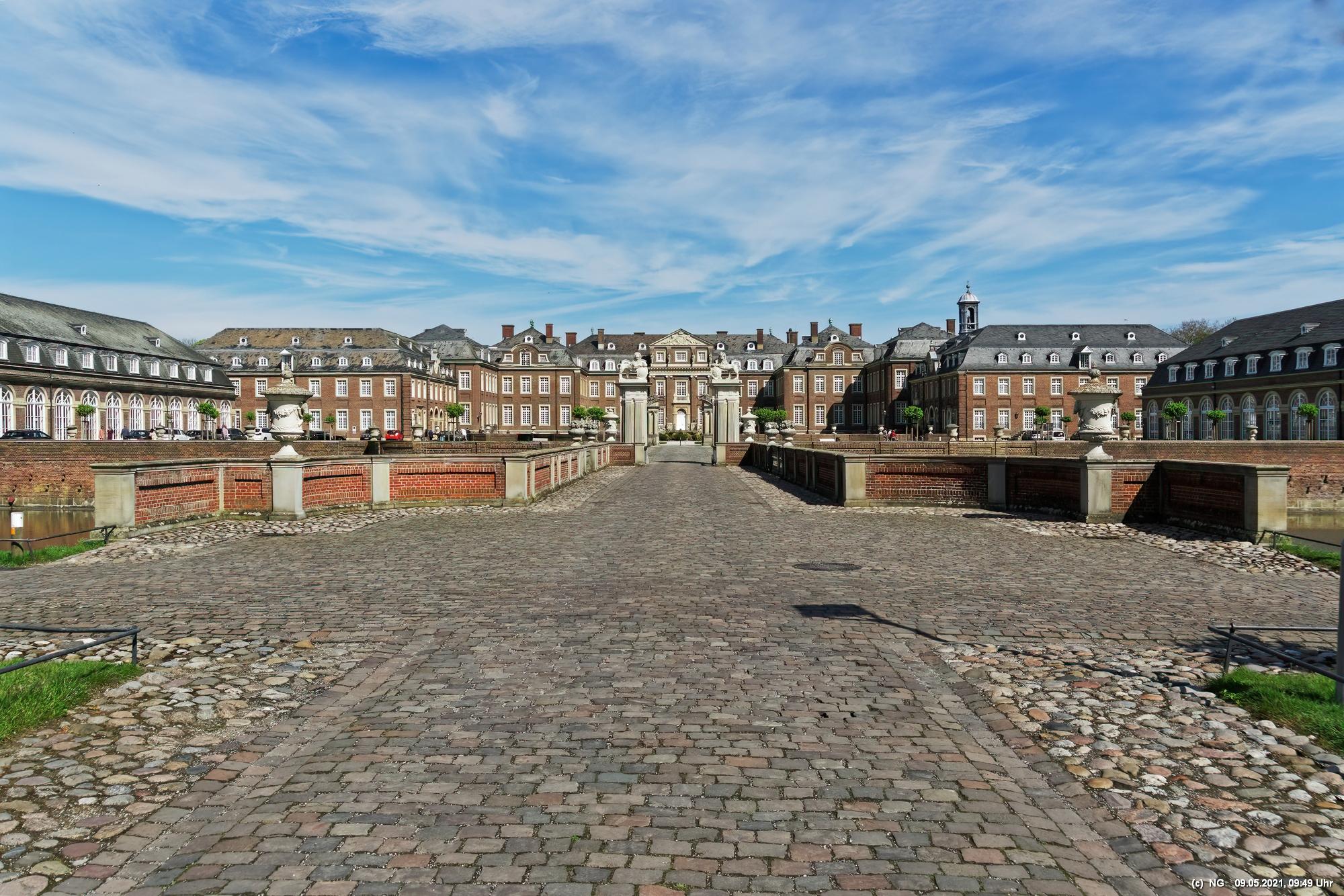 In Auftrag gegeben wurde es von Münsters Fürstbischof Friedrich Christian von Plettenberg. G. L. Pictorius. Es wurde von 1703 bis 1734 in mehreren Bauetappen erbaut. Nach rund dreißigjähriger Bauzeit stellte dann J.C. Schlaun den Prunkbau fertig. Das barocke Wasserschloss liegt auf einer Insel inmitten eines großen Parks (170 ha), der nach französischem Vorbild angelegt worden war. Die Gartenanlagen wurden ähnlich dem Vorbild wieder aufgebaut, da eine genaue Rekonstruktion nicht mehr möglich war. Heute befindet sich im Schloss die Fachhochschule für Finanzen in NRW. Es war der erste wirklich warme Tag des Jahres. Wir waren früh dort. Erst auf unserem Rückweg kamen die Massen.