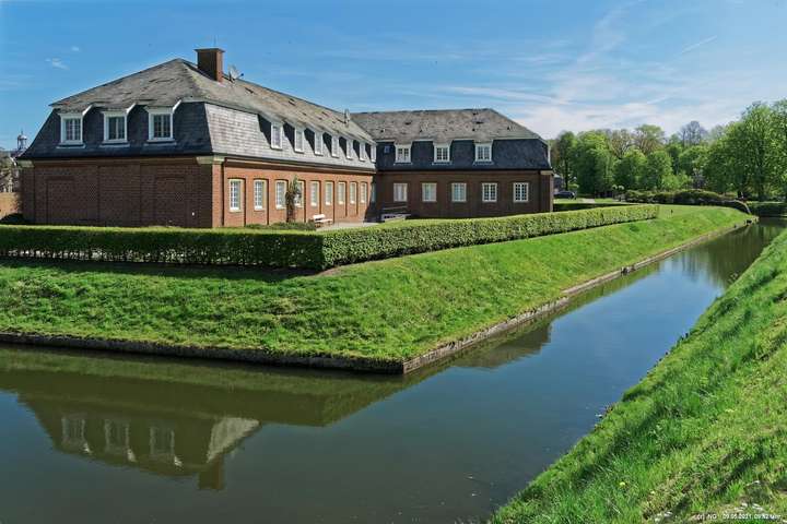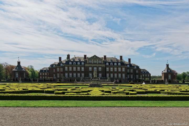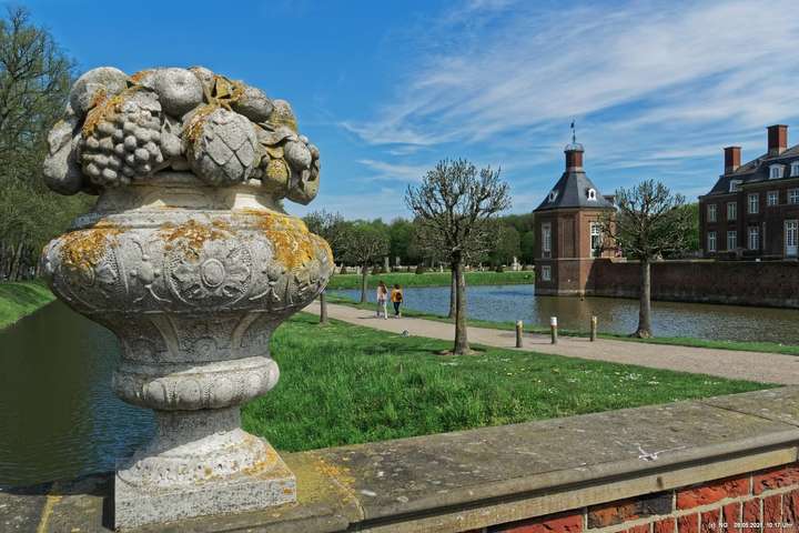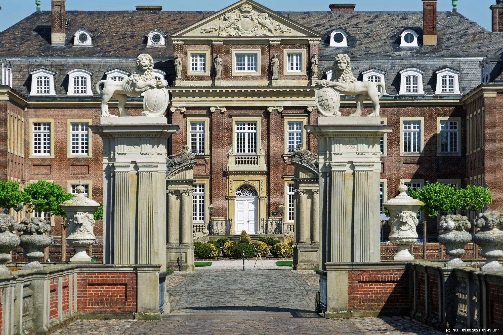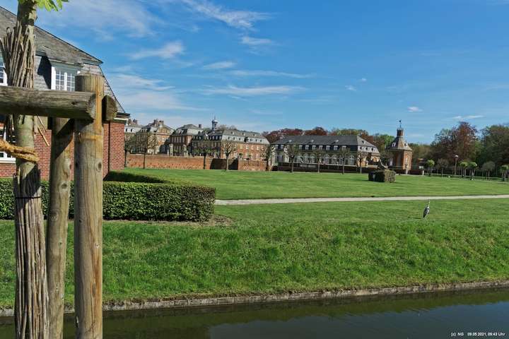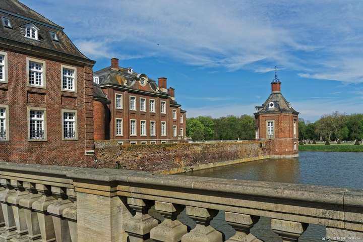In Auftrag gegeben wurde es von Münsters Fürstbischof Friedrich Christian von Plettenberg. G. L. Pictorius. Es wurde von 1703 bis 1734 in mehreren Bauetappen erbaut. Nach rund dreißigjähriger Bauzeit stellte dann J.C. Schlaun den Prunkbau fertig. Das barocke Wasserschloss liegt auf einer Insel inmitten eines großen Parks (170 ha), der nach französischem Vorbild angelegt worden war. Die Gartenanlagen wurden ähnlich dem Vorbild wieder aufgebaut, da eine genaue Rekonstruktion nicht mehr möglich war. Heute befindet sich im Schloss die Fachhochschule für Finanzen in NRW. Es war der erste wirklich warme Tag des Jahres. Wir waren früh dort. Erst auf unserem Rückweg kamen die Massen.