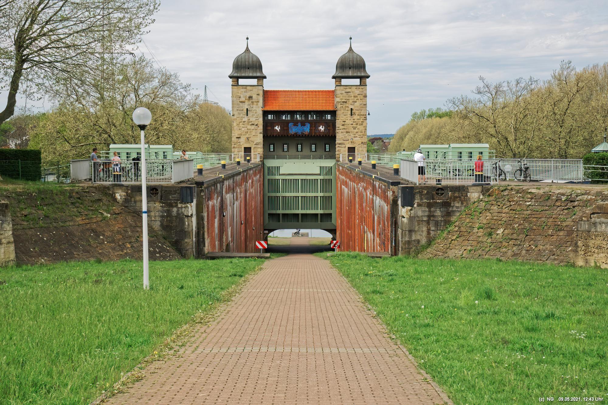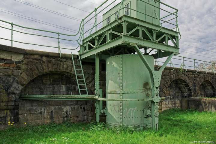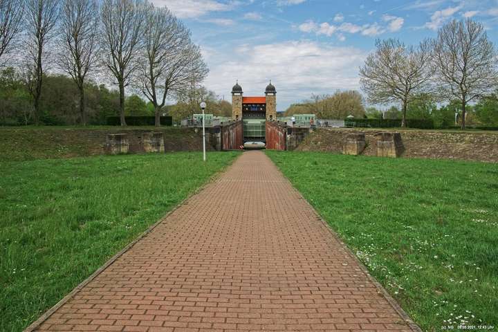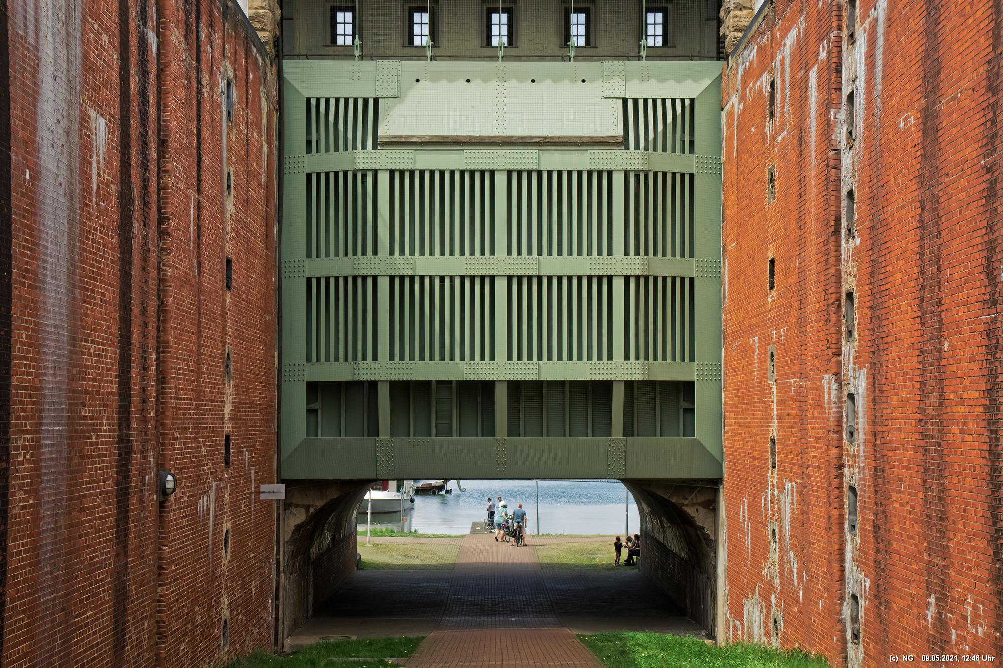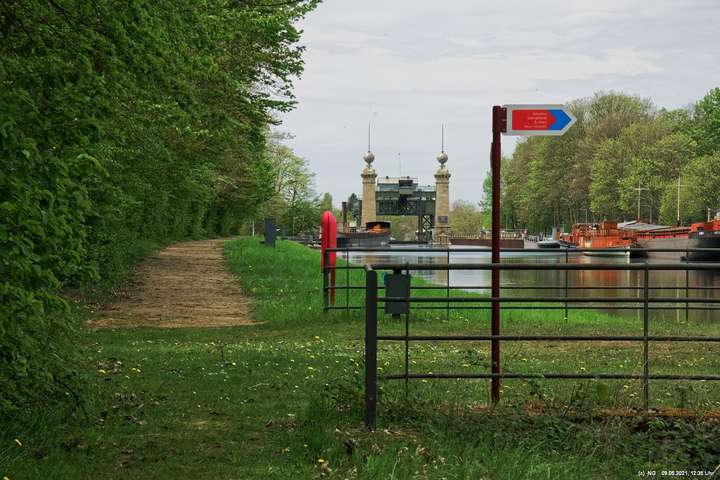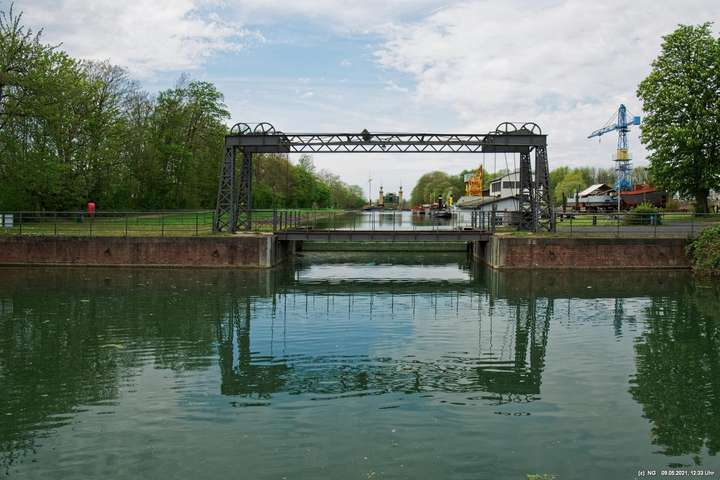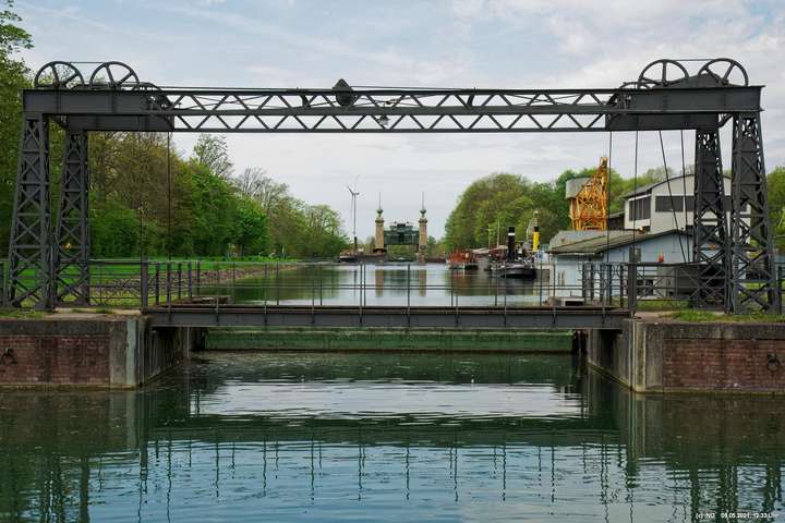 Dort stehen 2 Hebewerke und 2 Schleusen, wovon eine noch in Betrieb ist.