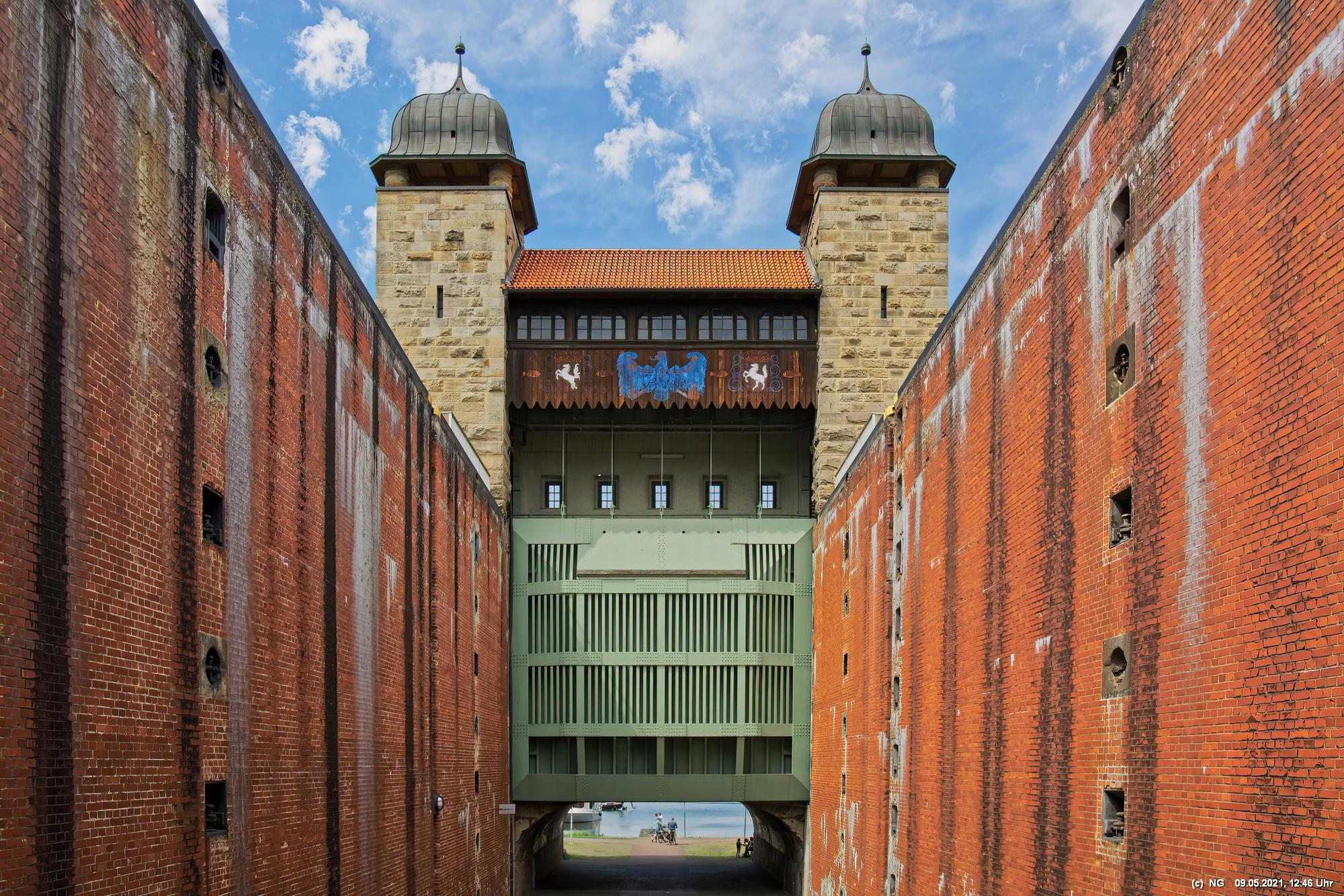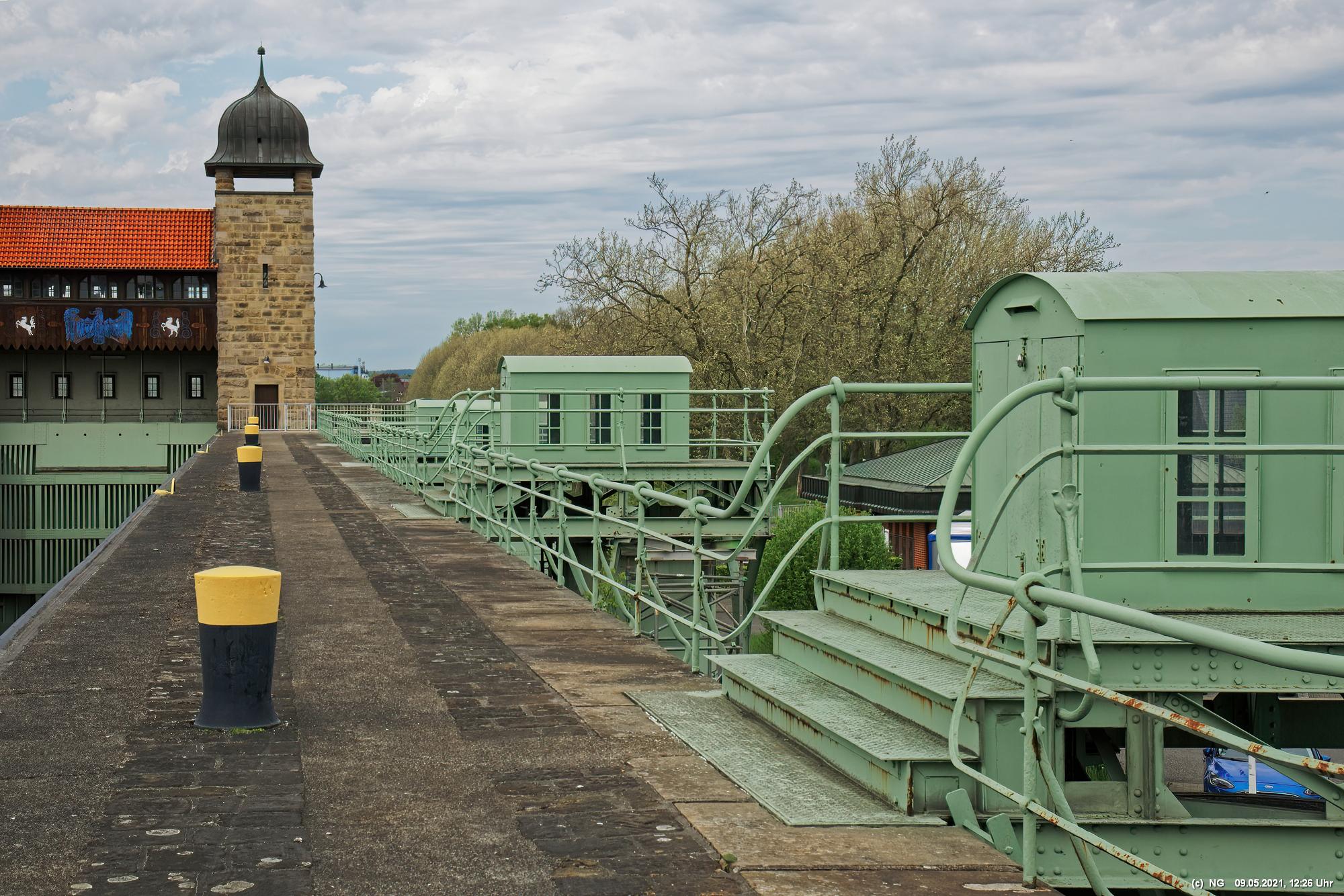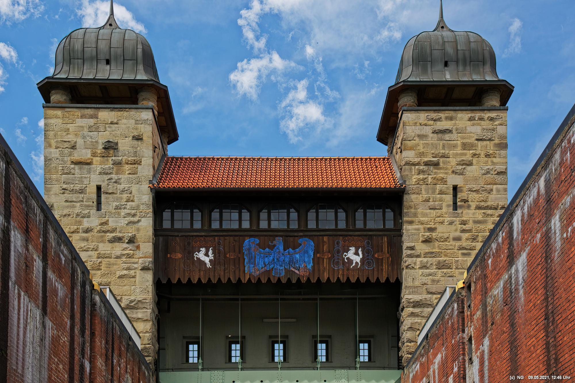 Dort stehen 2 Hebewerke und 2 Schleusen, wovon eine noch in Betrieb ist.
