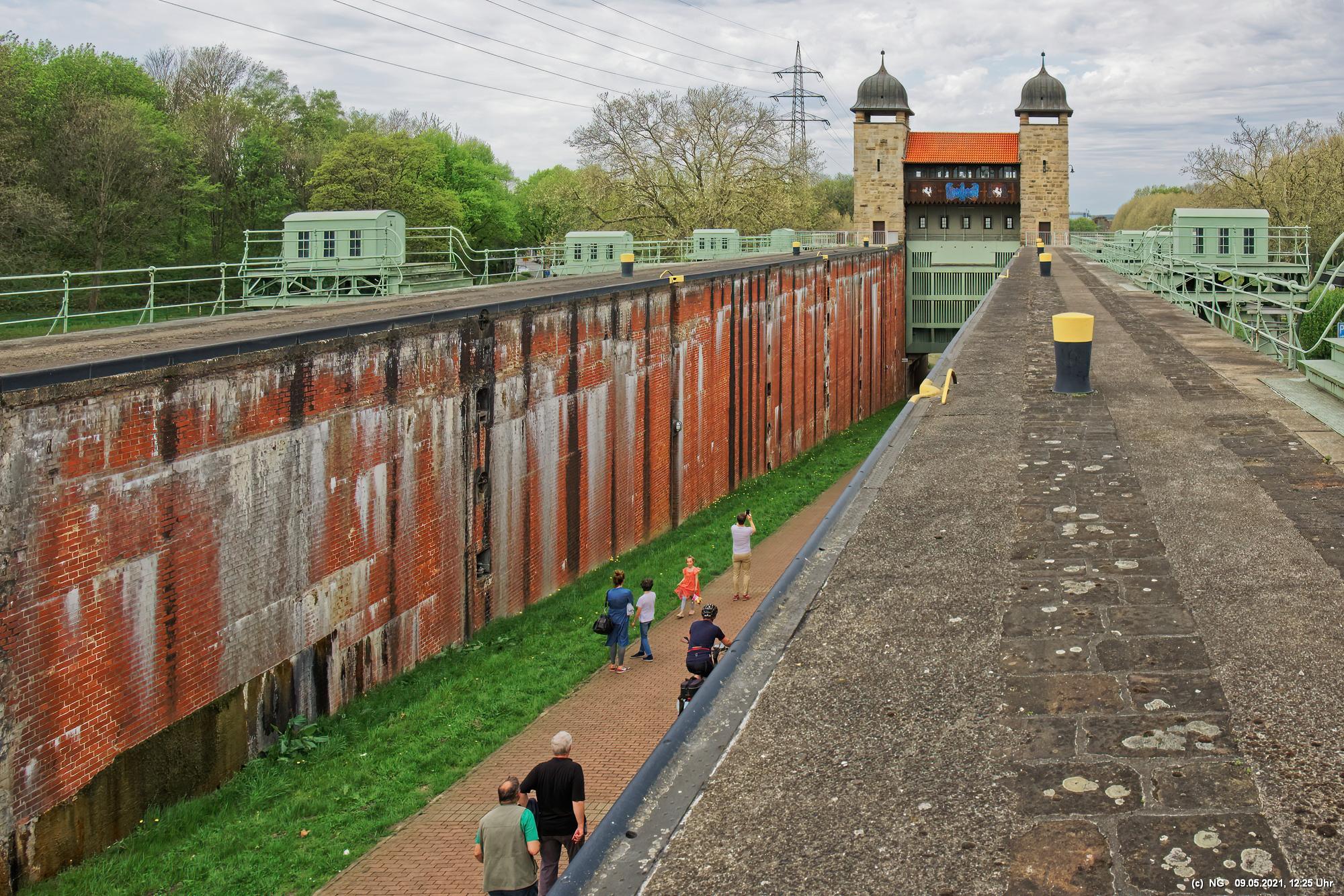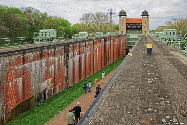 Wir waren vornehmlich im Bereich des Oberwassers des alten Hebewerks und in der jetzt begehbaren, stillgelegten alten Schleuse. Sämtliche historischen Abstiegsbauwerke stehen unter Denkmalschutz. Alles gehört zum LWL-Freilichtmuseum und wird bestens gepflegt.