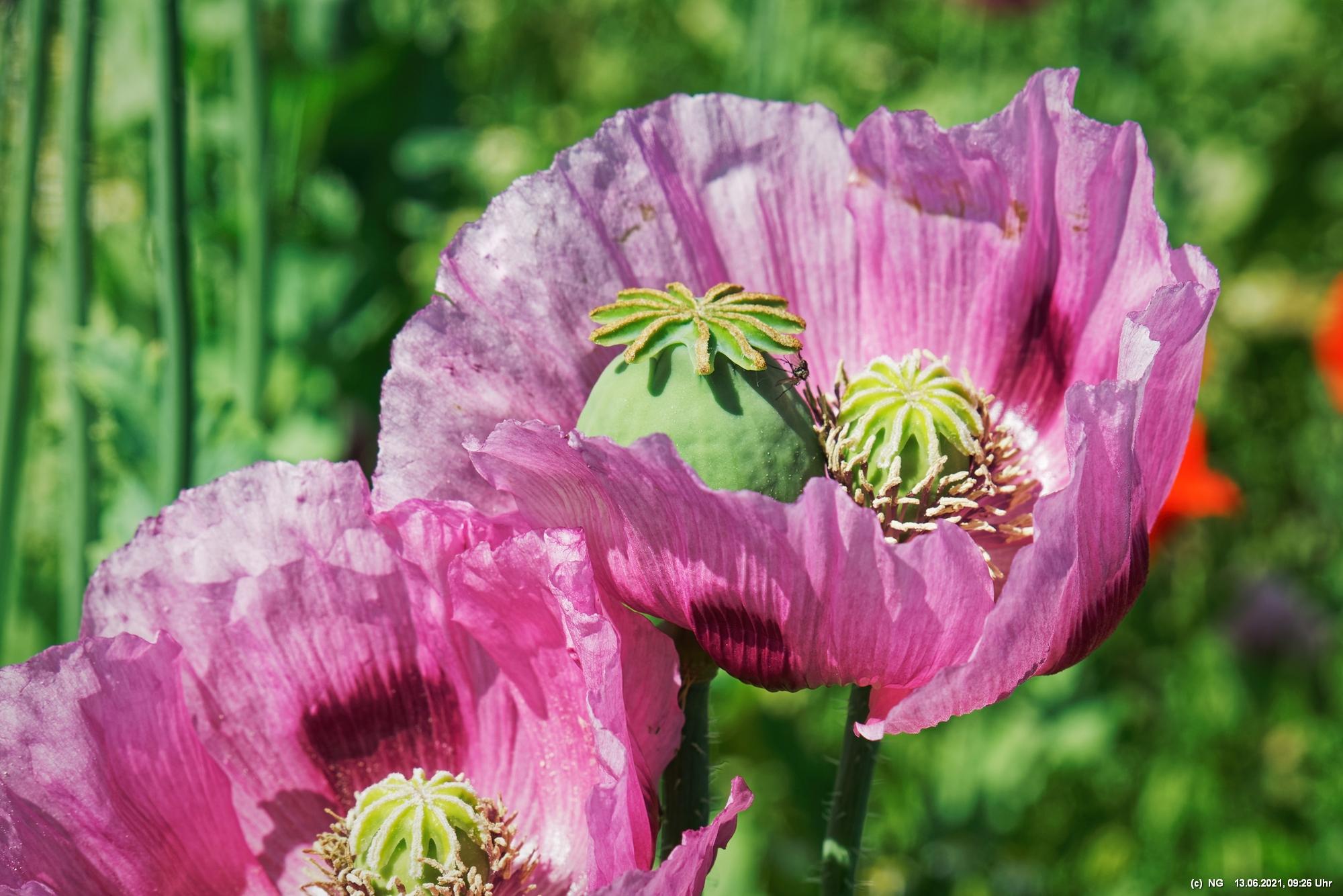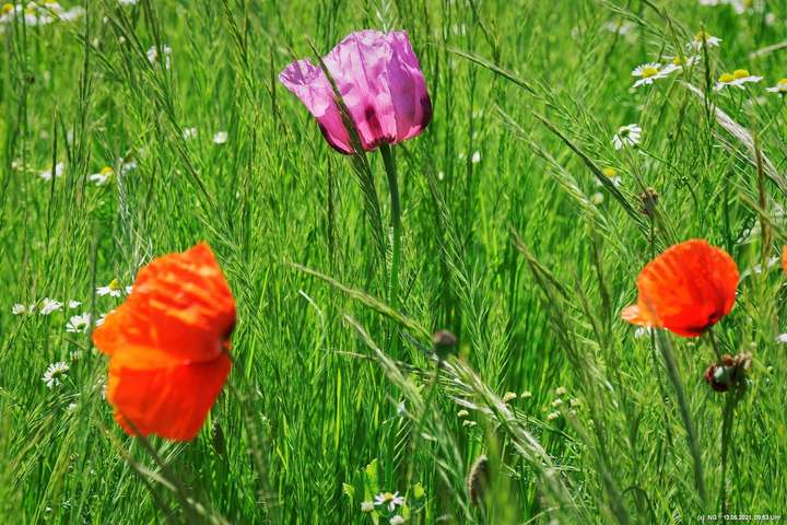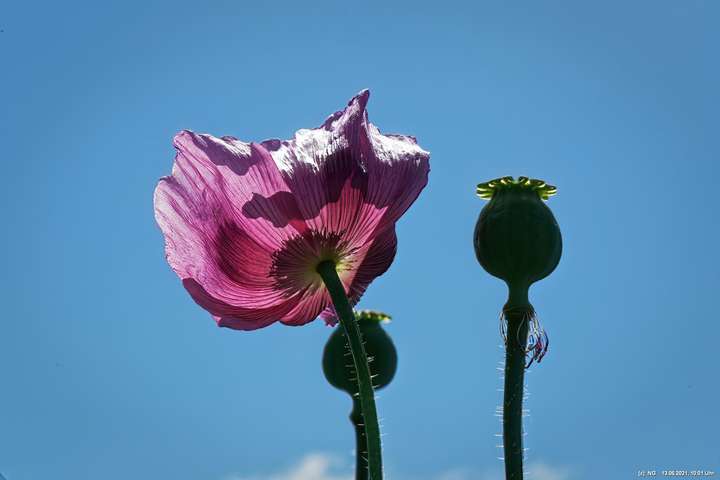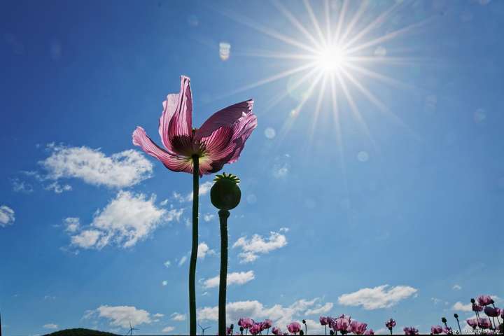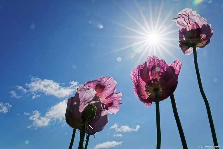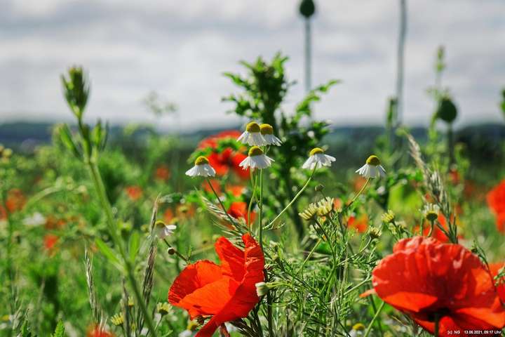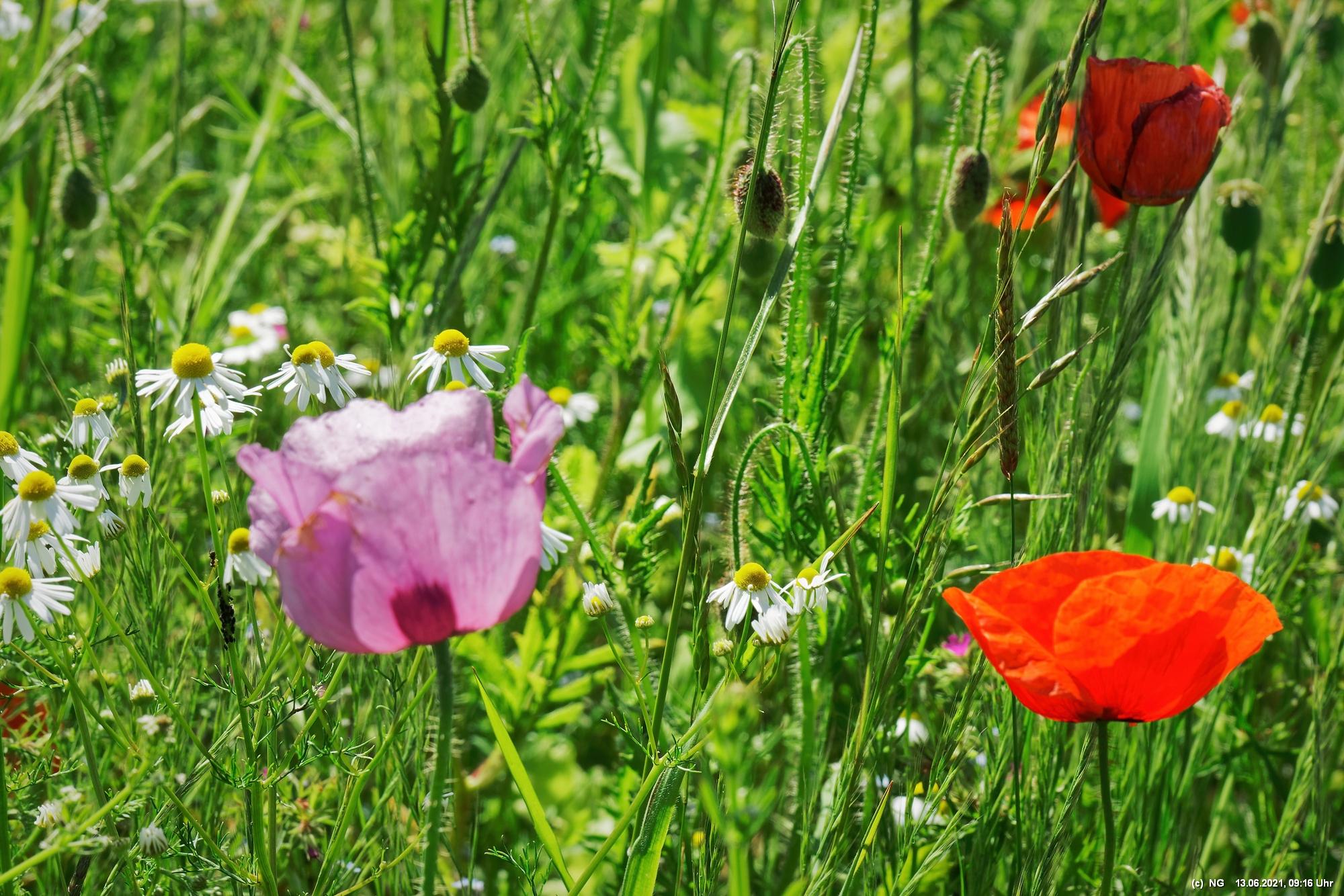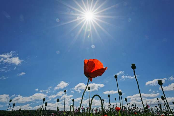 Die Gemeinde Kalletal liegt sehr idyllisch im Nordosten Nordrhein-Westfalens. Irgendwie ist die Welt dort noch in Ordnung. Ein wenig versteckt liegt abseits der großen Straßen das Anbaufeld am Bruchweg. Auch wenn man schon da ist, ahnt man es erst, bevor man eine Kuppe überwindet. Und dann sieht man das Meer von „Papaver somniferum“ oder einfach Schlafmohn, der für die regionalen Bäckereien angebaut wird. Die Blüten halten sich nur einen Tag. Davor haben sich roter Mohn und wilde Kamille angesiedelt. Millionen Blüten finden den Weg in die Sinne. Es war beeindruckend!