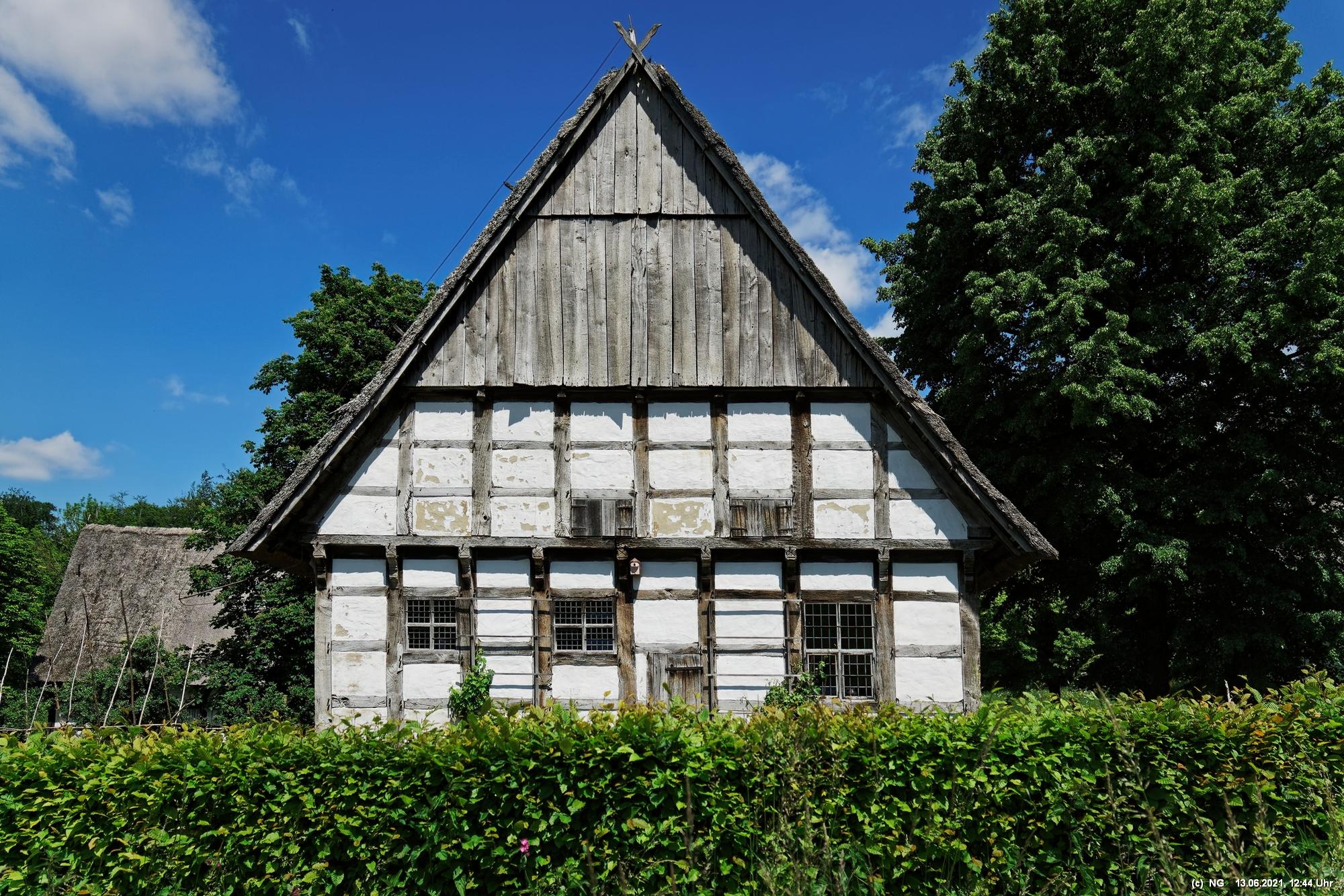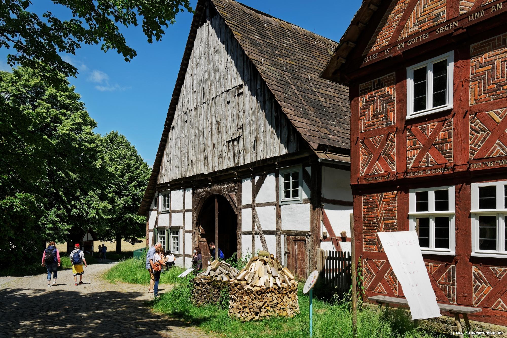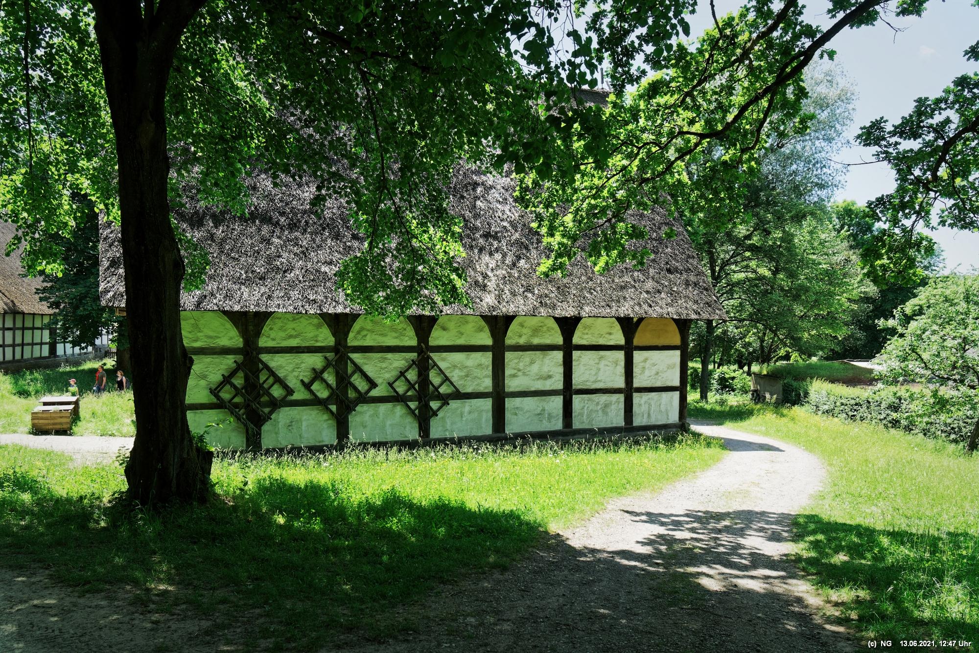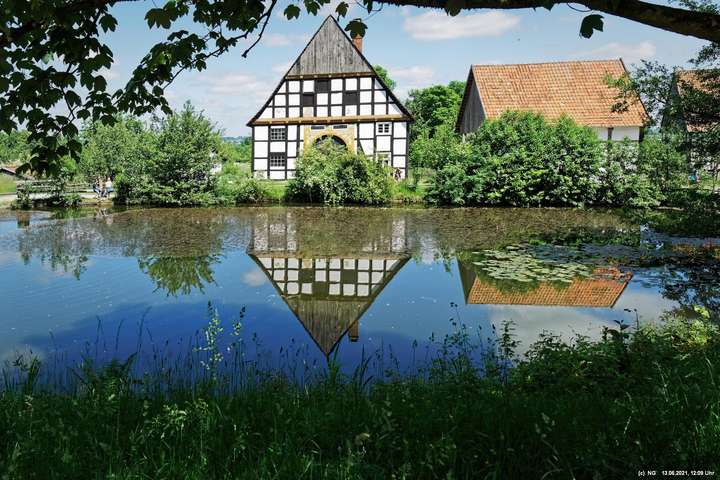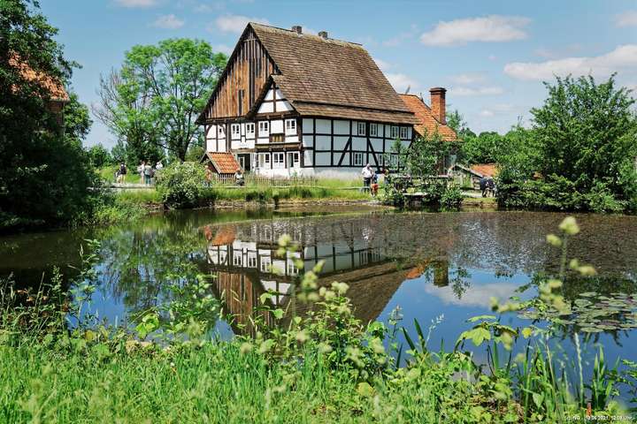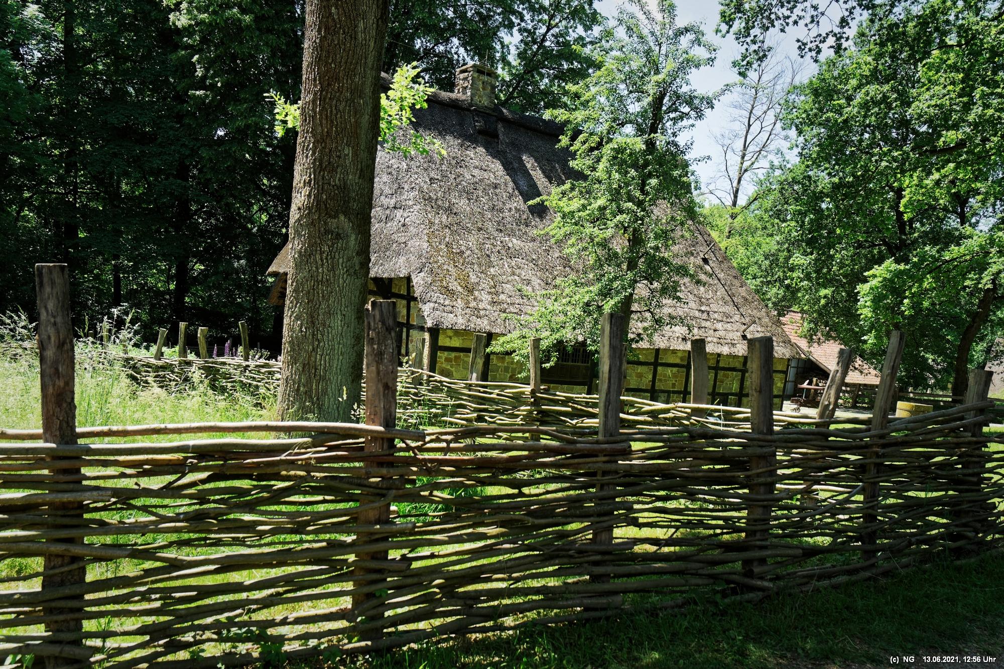 Im größten Freilichtmuseum Deutschlands stehen auf über 90 Hektar, über 120 Gebäude, Gärten, Felder, Lippegänse und Bentheimer Landschweine.