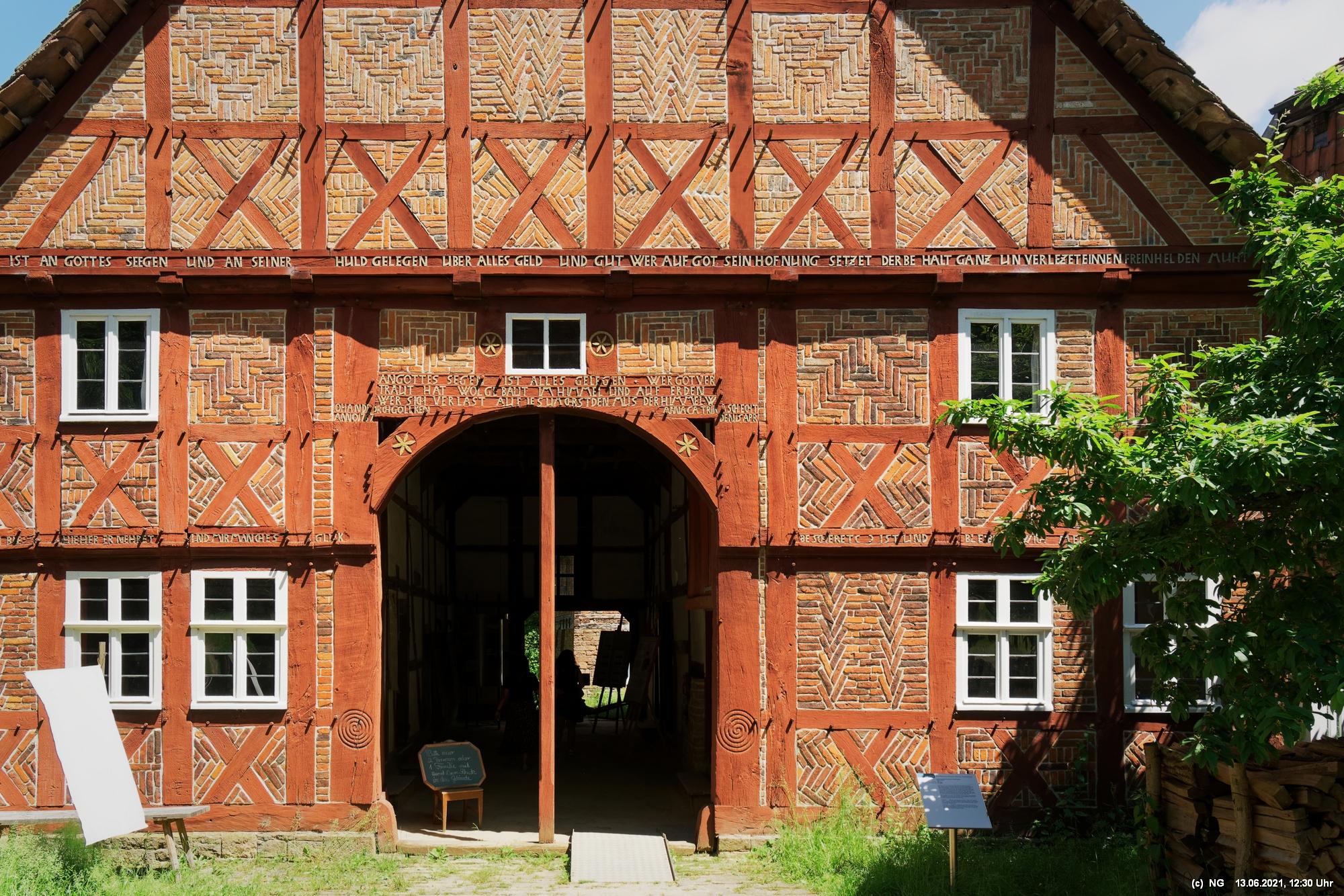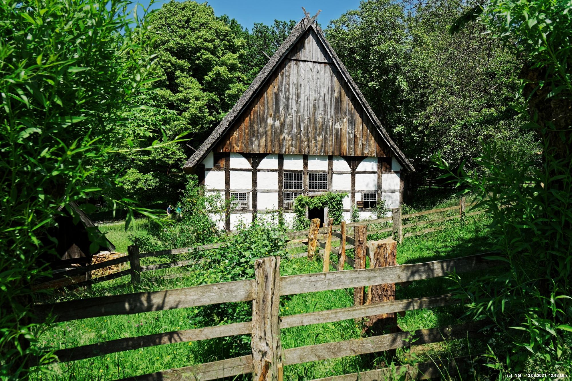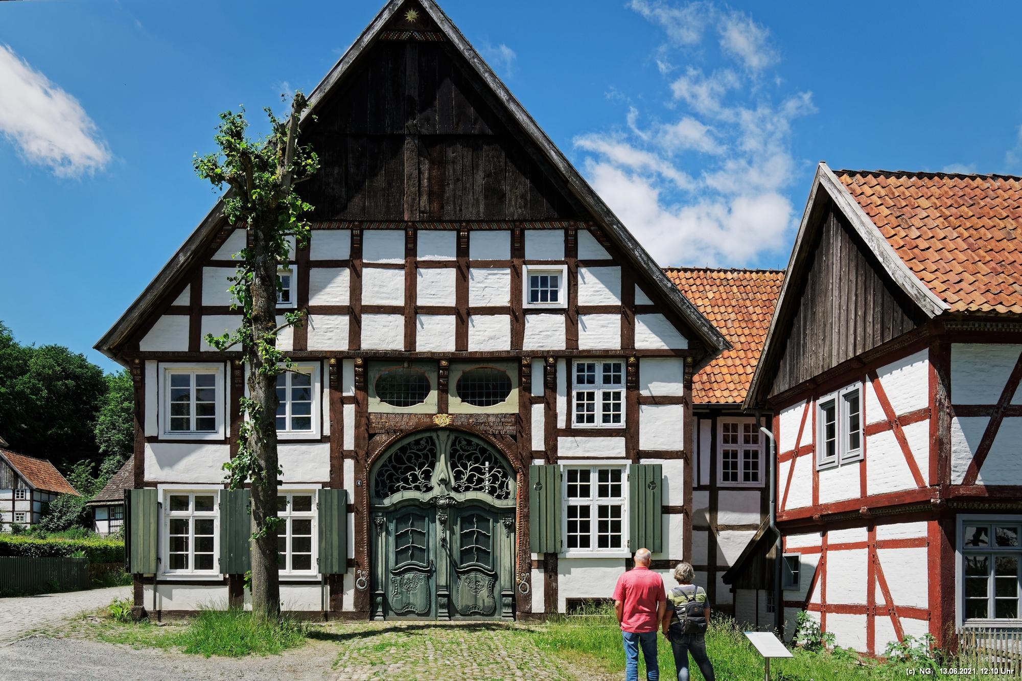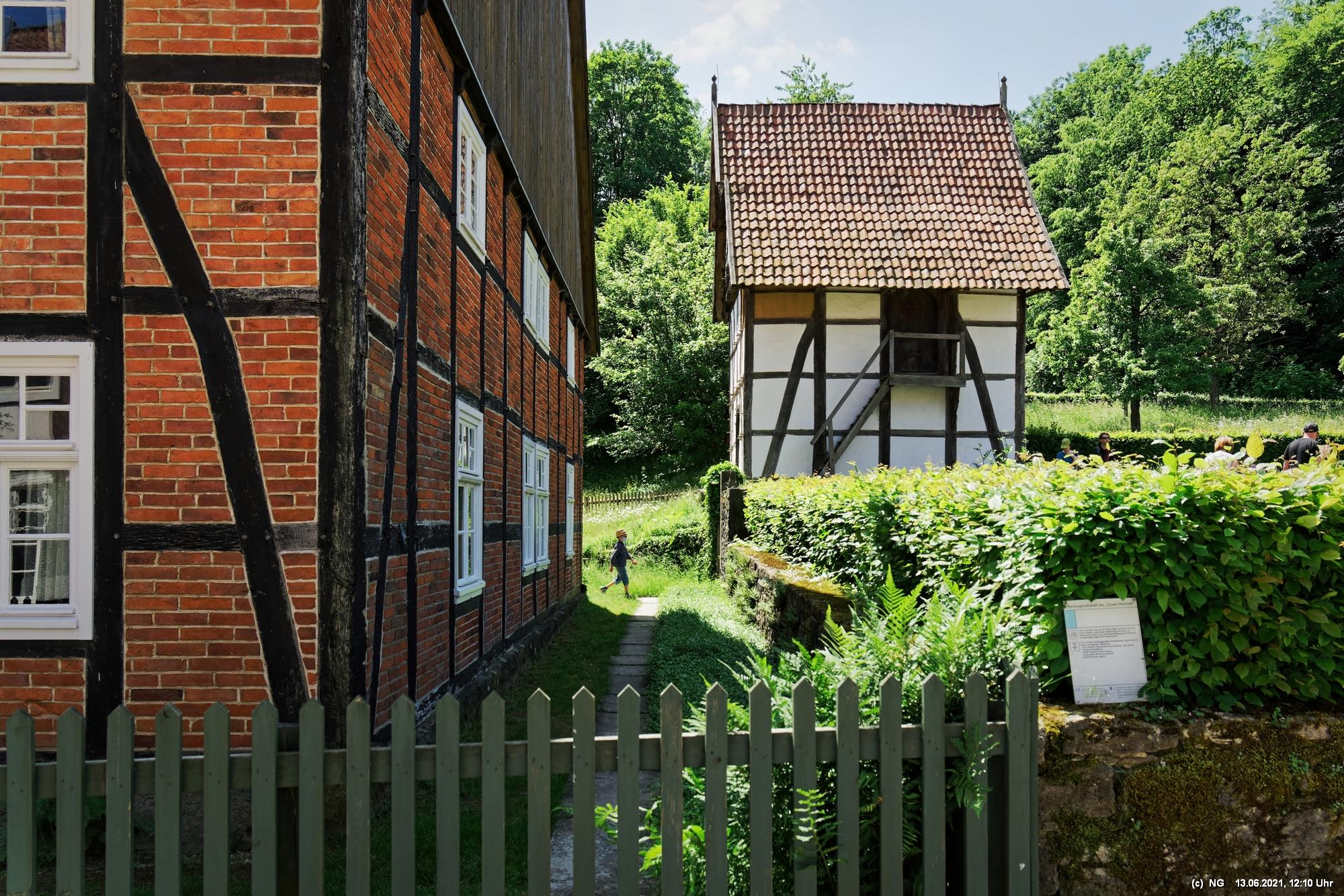 Im größten Freilichtmuseum Deutschlands stehen auf über 90 Hektar, über 120 Gebäude, Gärten, Felder, Lippegänse und Bentheimer Landschweine.