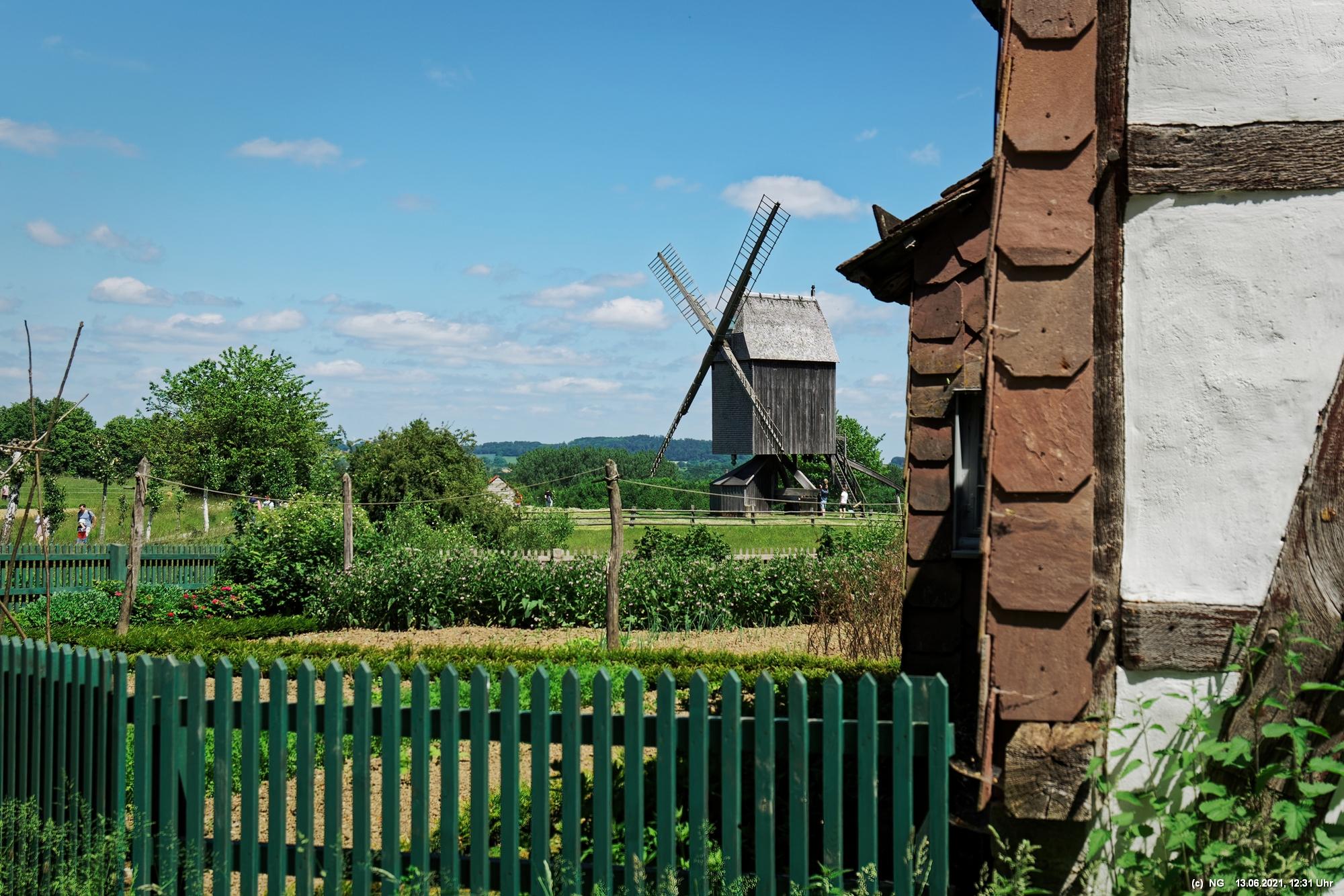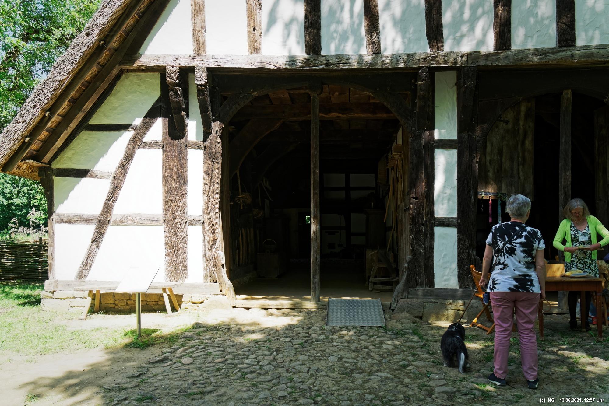 Es war ein sommerlicher Tag, an dem wir alles bestaunen konnten. Die vornehmend landwirtschaftlichen Häuser wurden in ganz Deutschland abgetragen und originalgetreu wieder aufgebaut. Dabei hat man dann Dörfer geschaffen, dazwischen bestellte Felder und Züchtungen von seltenem Obst, Gemüse und Getreide. Man hat viel Wert gelegt auf Originale, auch bei dem gezeigten Handwerk. Z.B. wird noch heute Brot nach alten Rezepten und Methoden auf Holzfeuer gebacken.