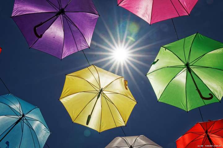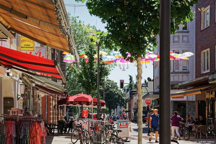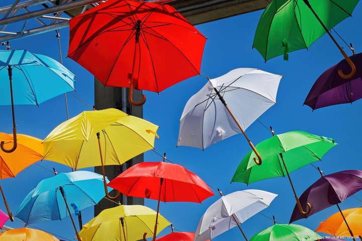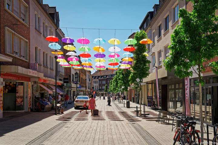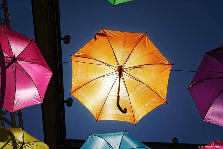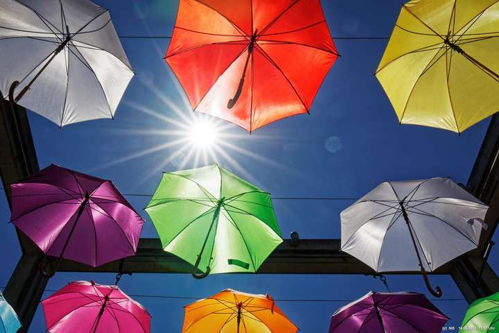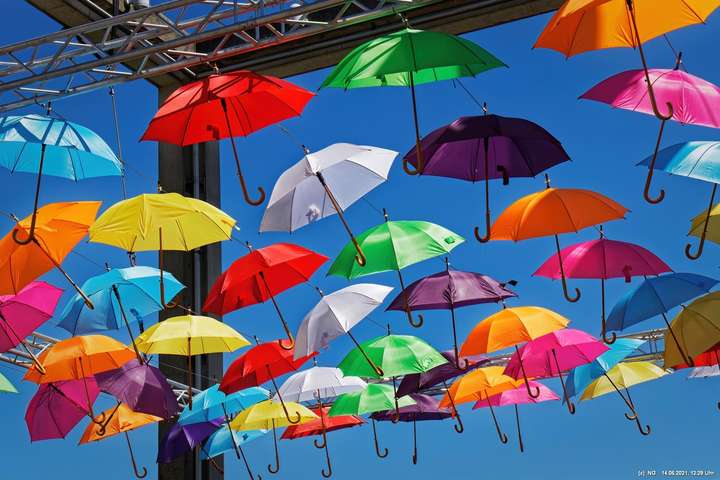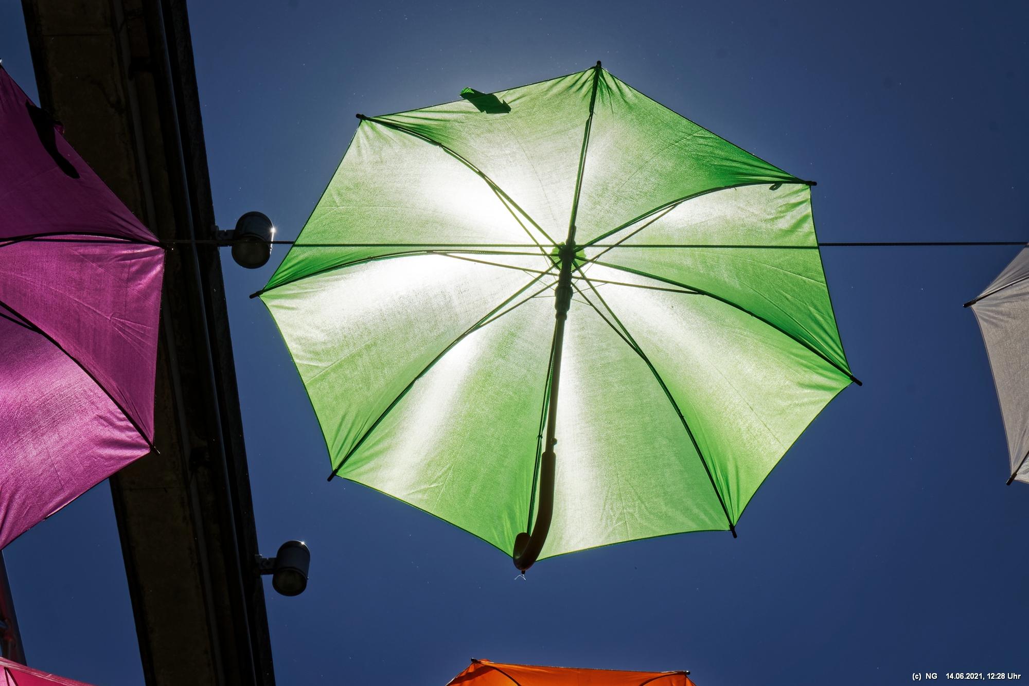 An den 3 Hautzugängen zur Innenstadt und über dem Marktplatz wurden mit den Lockerungen im Zuge der nachlassenden Infektionen mit Corona bunte Schirme aufgehängt. Ganz nach dem Motto „Wir sind wieder für Sie da! Live & bunt!“. Bei herrlichem Wetter sind sie auch ein Zeichnen der Freude, da die Innenstadt wieder ohne Masken begangen werden darf.