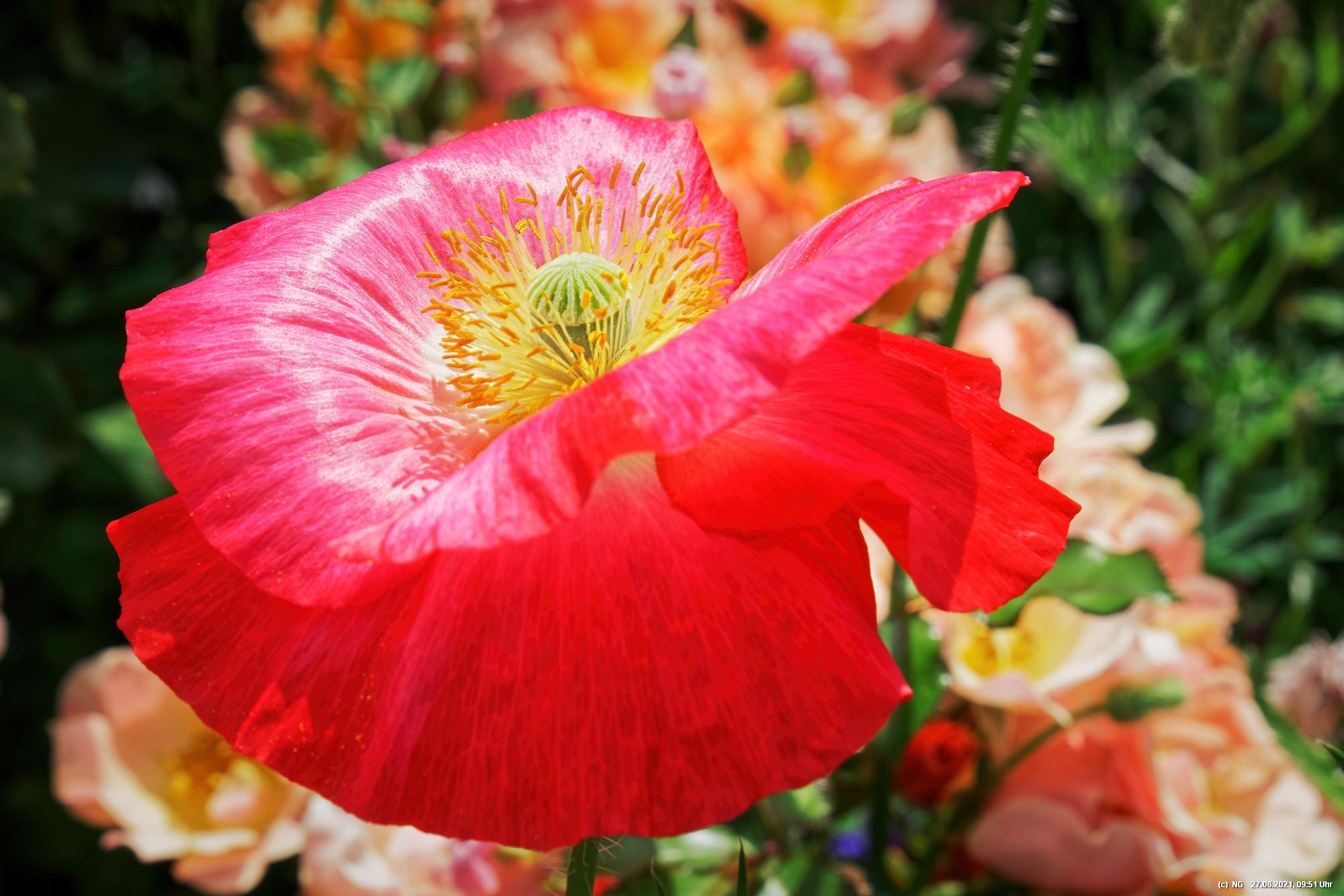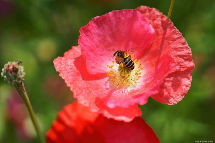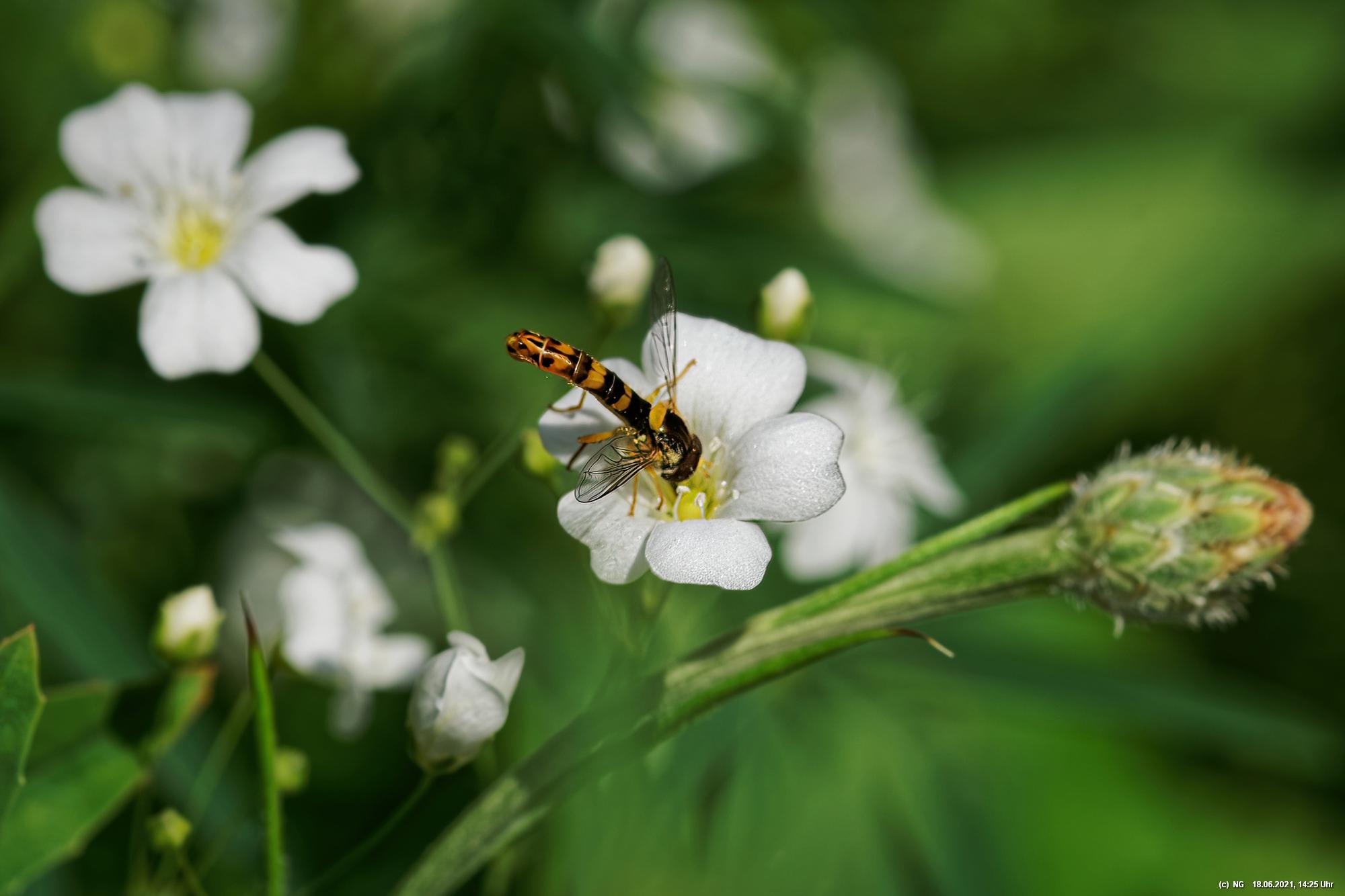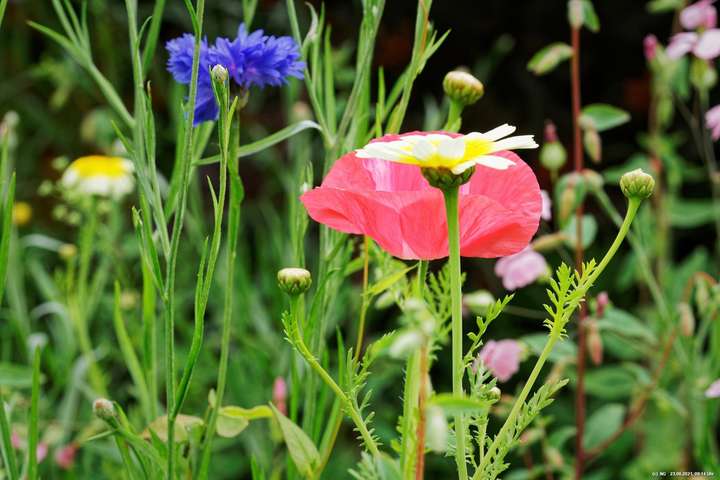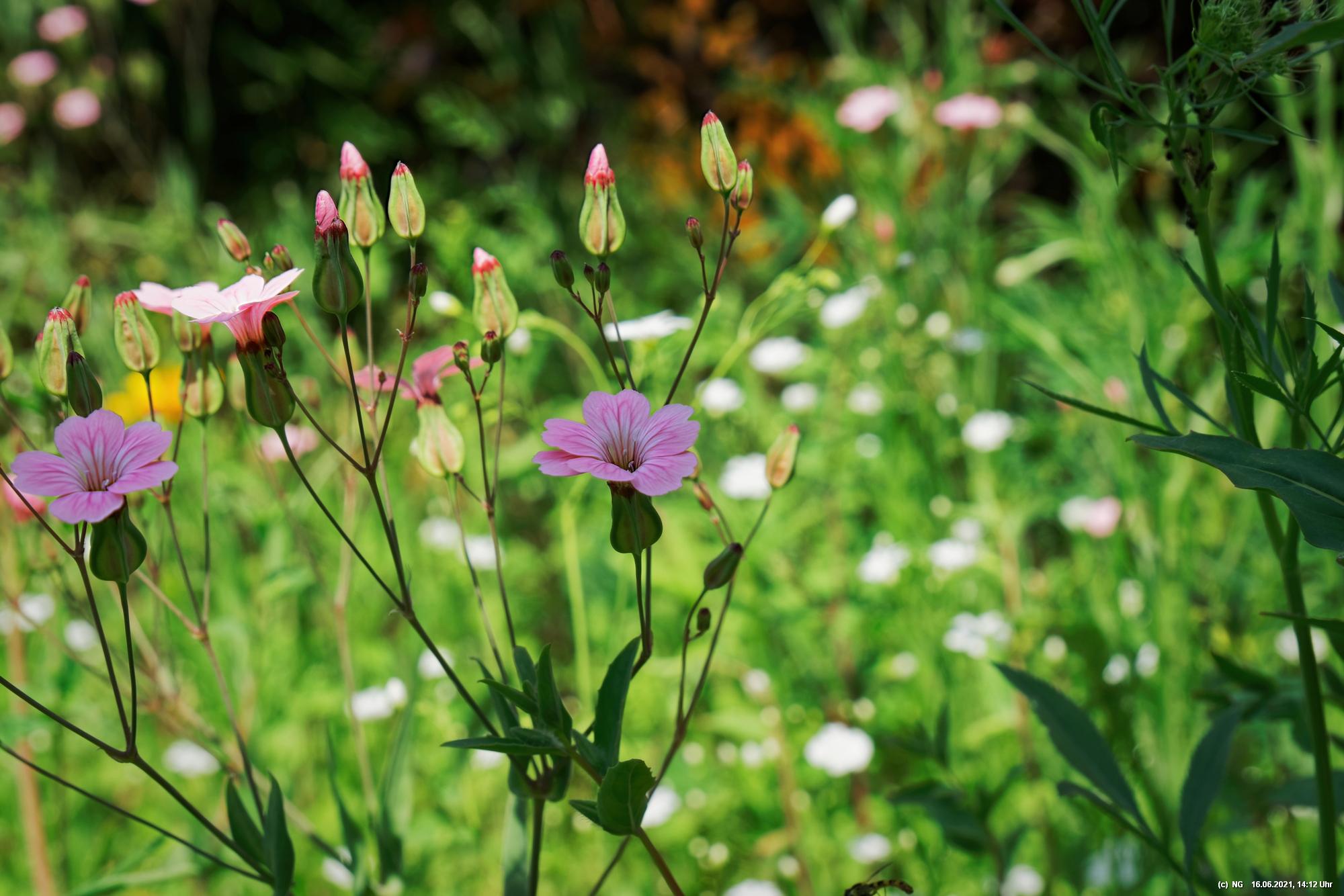 Es hat uns fasziniert. Recht schnell gingen die Samen auf und die Pflanzen wuchsen. Dann kamen die ersten Blüten - und es wurden immer mehr - geschätzt jetzt schon einige Tausend. Es ist so toll bunt dort, dass wir jeden Tag genau auf "Neuankömmlinge" warten und diese regelrecht feiern. Insekten sind auch schon jede Menge da (und halten sich sogar von unserer Terrasse fern). Schmetterlinge sind noch selten. Sie sind aber auch in der Umgebung selten geworden.