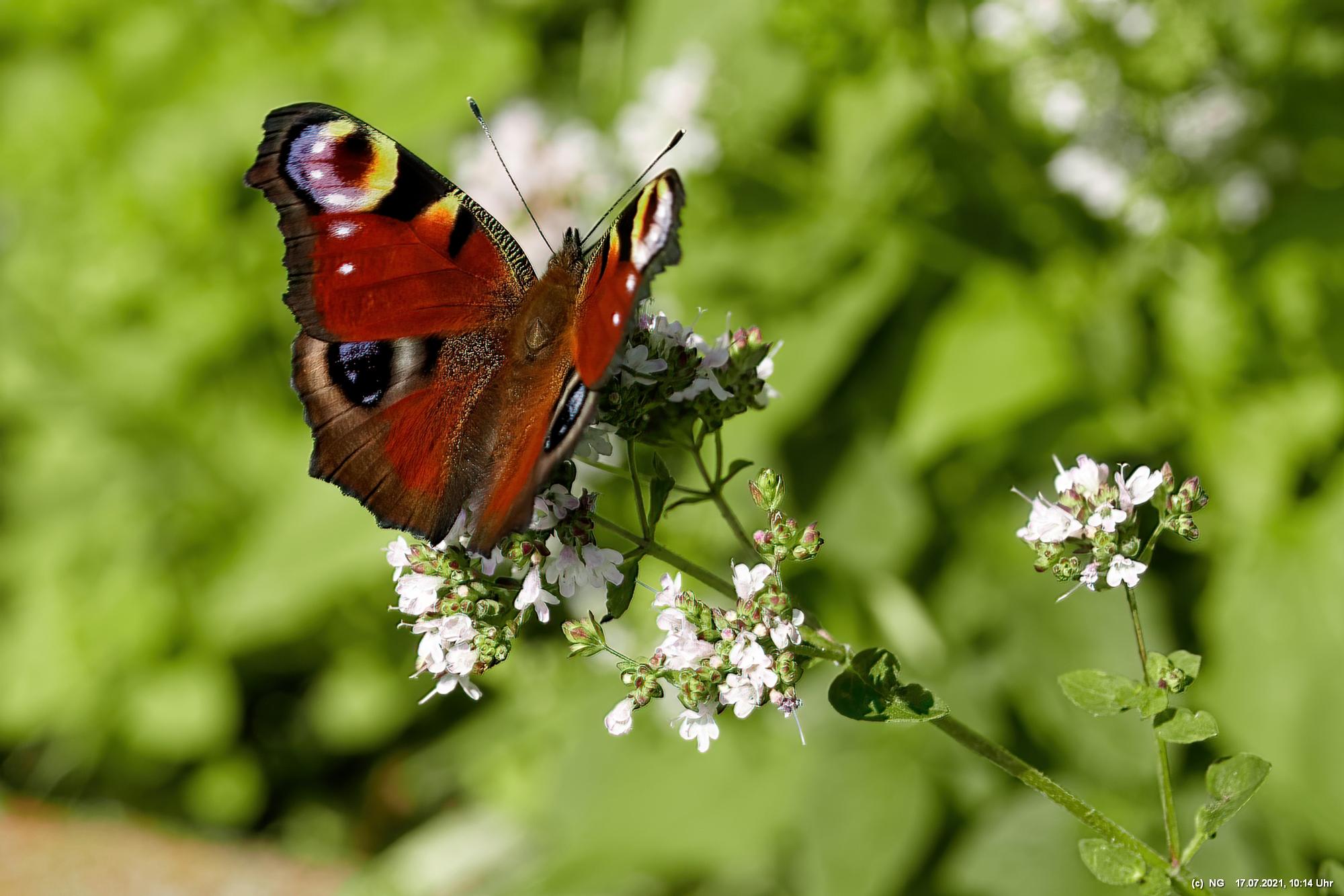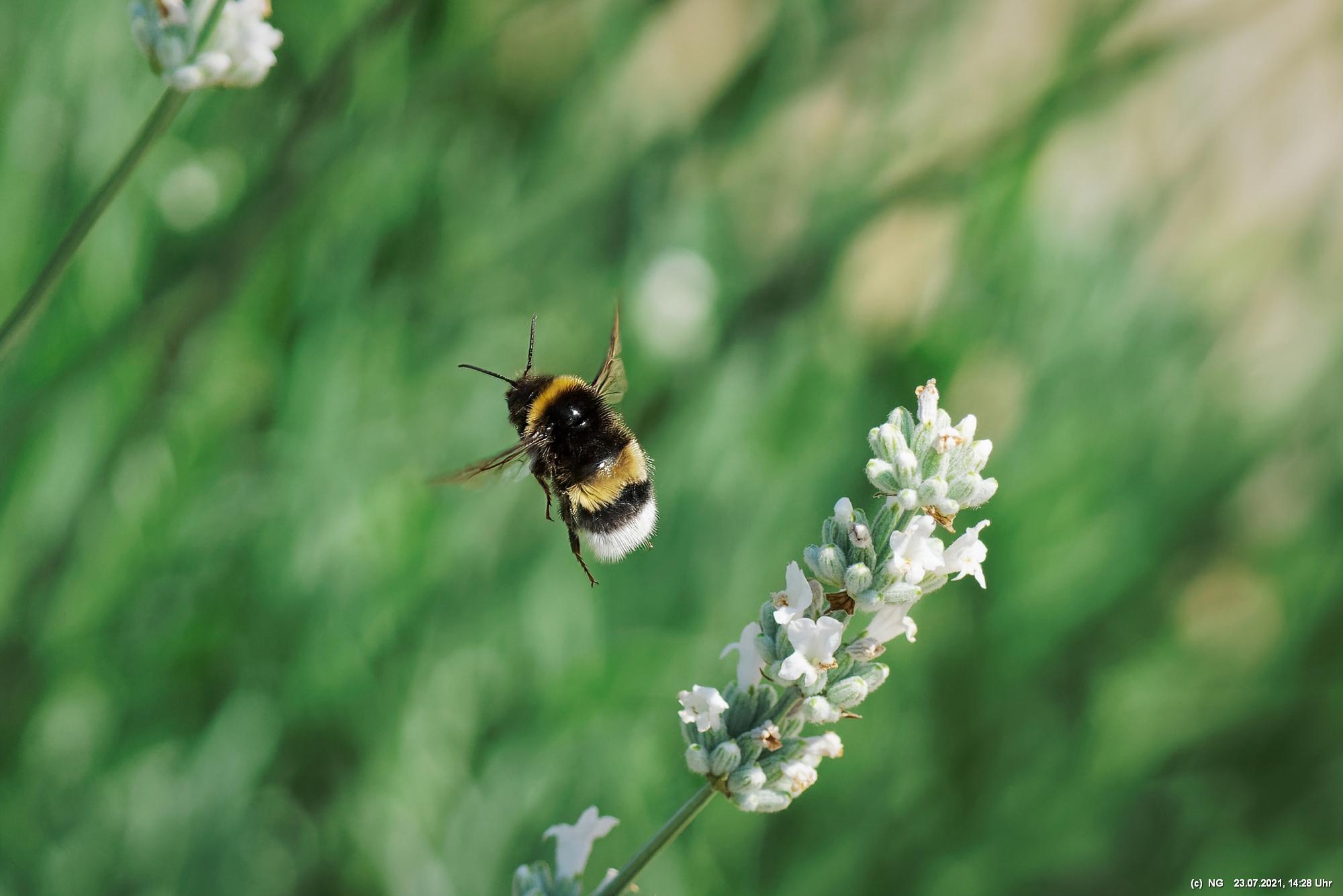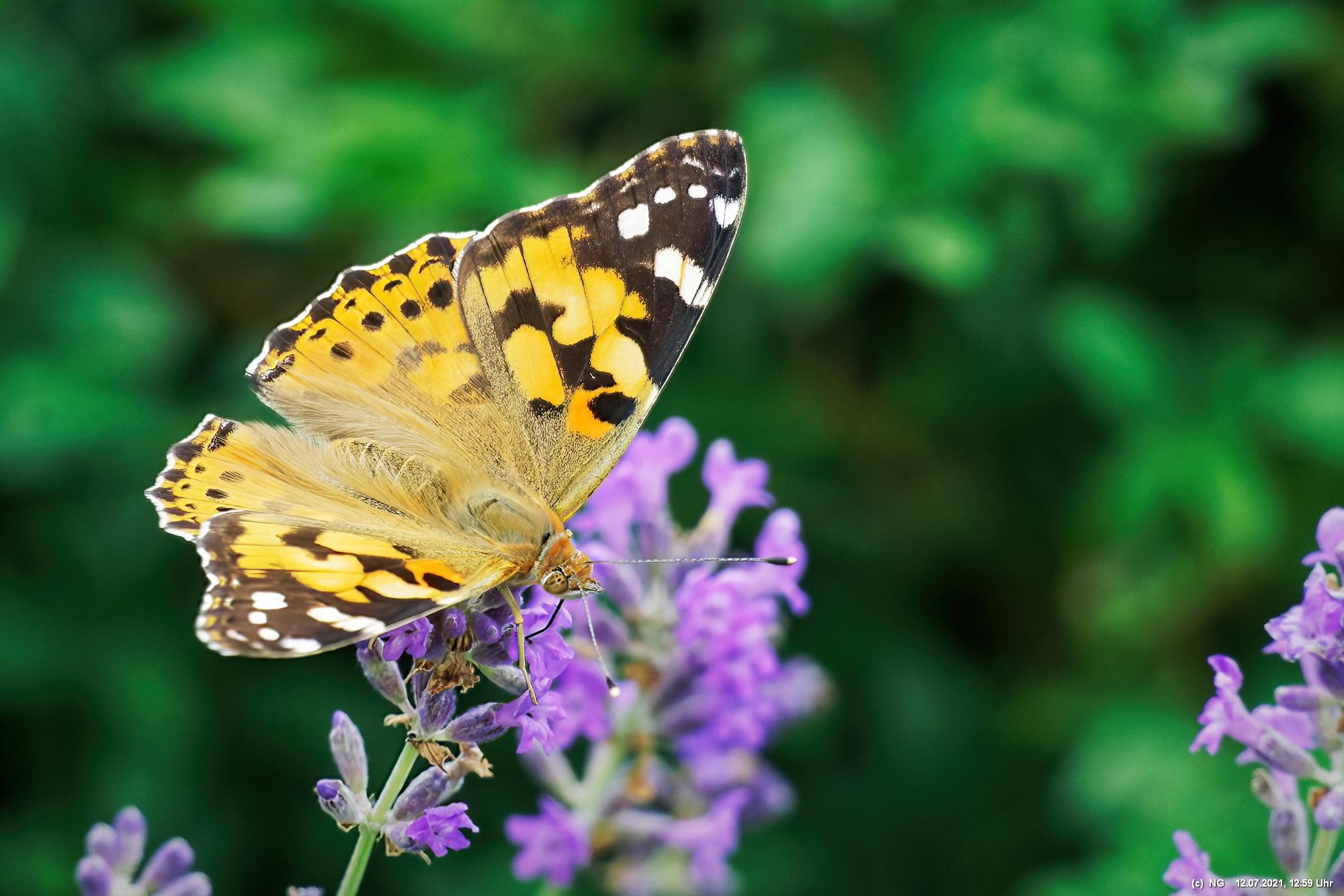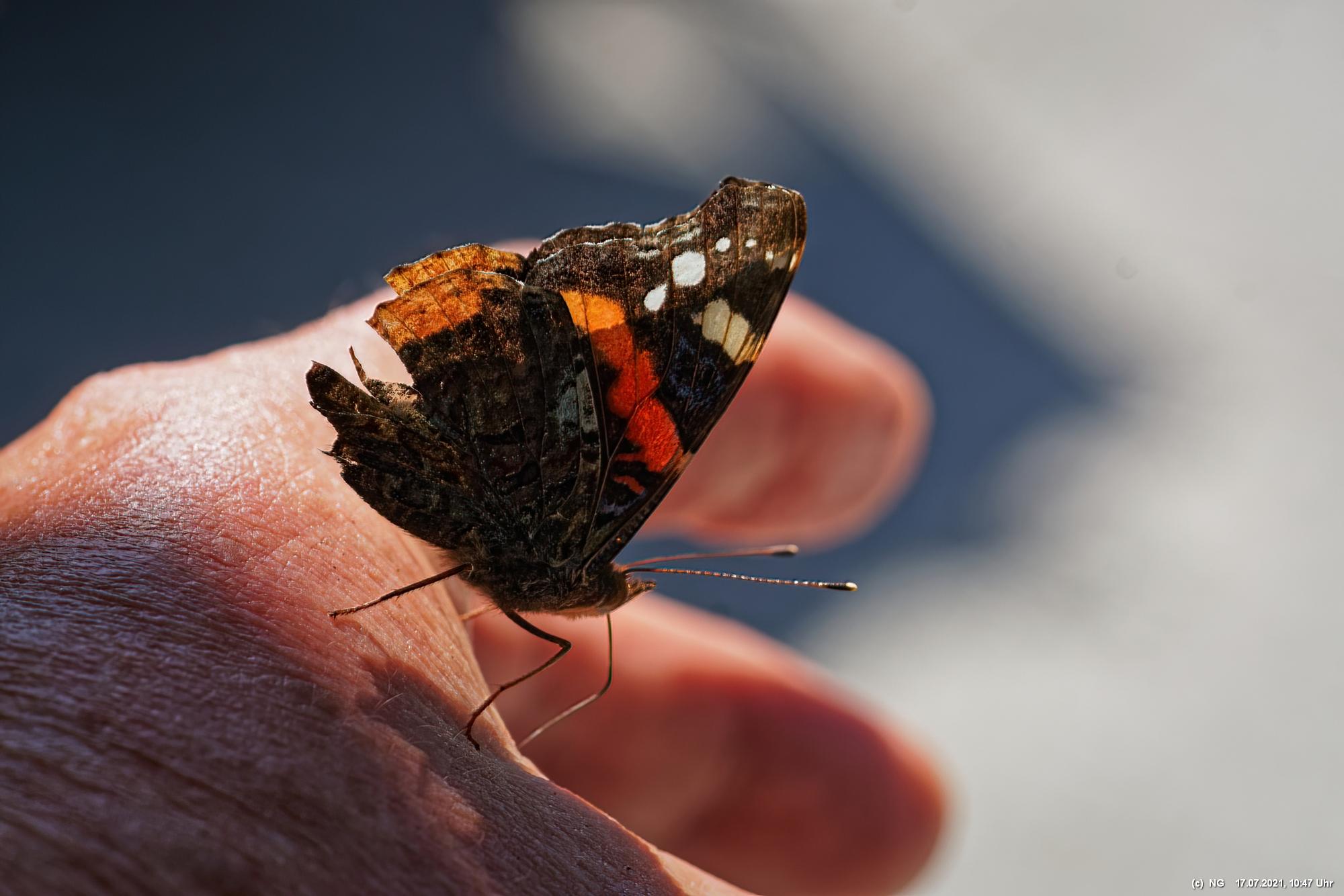 Wir haben extra für Insekten und Schmetterlinge ein Blumenbeet angelegt und weißen Lavendel gepflanzt. Die haben das auch bemerkt und sind in Schaaren gekommen. Wir haben versucht, sie besonders nah aufzunehmen und manchmal auch im Flug mit einer Belichtungszeit von 1/3000 Sekunde. Ein Schmetterling hat sich lange auf die Hand gesetzt.