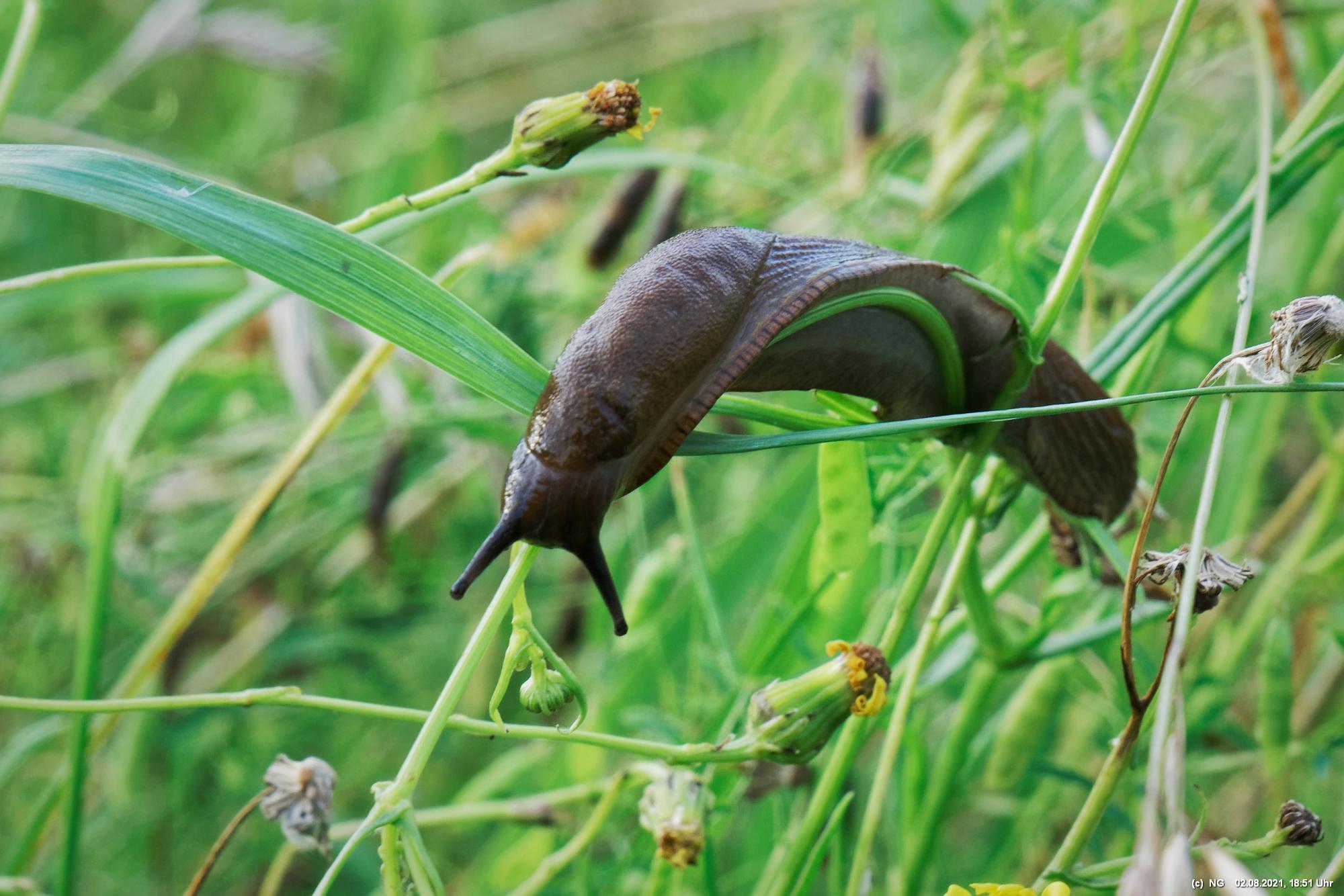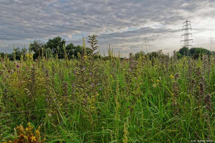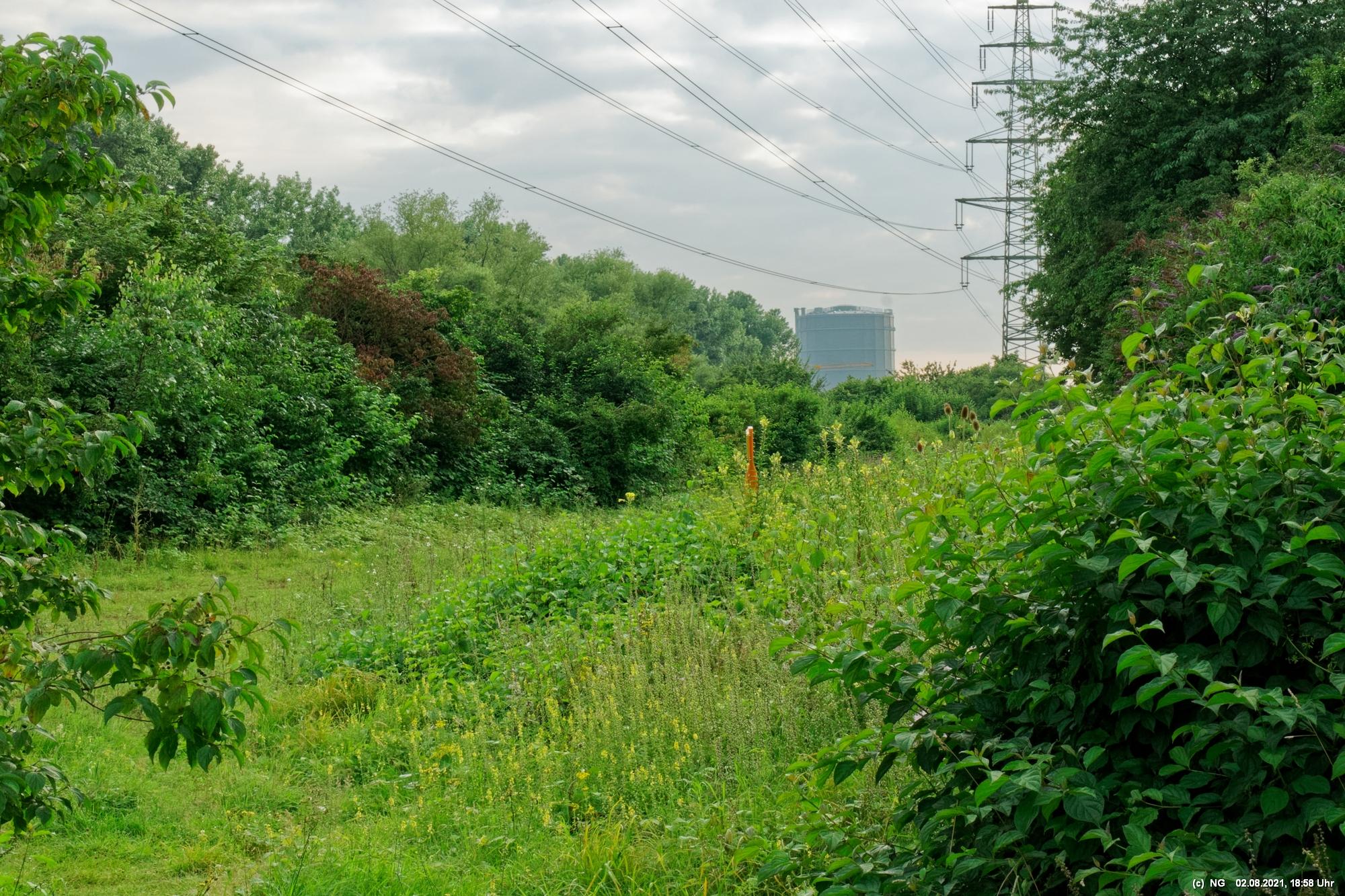 Es ist schon erstaunlich, wie sich ein Gelände zwischen Emscher und Emscherschnellweg (A42) schon nach wenigen Jahren völlig verändert darstellt. Nur gelegentlich sieht man noch Rest der einstigen Zeche und ab und an eine Kunstinstallation. Neben jungen Bäumen und Sträuchern werden die Flächen bedeckt von vielen Wildpflanzen, zurzeit vornehmlich von Königskerzen- und Natterkopfpflanzen. Was ich aber nicht erwartet hätte, sind die Unmengen größer Schnecken (es müssen viele Tausend sein), wie Weinbergschnecken und Nacktschnecken. Man kann das Gelände nur mit viel Sorgfalt begehen.