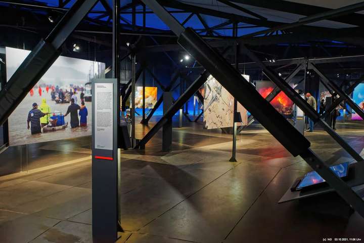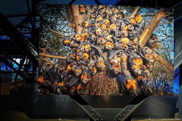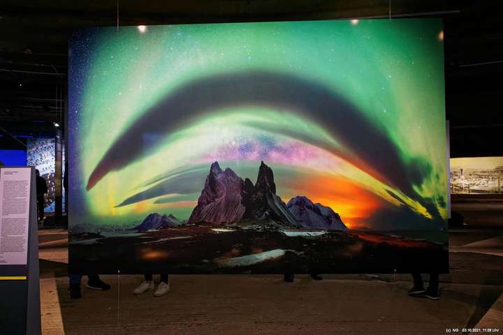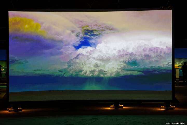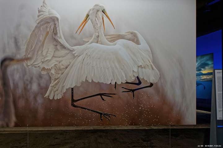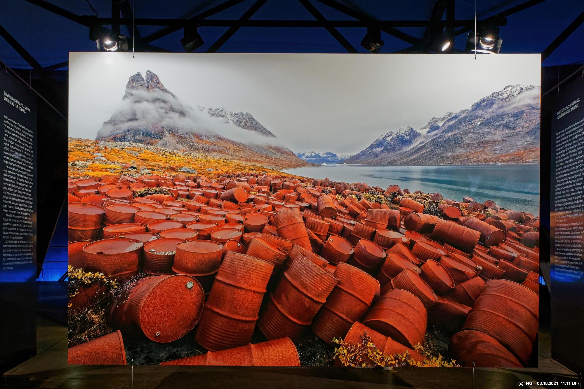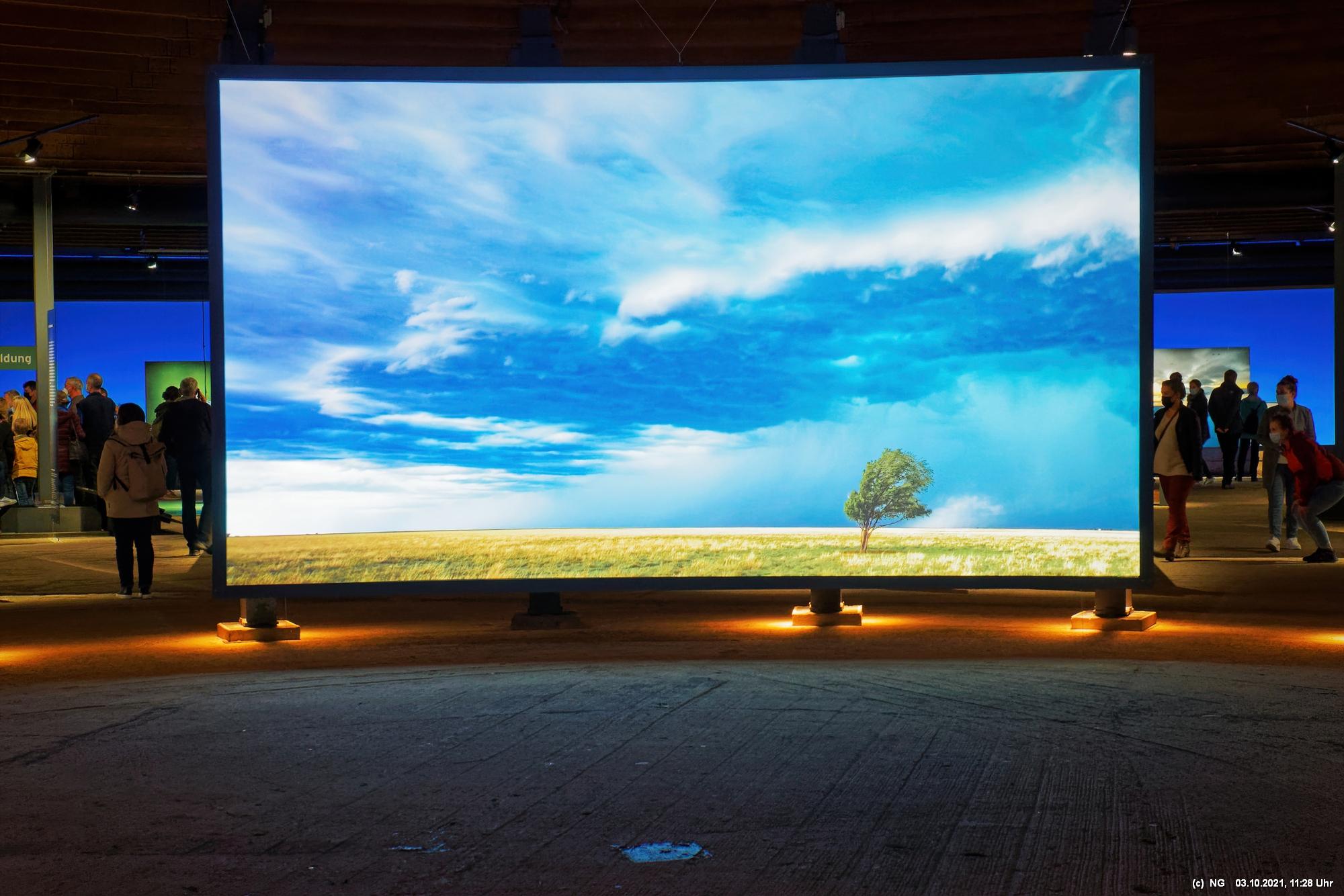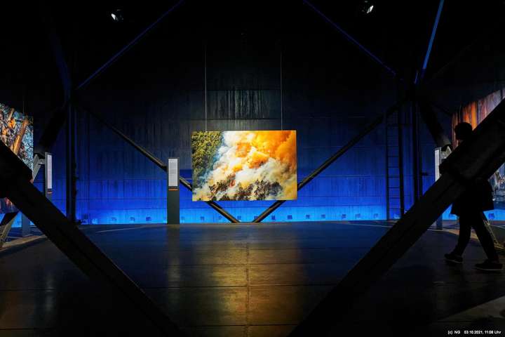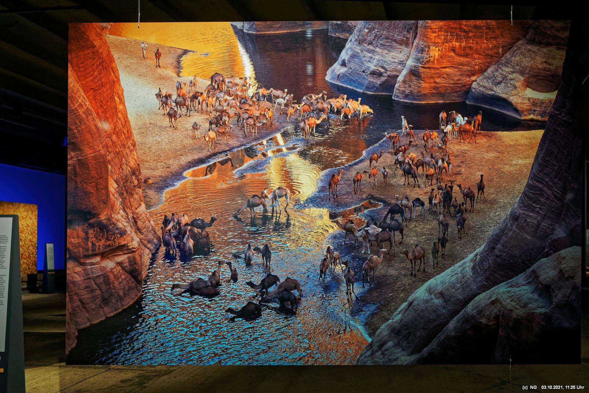 Die Ausstellung "Das zerbrechliche Paradies" zeigt auf rund 150 Bildern die Schönheiten der Schöpfung, aber auch die Folgen der menschlichen Ausbeutung. Neben den wunderbaren, meist preisgekrönten Fotos schwebte wieder die Erde in dem 100 m hohen Raum. Die Projektionen waren jetzt noch perfekter und hochauflösender, als vor einigen Jahren. Wenn man mit dem Glasaufzug in fast 100 m Höhe fährt, erlebt man sich als Astronaut - man rast an der Erde vorbei und es kribbelt im Bauch.