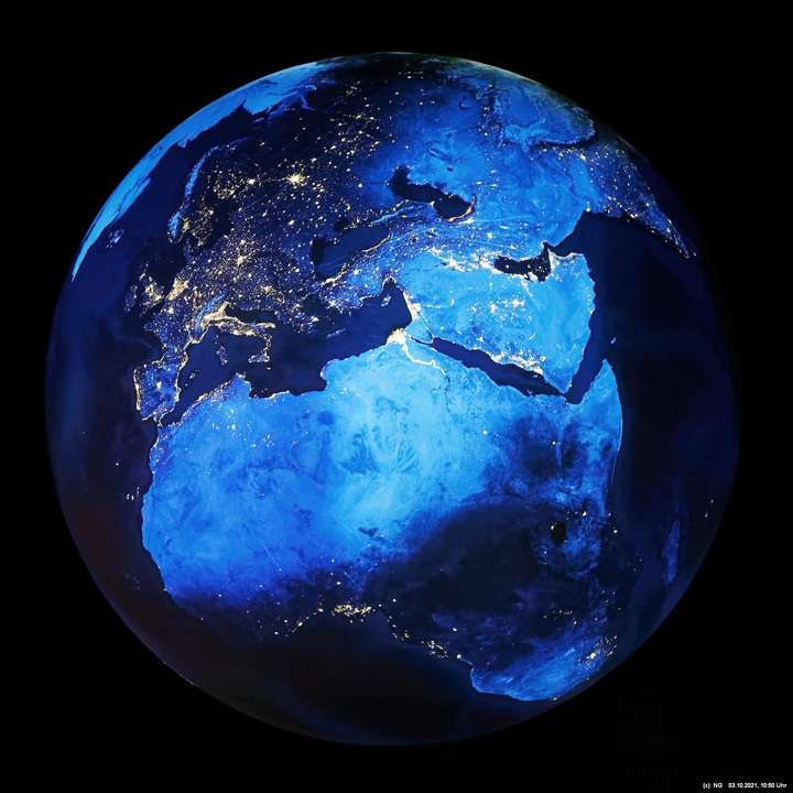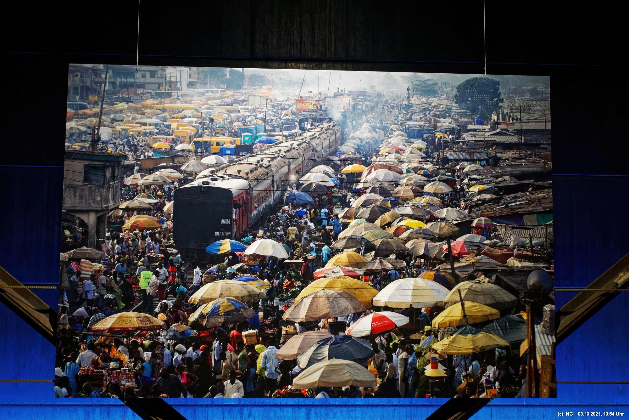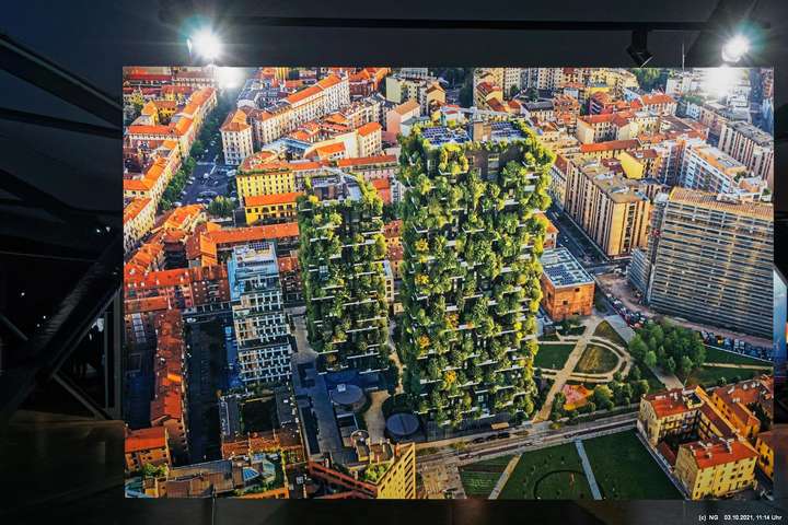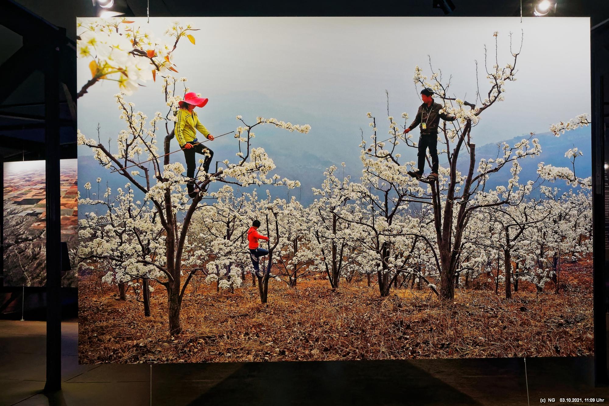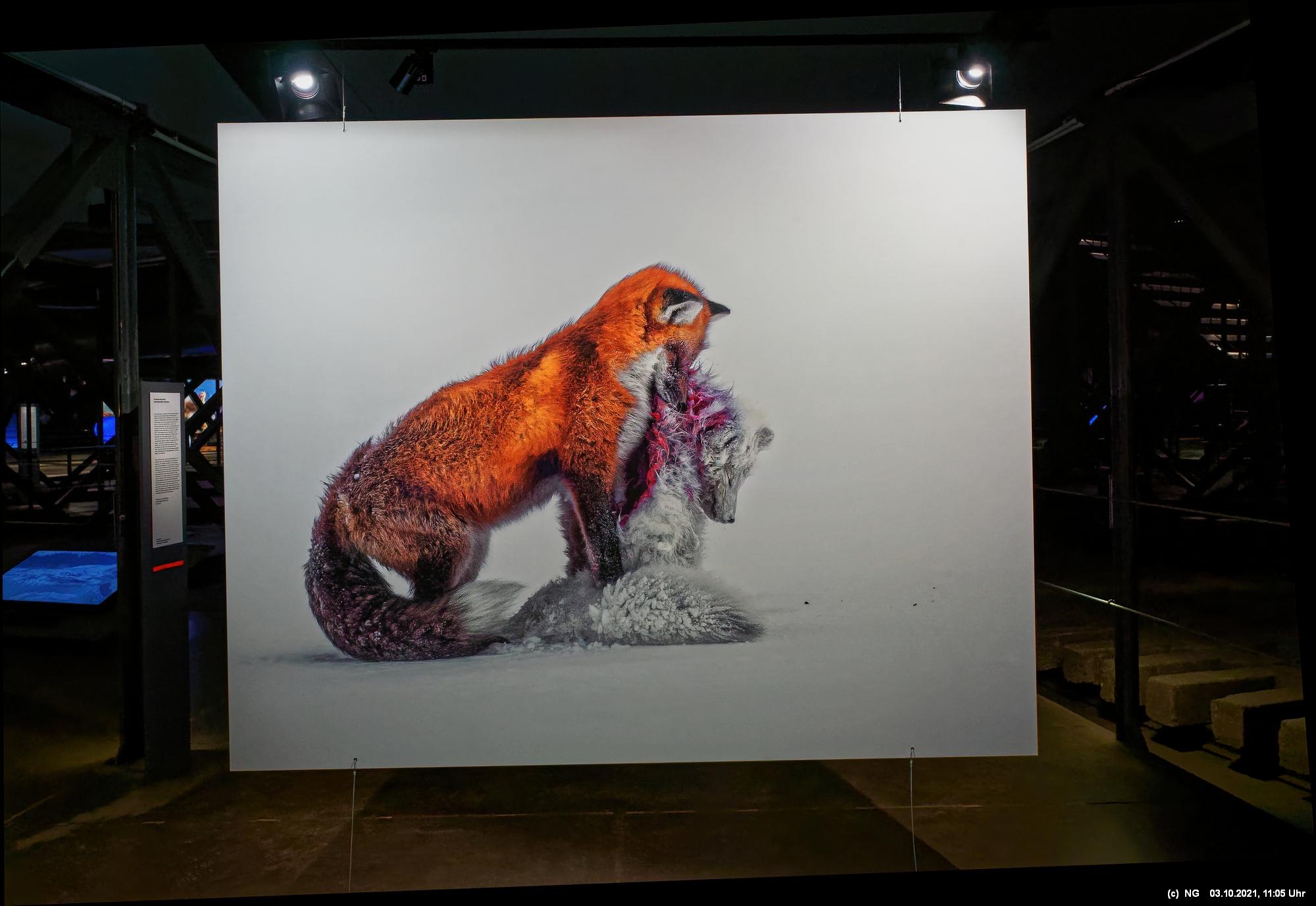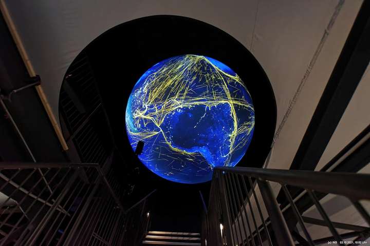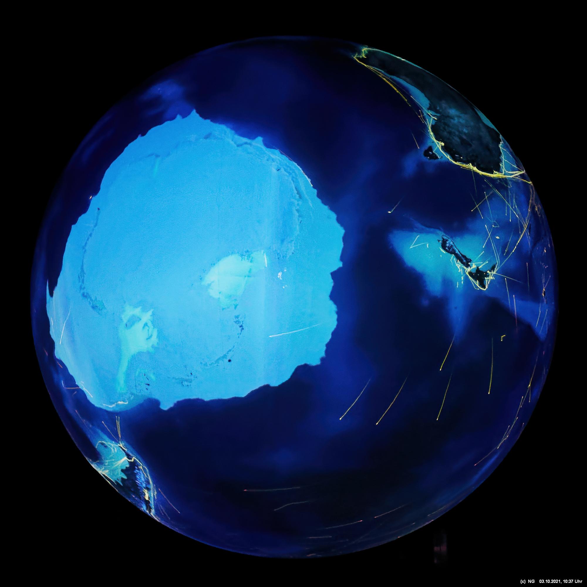 Die Ausstellung "Das zerbrechliche Paradies" zeigt auf rund 150 Bildern die Schönheiten der Schöpfung, aber auch die Folgen der menschlichen Ausbeutung. Neben den wunderbaren, meist preisgekrönten Fotos schwebte wieder die Erde in dem 100 m hohen Raum. Die Projektionen waren jetzt noch perfekter und hochauflösender, als vor einigen Jahren. Wenn man mit dem Glasaufzug in fast 100 m Höhe fährt, erlebt man sich als Astronaut - man rast an der Erde vorbei und es kribbelt im Bauch.