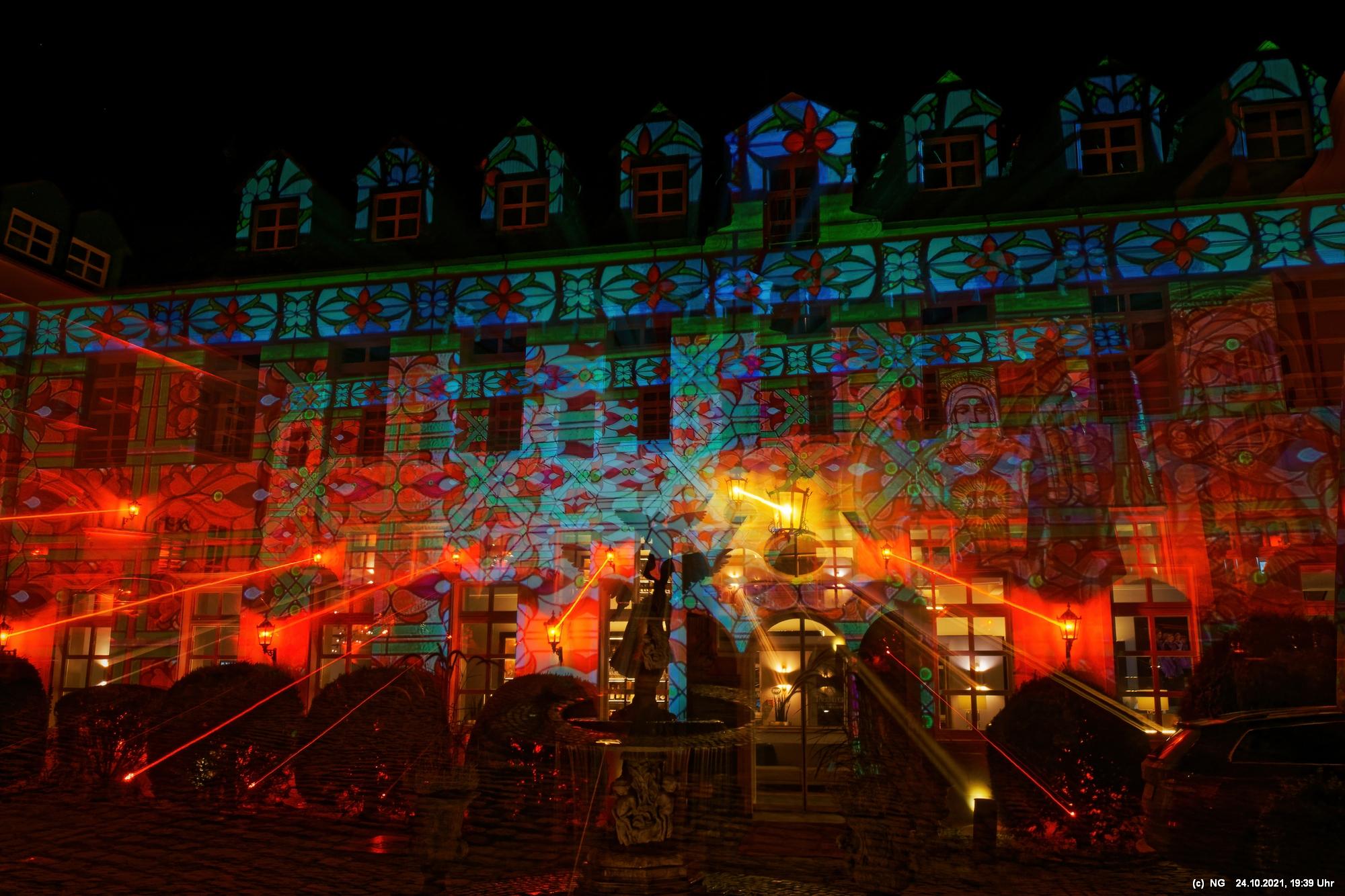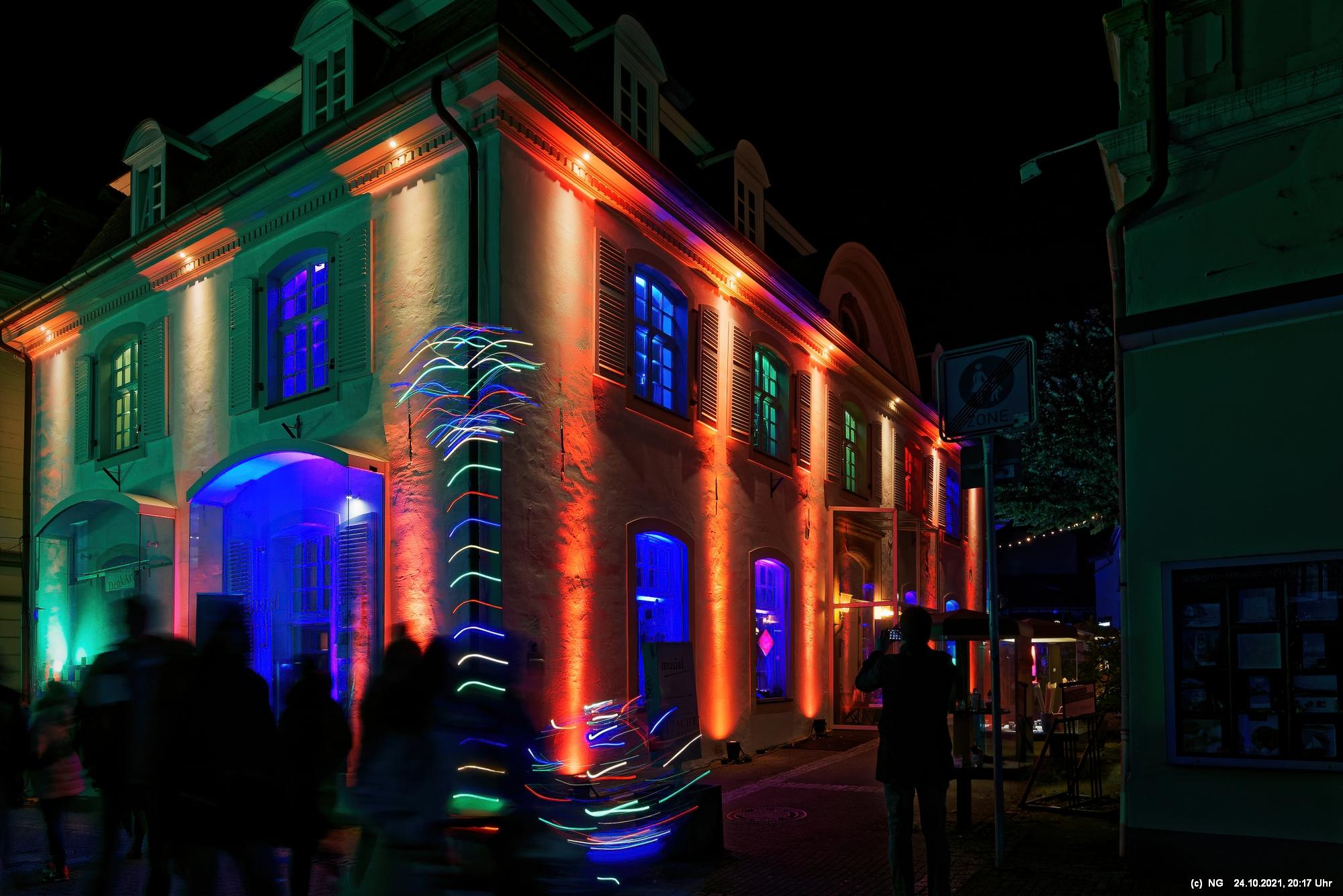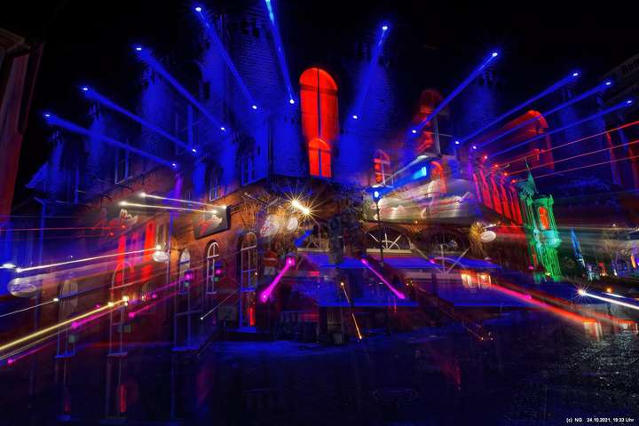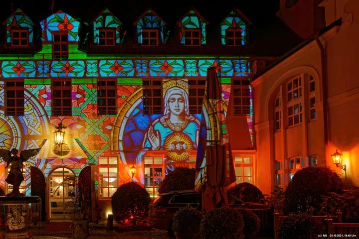Mehr als 150 Gebäude und Plätze werden illuminiert, so viele wie nie zuvor! Allerdings sind auch alle einfachen, nicht wirklich auffallenden Installationen mitgezählt. Es gibt aber wie immer einige herausragende Beleuchtungen. Wir haben uns Zeit gelassen, bei Weitem nicht alles gesehen und sind trotzdem über 4 km gelaufen.. Es war trocken und bei etwa 10° C haben wir sogar ein kleines Abendessen im Außenbereich genossen. Am Sonntagabend war der Betrieb überschaubar, nur bei den kostenlos angebotenen Führungen ballten sich die Gruppen. Wir haben uns wohl gefühlt - es war schön!