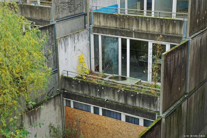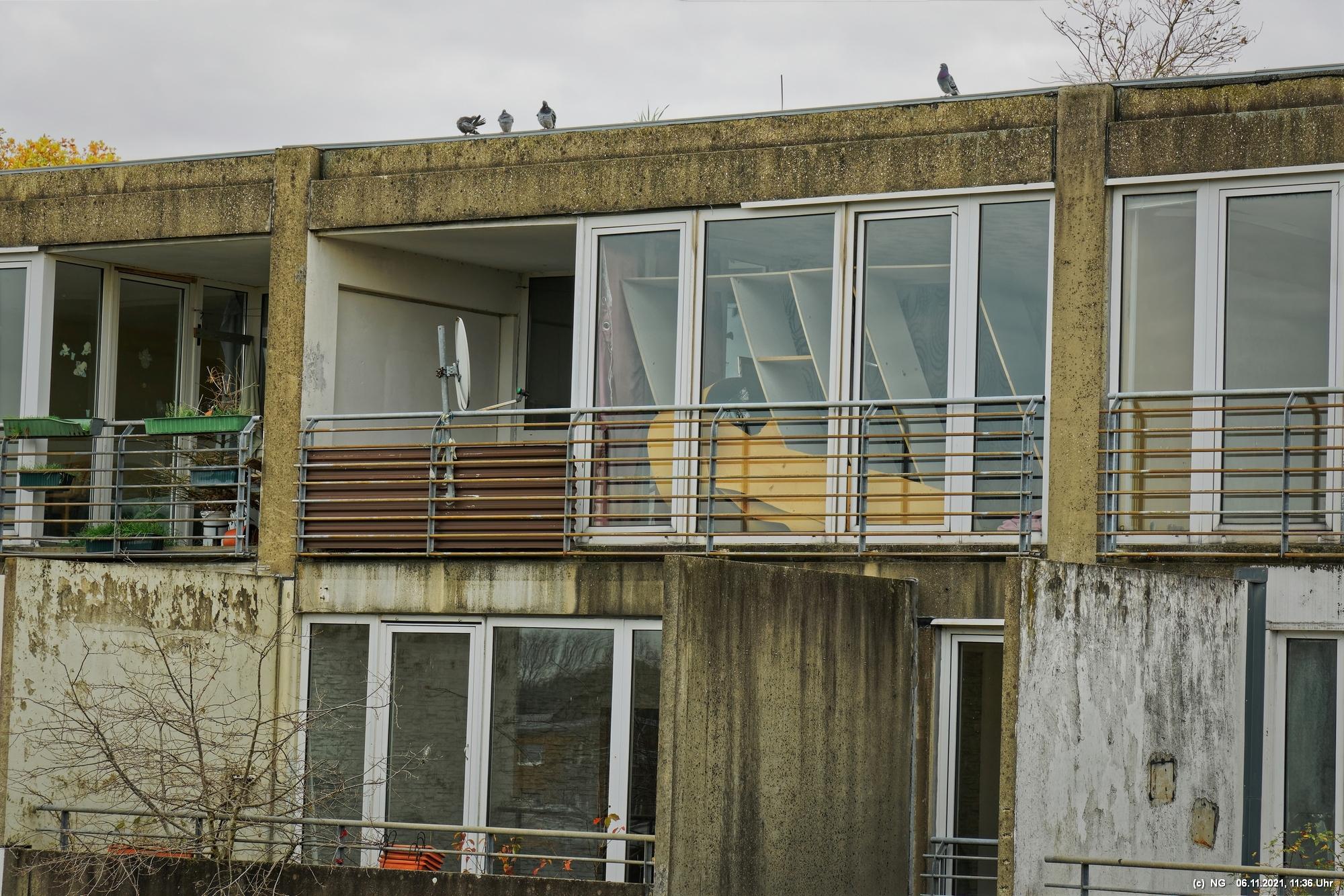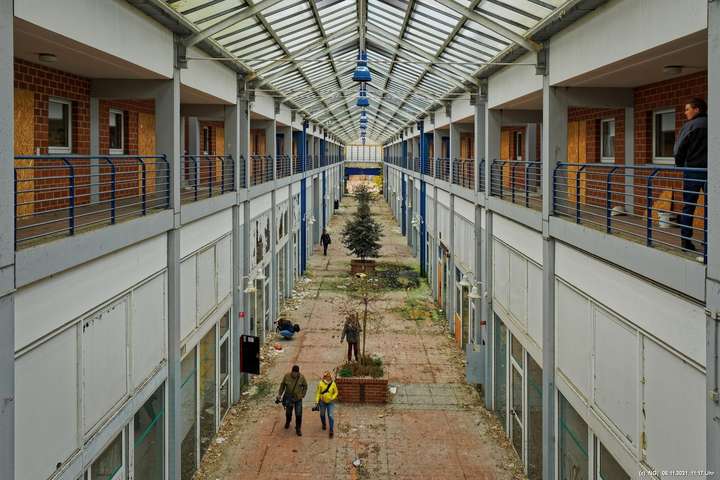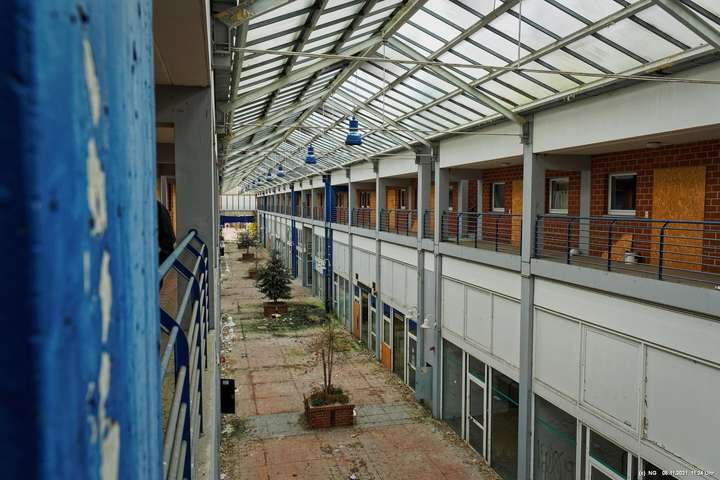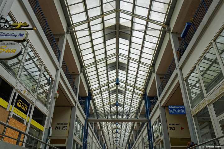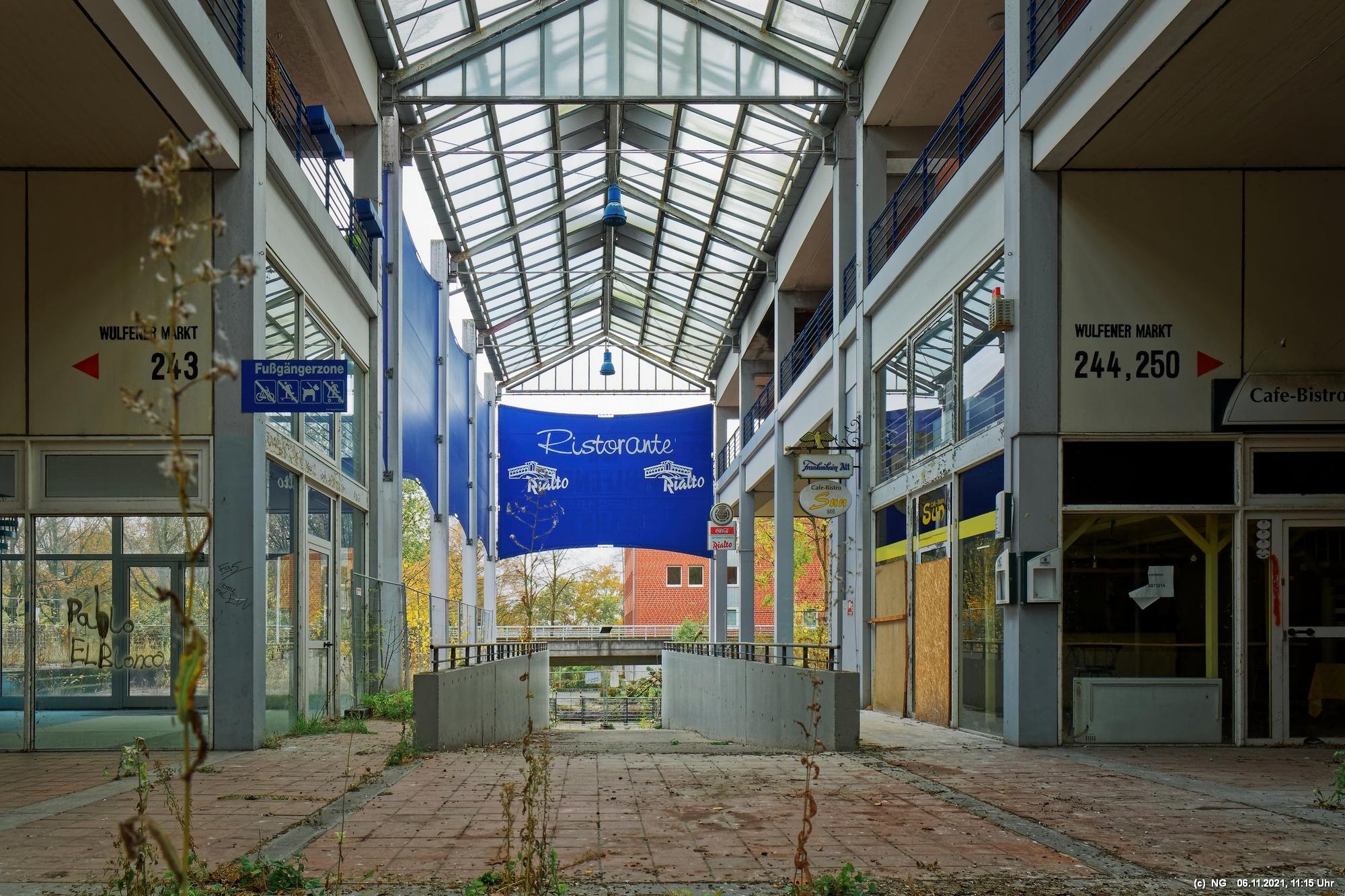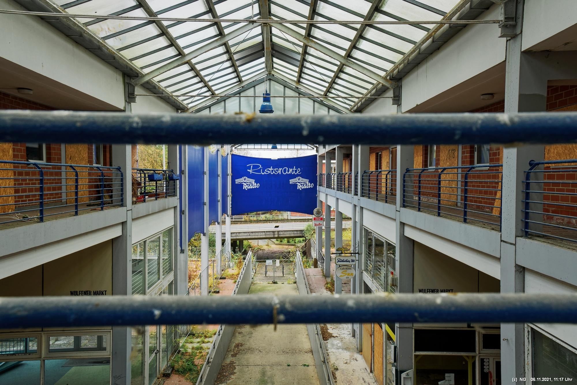 Dieses eigentlich noch junge Gebäude, das nach den Plänen von Prof. Kleihues Anfang der 1980er Jahre errichtet wurde, ist mittlerweile völlig runtergekommen. Die über den Läden liegenden Sozialwohnungen erwiesen sich als Brennpunkt. Investoren mit neuen Ideen blieben aus. Heute ist das Ding einfach nur gefährlich uns muss weg. Der Abbruch beginnt Anfang 2022.