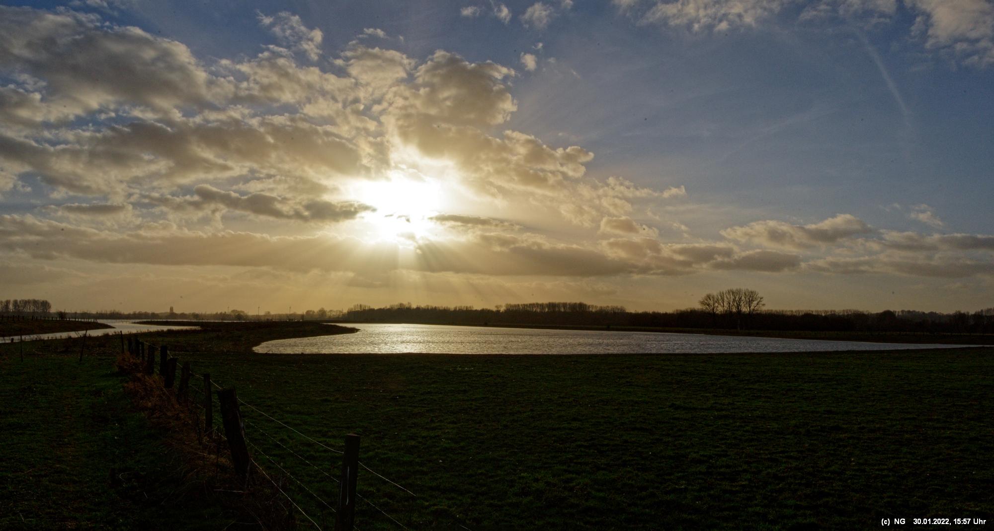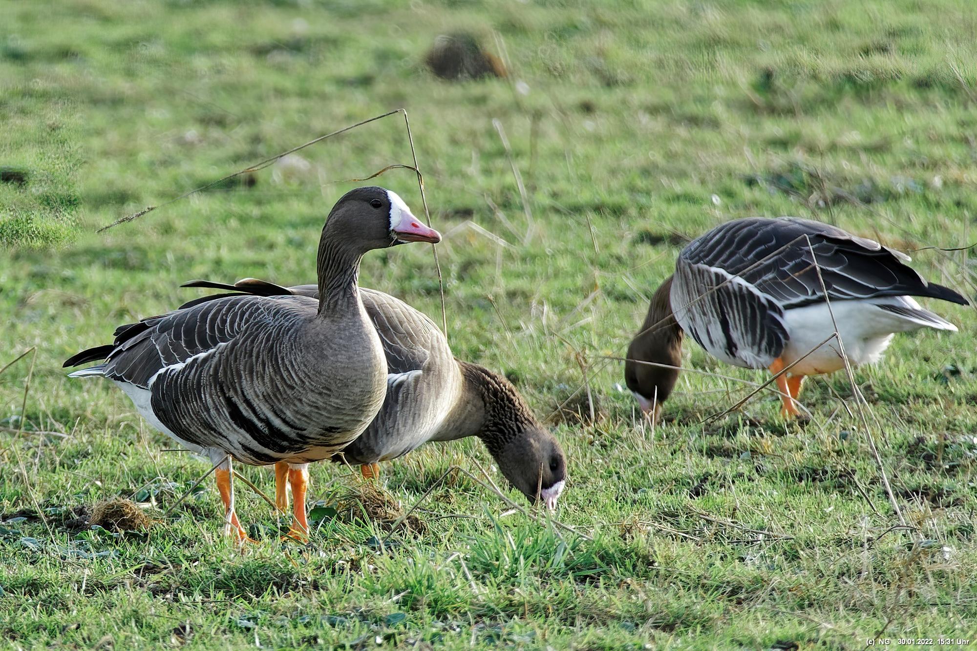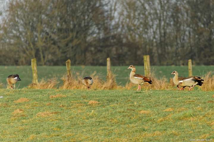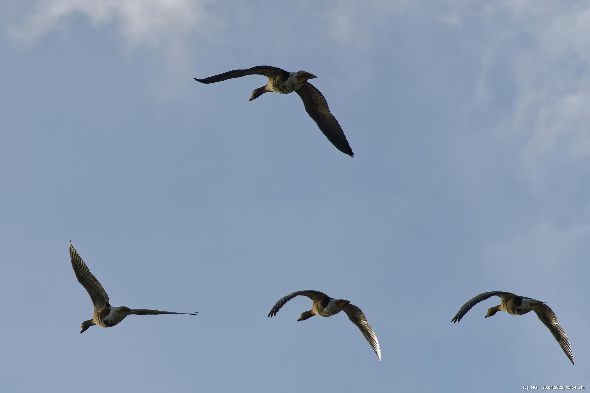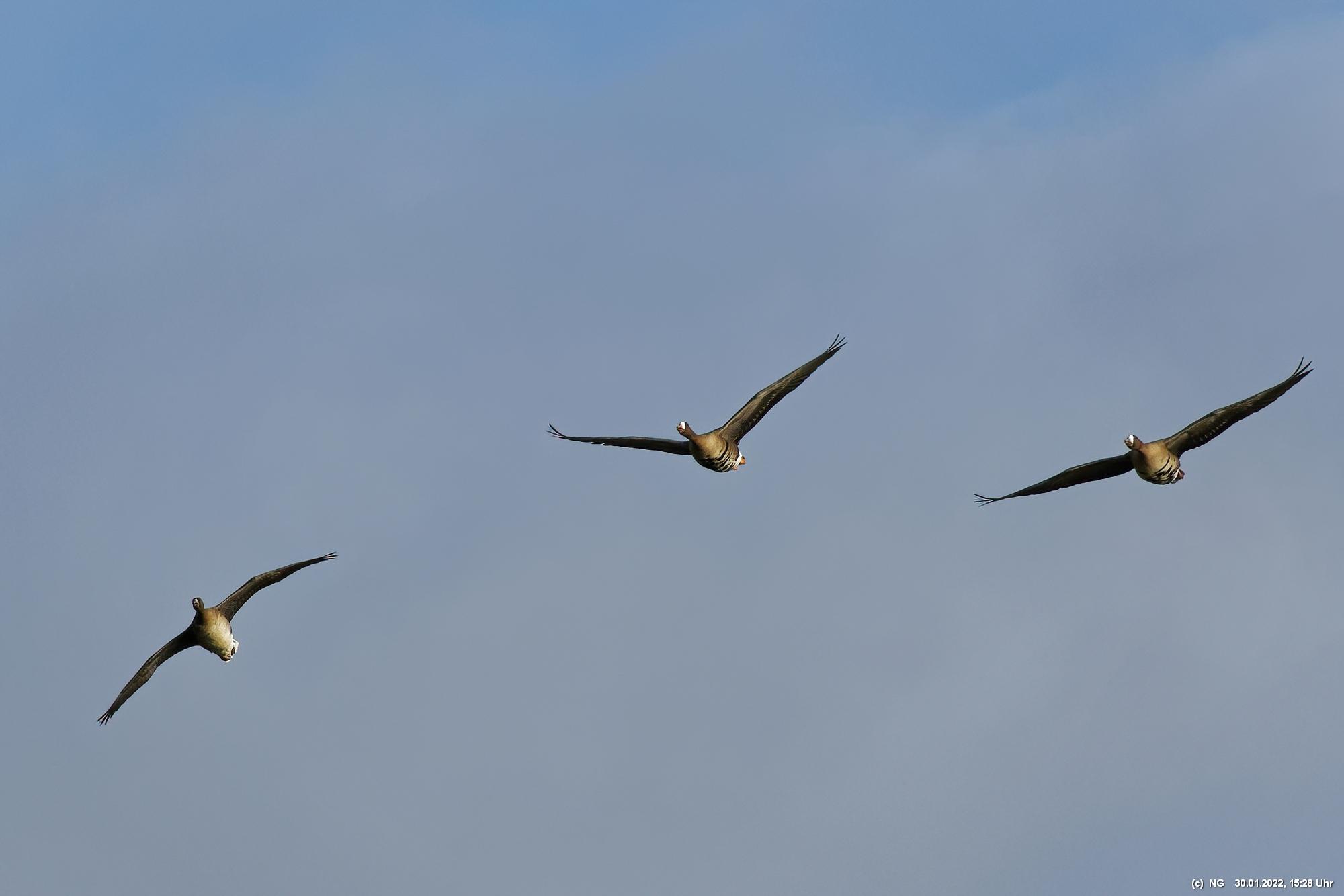 Am Freitag waren sie dicht gedrängt in riesigen Mengen dort, aber alle in einer Richtung und zu weit entfernt für die Kamera. Einmal sind Unmengen gleichzeitig mit viel Geschnatter aufgestiegen und haben den Himmel verdunkelt. Am Sonntag waren dann etwas weiniger dort, haben aber die Straße öfter überquert und konnten dabei gut beobachtet werden. Aber es war kalt und sehr windig und die Sonnenuntergänge goldfarben. Die Wildgänse sind schon einzigartig!