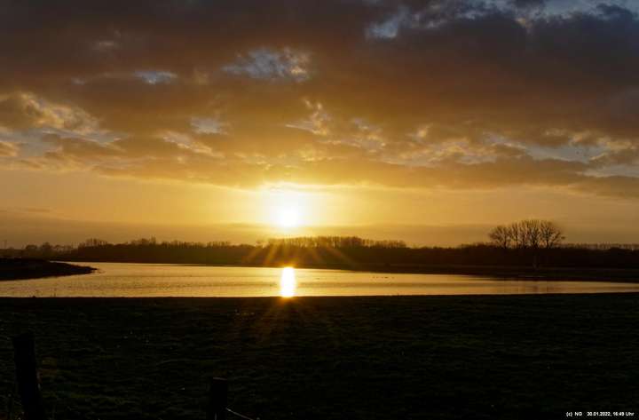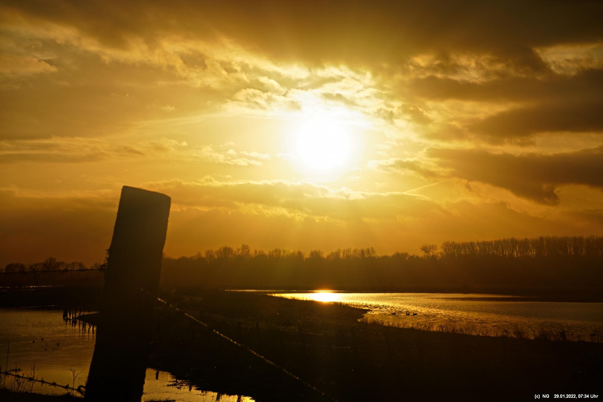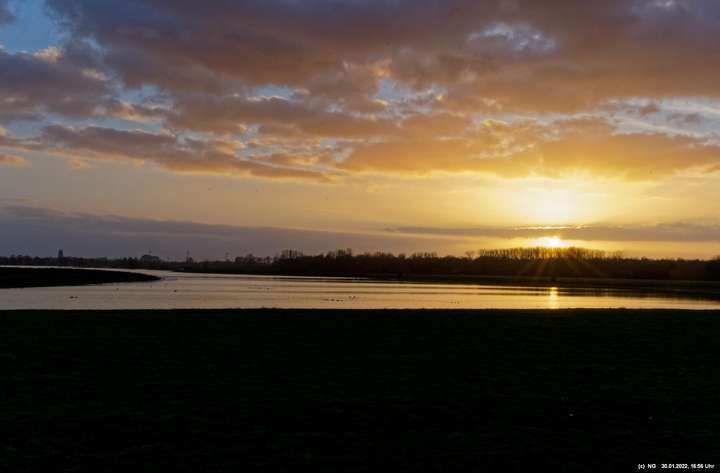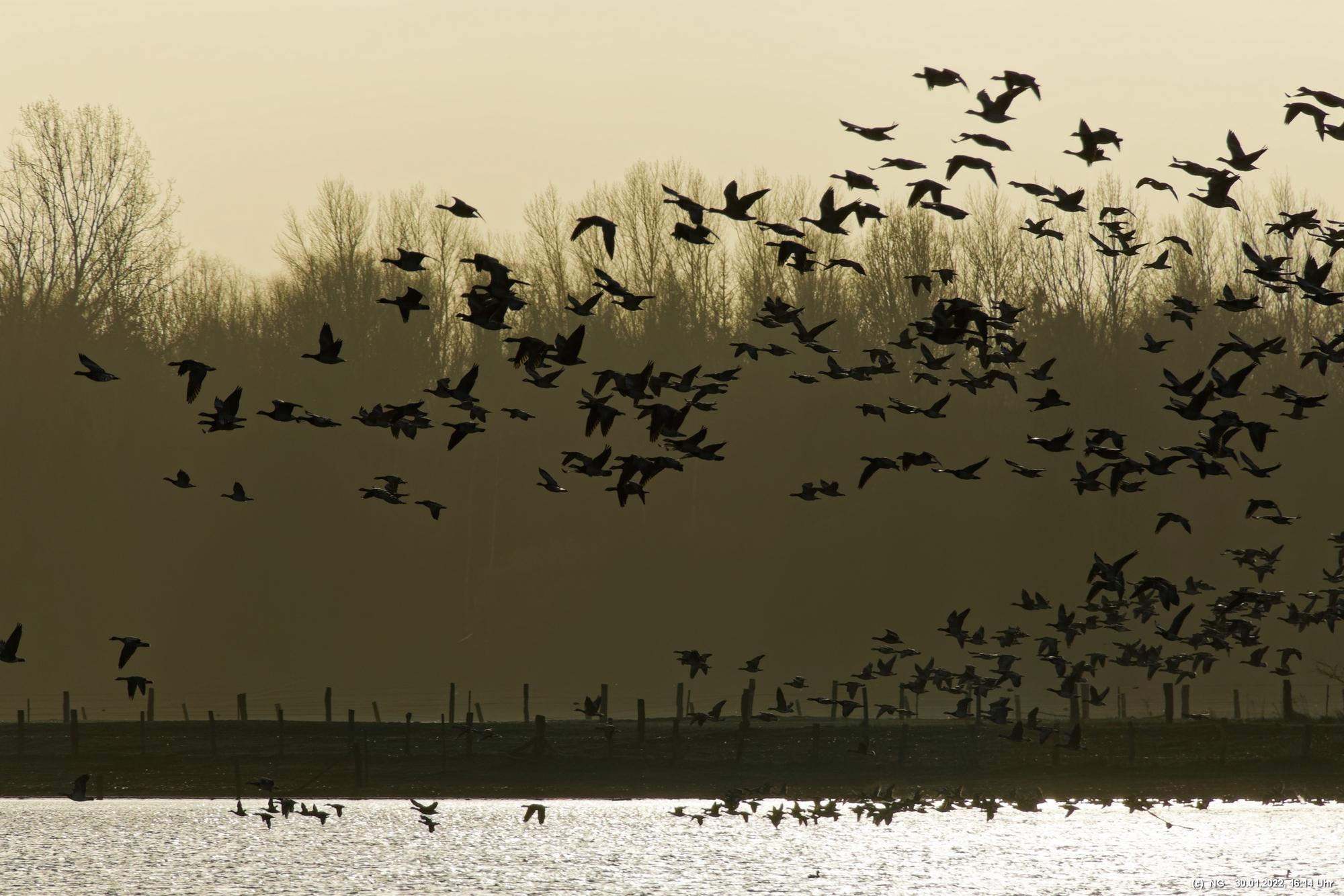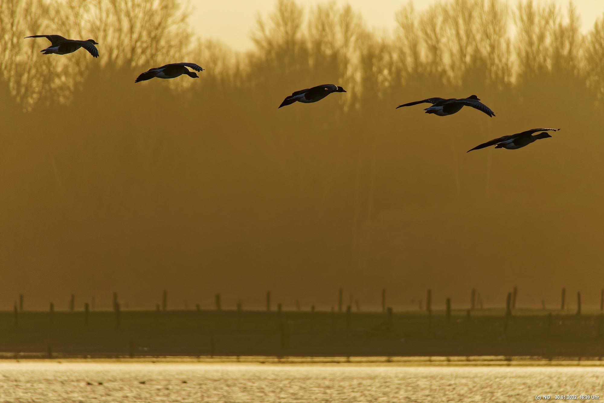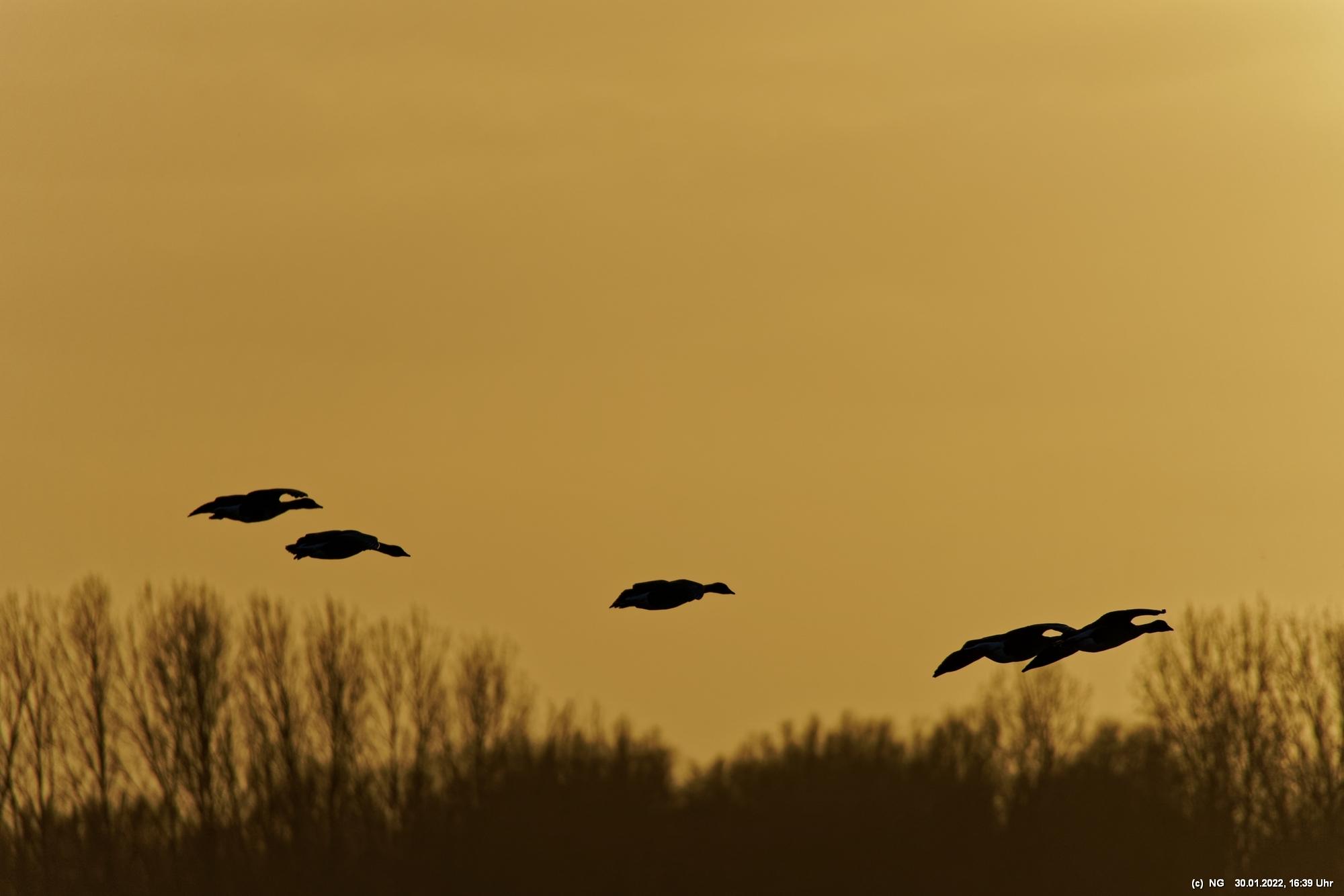 938 Wildgänse und Sonnenuntergang Bislicher Insel, Xanten