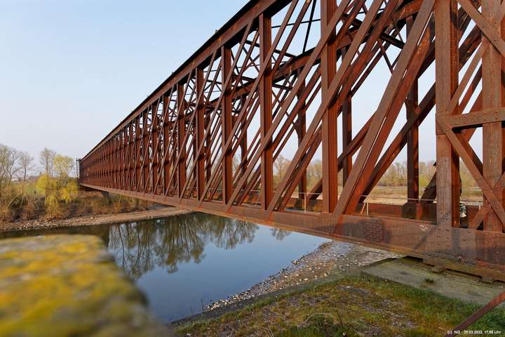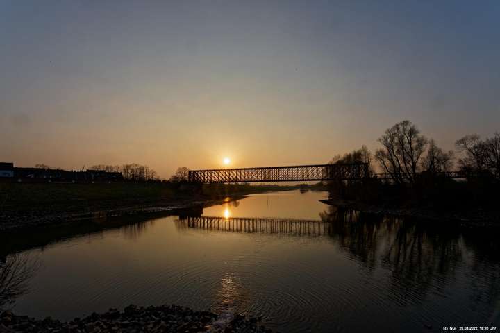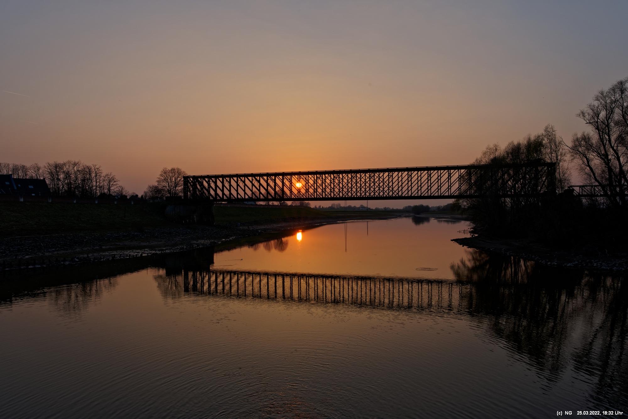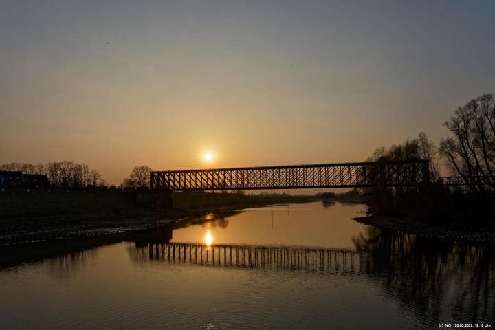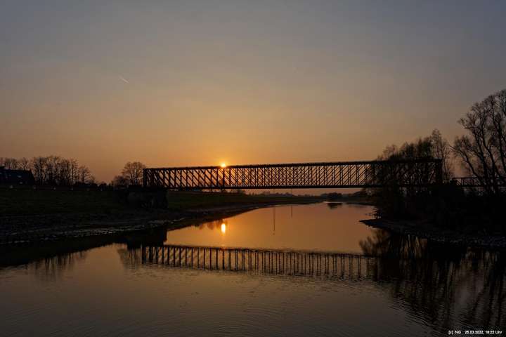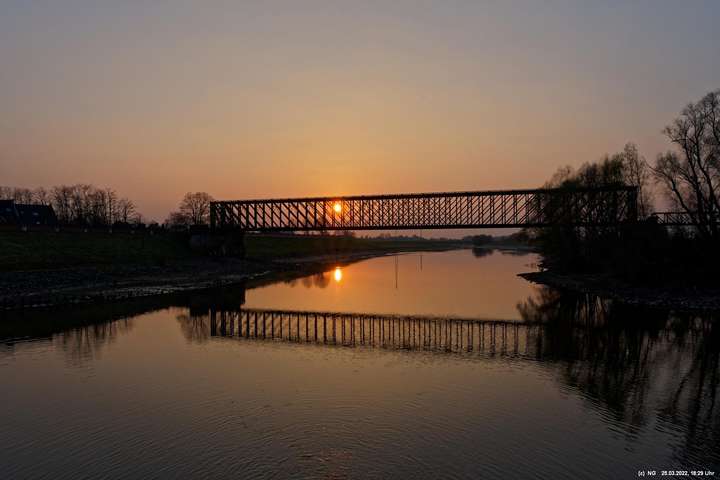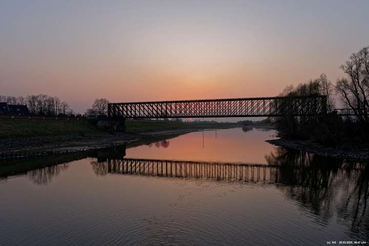 948 Sonnenuntergang an der alten Eisenbahnbrücke, Griethausen
