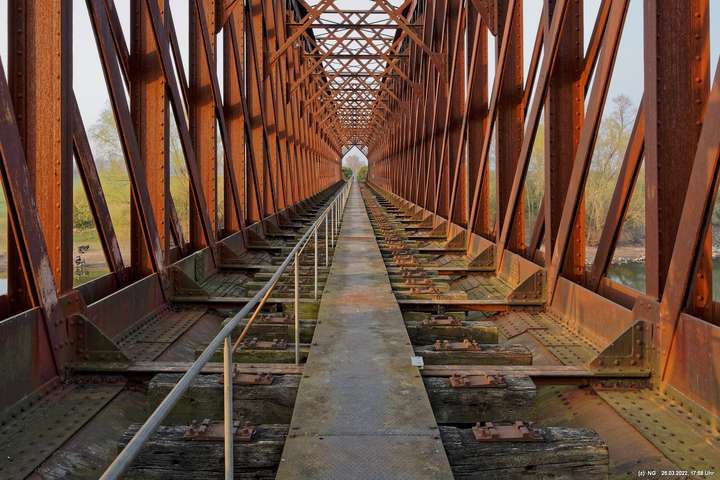 Kleve-Griethausen ist ein kleines Örtchen am idyllischen Altrhein, direkt an der holländischen Grenze. Die Griethausener Eisenbahnbrücke, auch "Altrheinbrücke" genannt ist die älteste noch erhaltene Brücke der Eisenbahn im Bereich des deutschen Rheins und steht unter Denkmalschutz. Das gesamte Brückenbauwerk ist 528 m lang, einschl. der Hauptbrücke und den Vorlandbrücken im Hochwasserbett. Sie wurde bereits in den Jahren 1863 bis 1865 errichtet und war damals eine Meisterleistung.