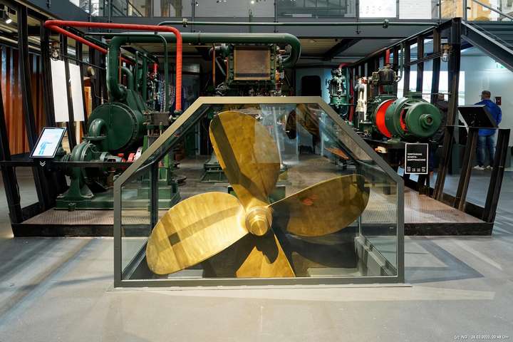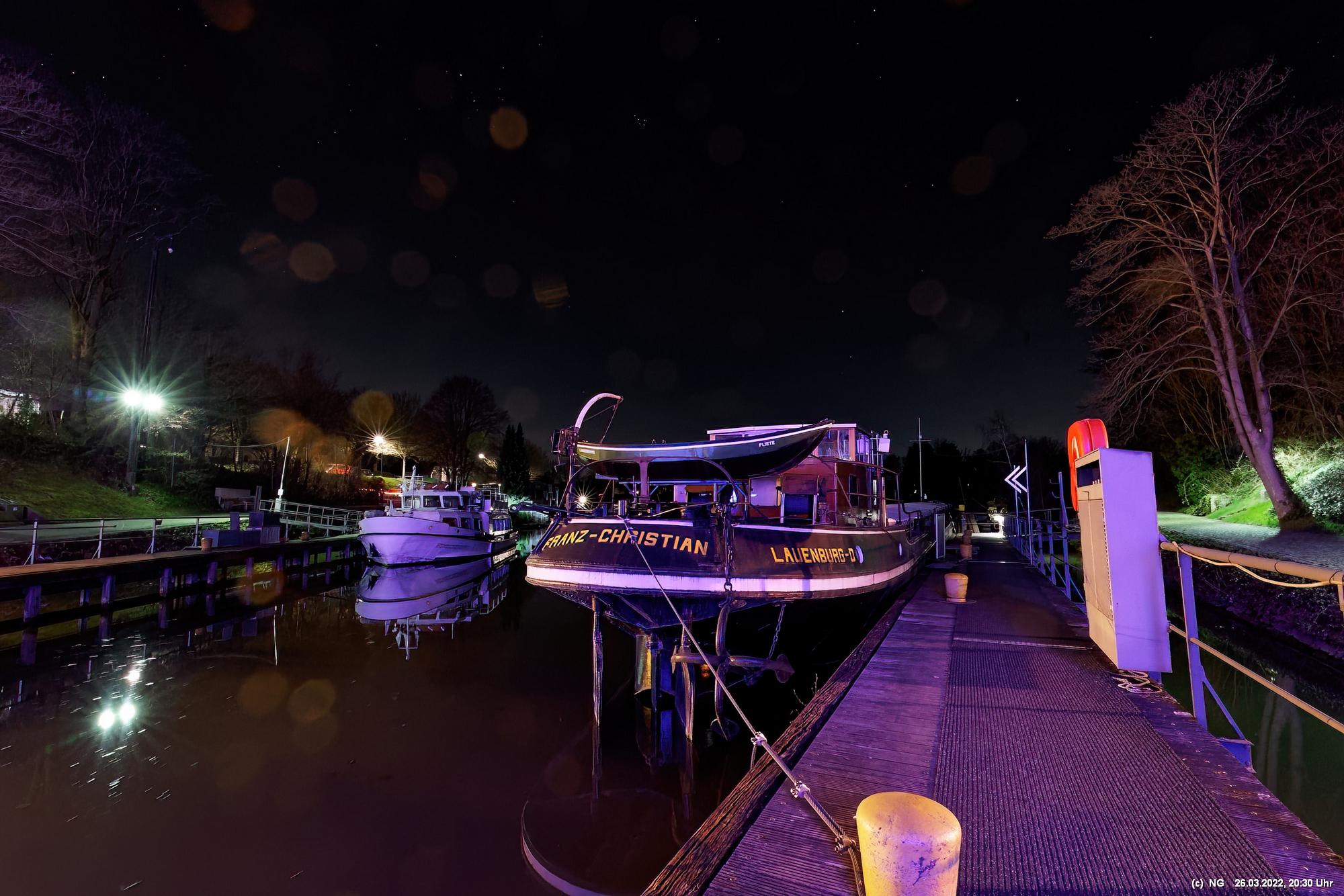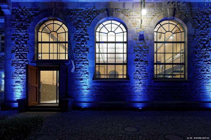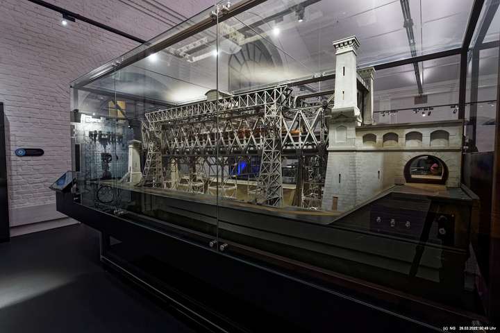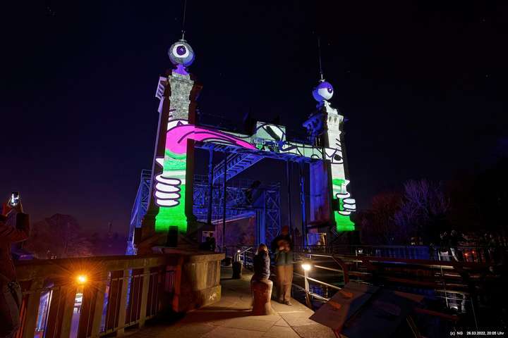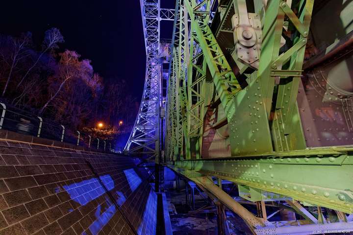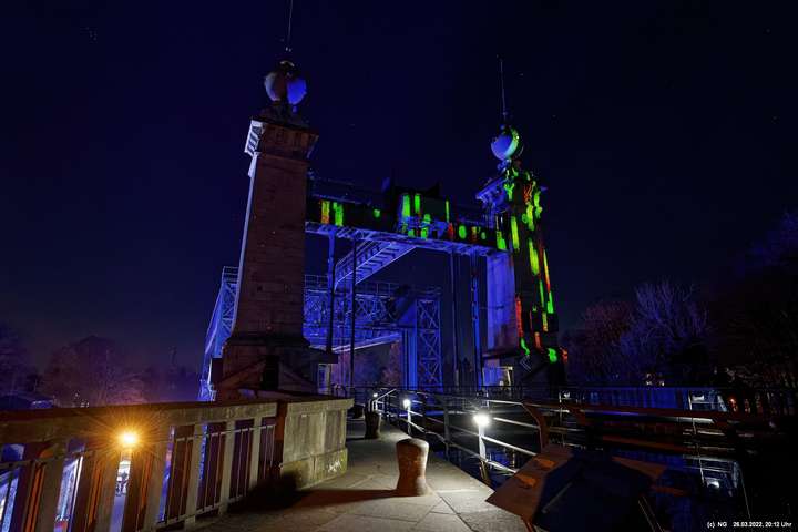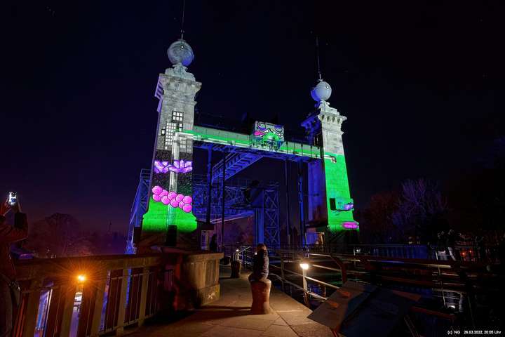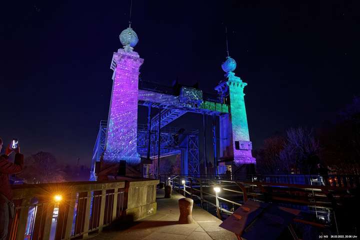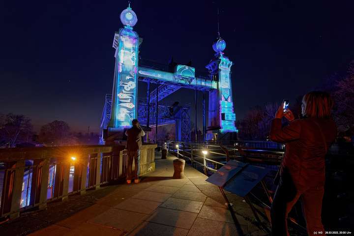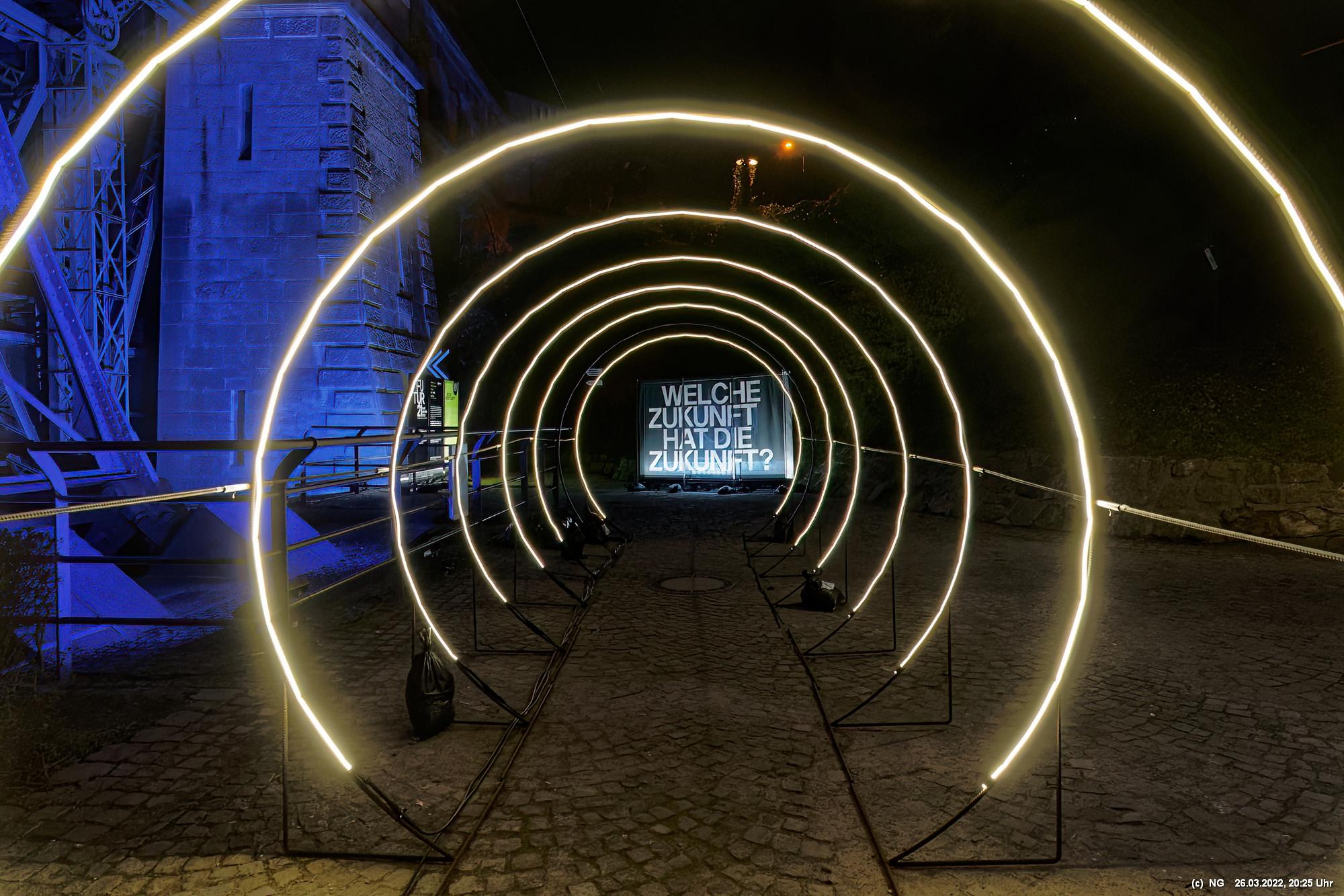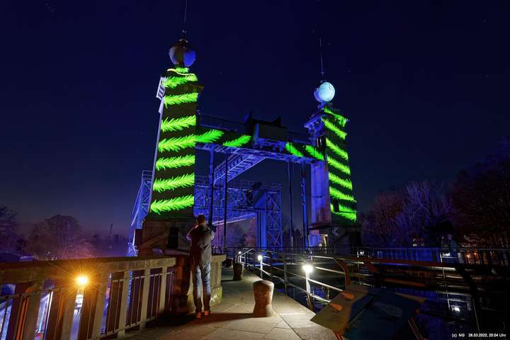 Das ganze Hebewerk war mit Blau angestrahlt. Damit entwickelten sich in Verbindung mit dem normalen Laternenlicht viele ungewöhnliche Farbenspiele - und dass nur für eine Woche. Die künstlerische Bestrahlung der beiden Türme am Oberwasser wurde von der Designerin Cristina Tarquini entwickelt und hat konzentriert in den Bann gezogen. Die Wendeltreppe im Turm führte dann zum Unterwasser. Dort konnte man die gesamte Konstruktion des alten Hebewerks besichtigen. Bei warmen Frühlingswetter eine spannende Geschichte.