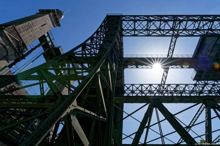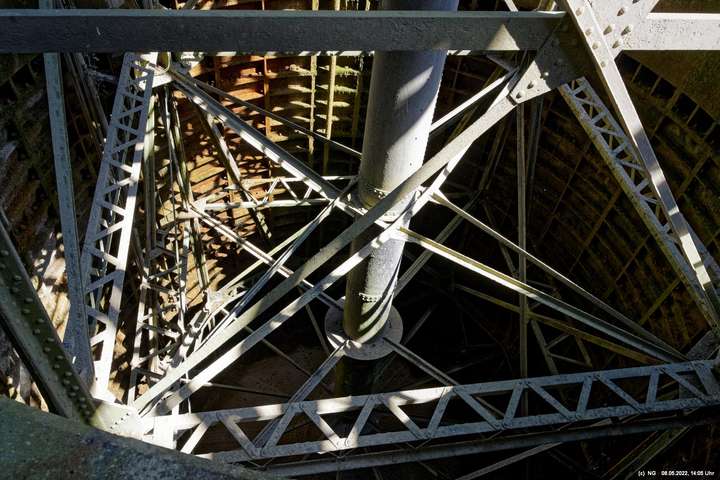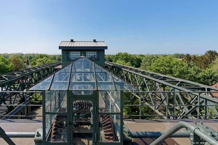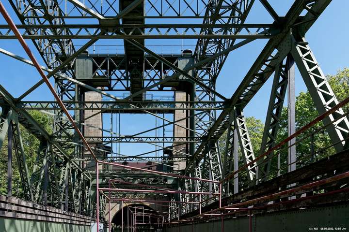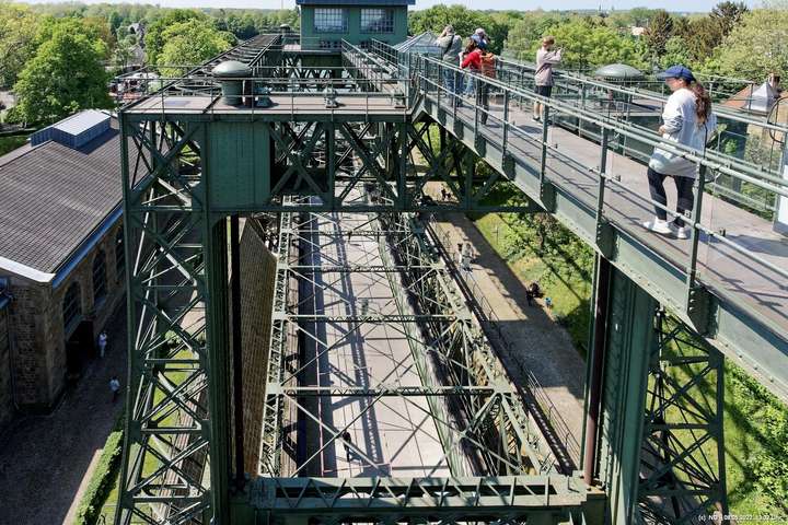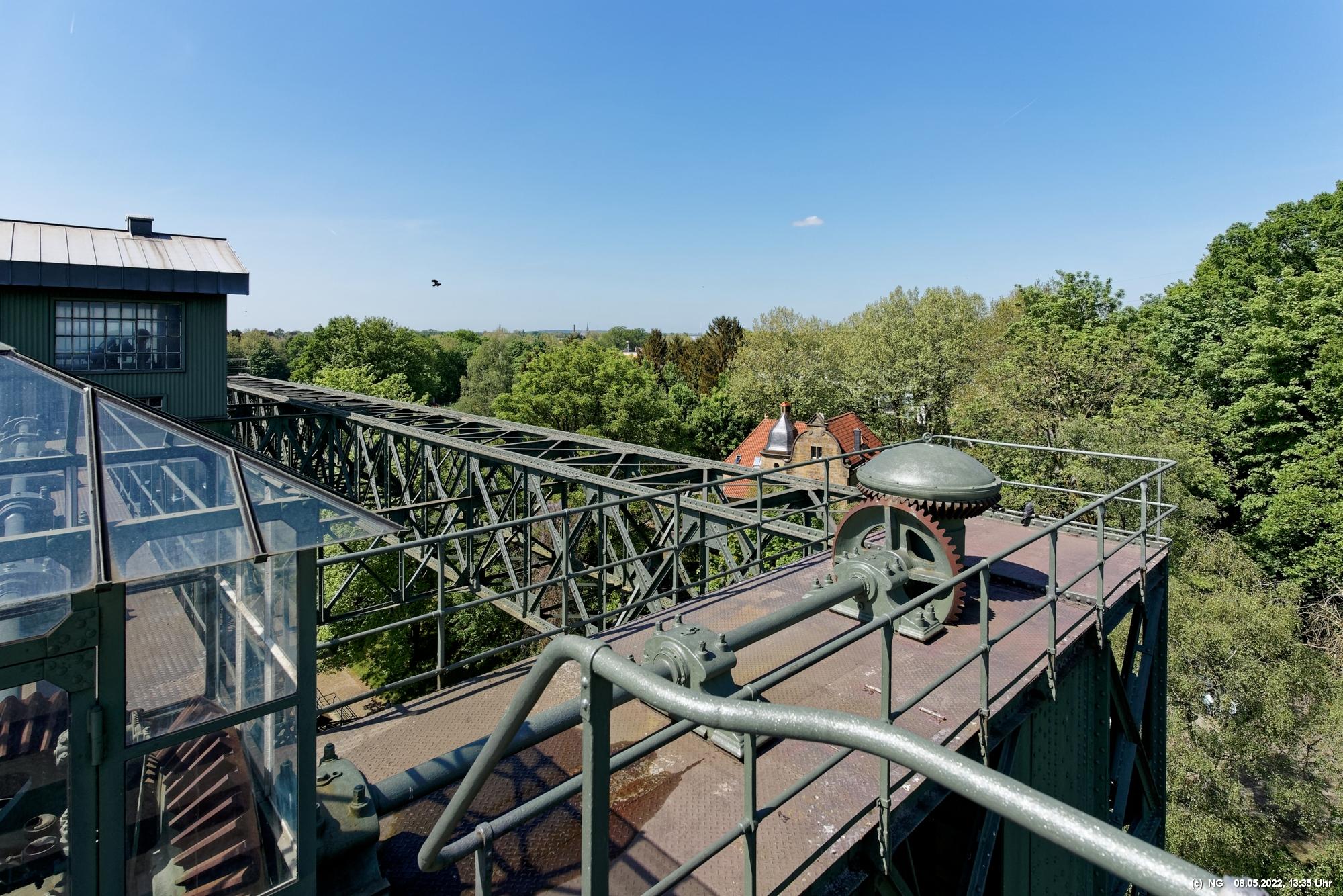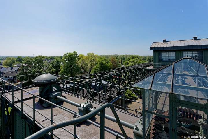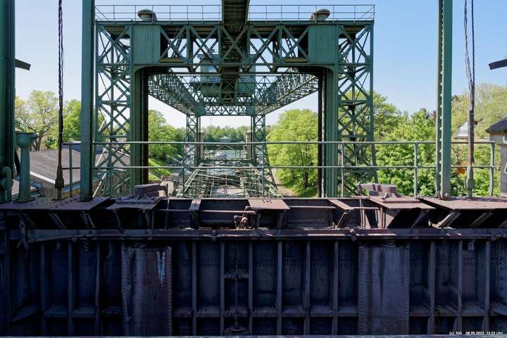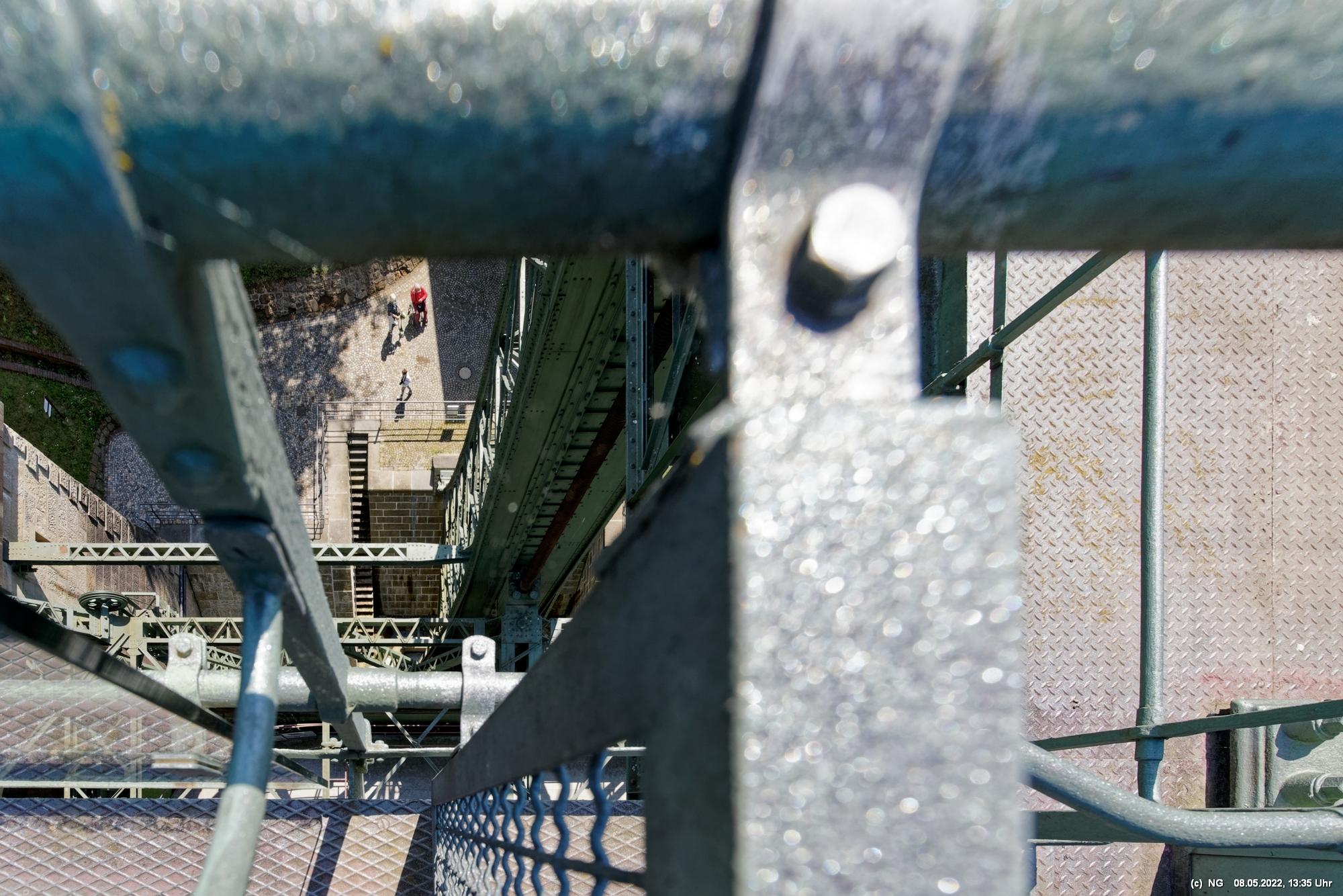 Sommerliches Wetter - blauer Himmel ohne Wolken - und wir krakseln mit bester Führung durch die tollen Konstruktionen des alten Hebewerks. Sogar die 30 m hohen Türme haben wir geschafft und hatten von oben einen herrlichen Ausblick über die grüne Landschaft. Die Funktionsweise der Konstruktion wurde uns anhand von einem Modell sehr gut erklärt - und trotzdem waren wir beeindruckt über die unerklärlich erscheinende Anlage. Gut dass hier der Denkmalschutz funktioniert.