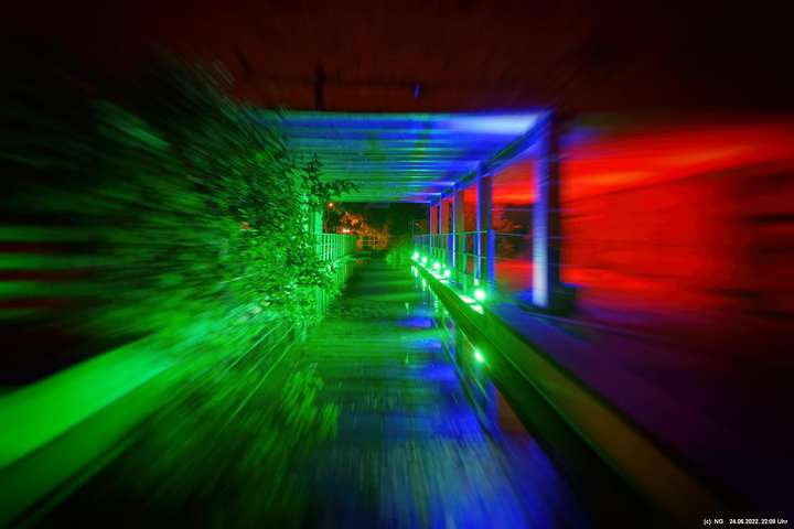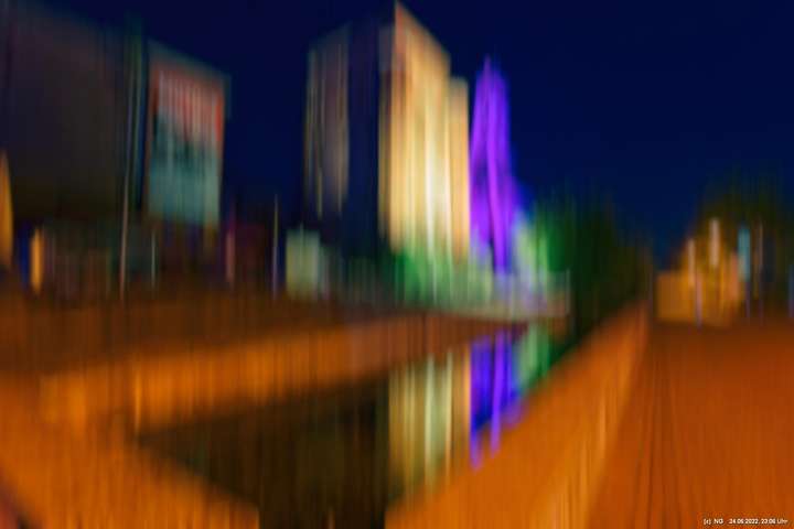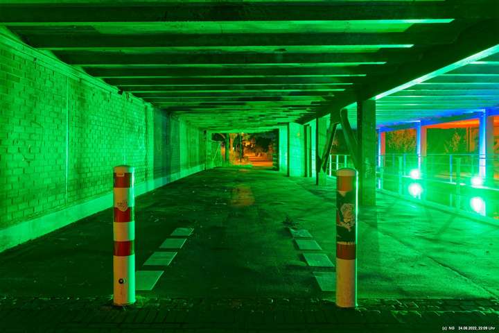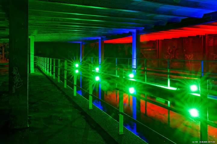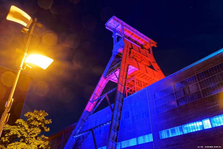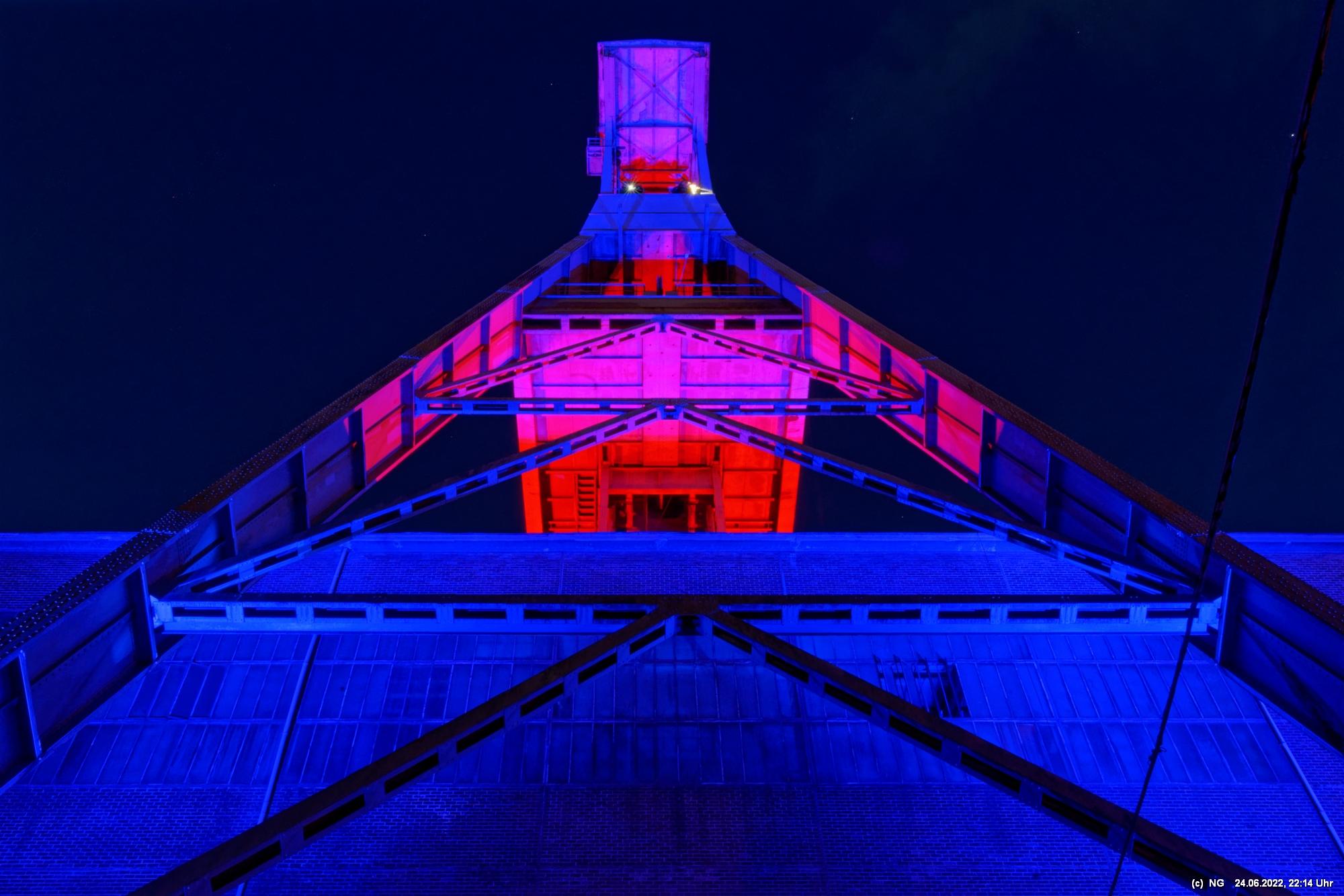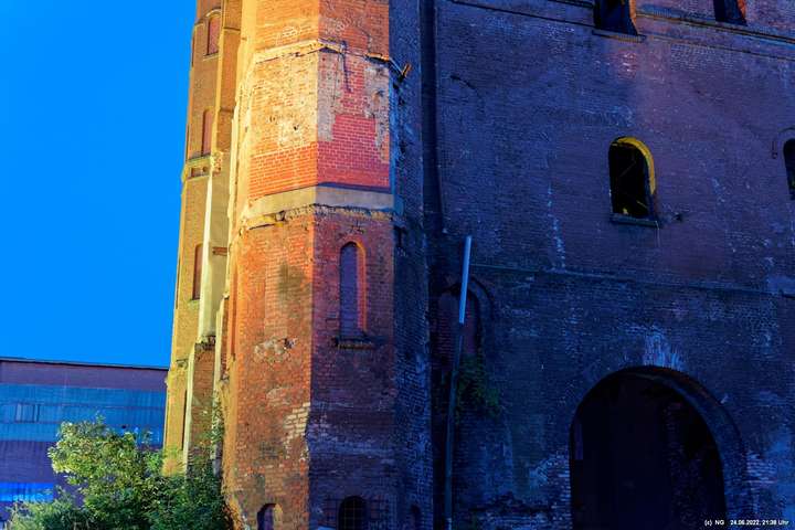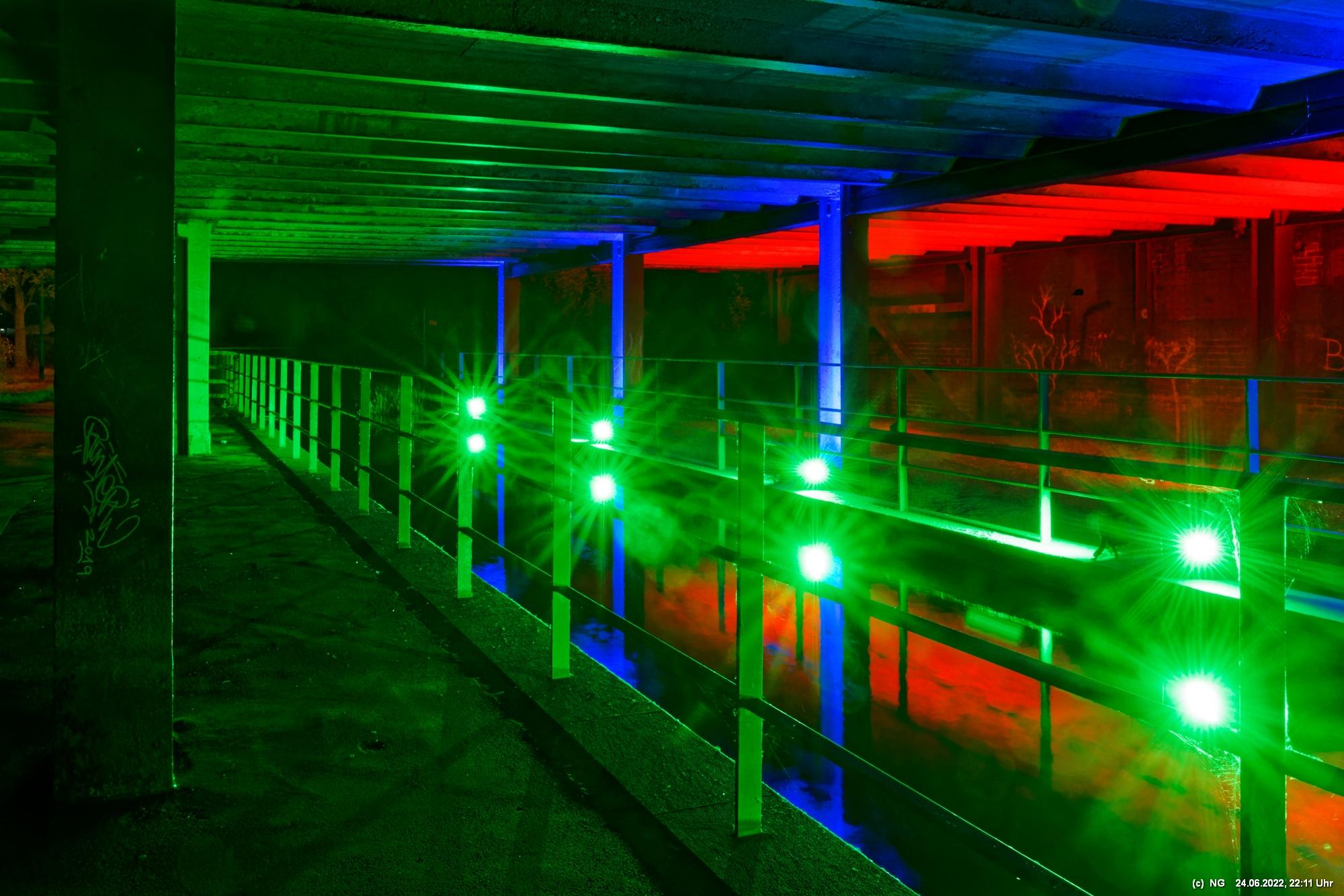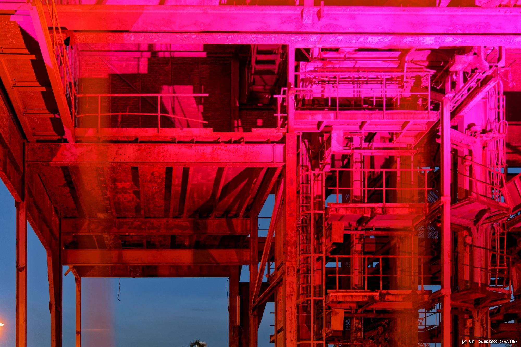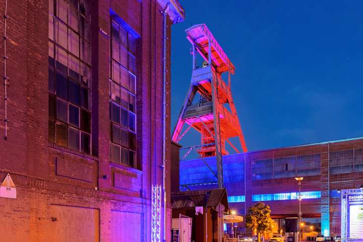 Es ging zur Zeche Ewald und der dortigen „Revierkunst“, wo Beleuchtungsproben für die Extraschicht anstanden. Leider war das irgendwie anders als sonst. Es wurden nur wenige Gebäude beleuchtet. Möglicherweise wurde erst später noch andere dazu geschaltet, aber schon nach Mitternacht war dann doch Schicht.