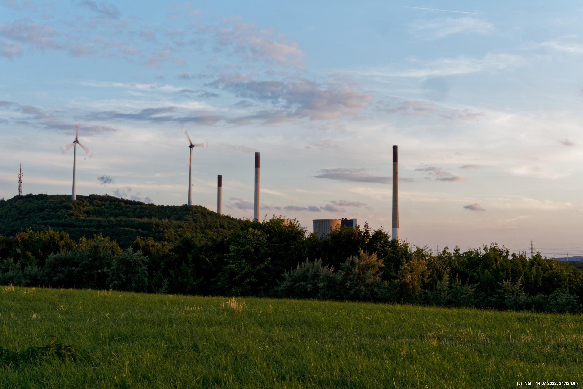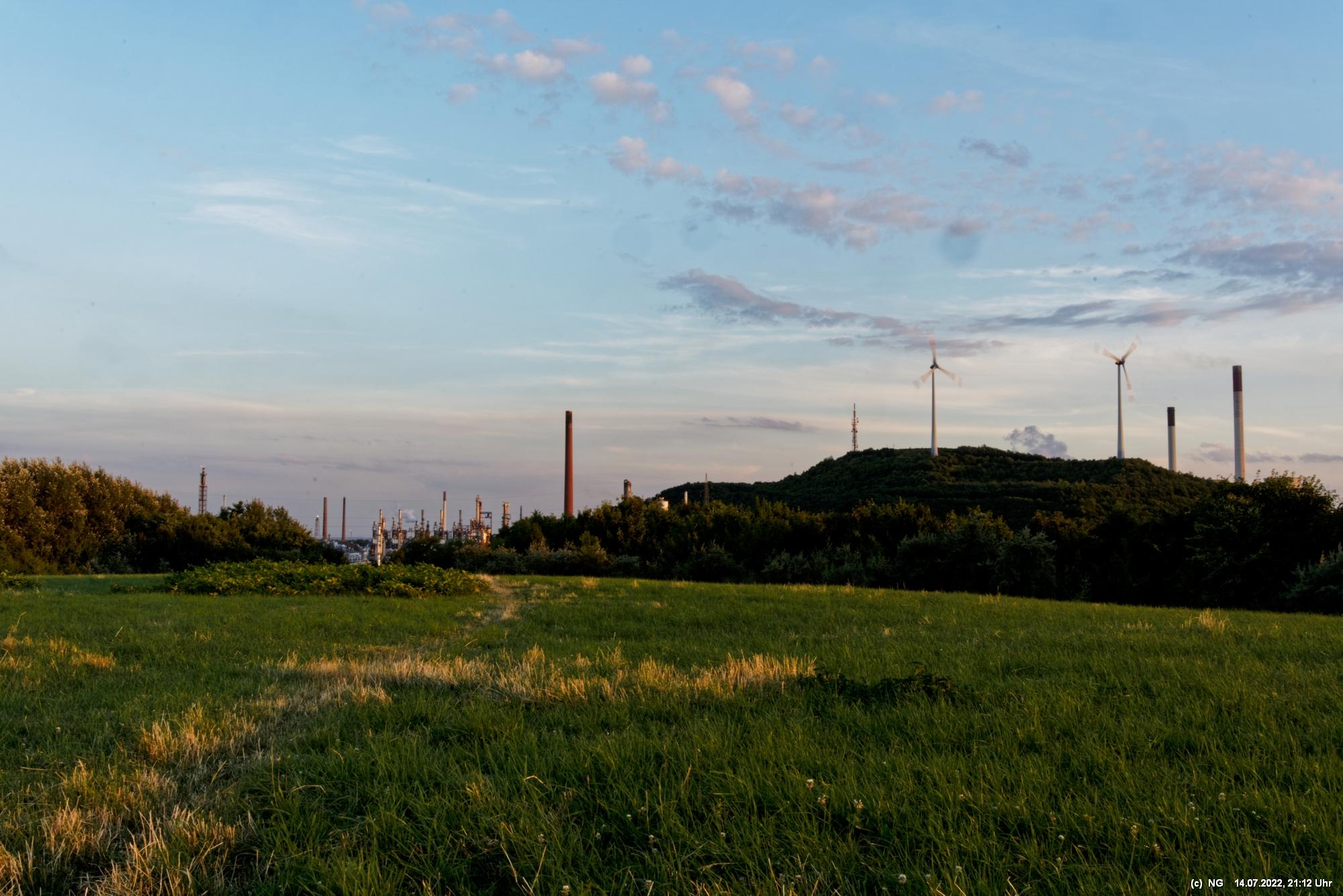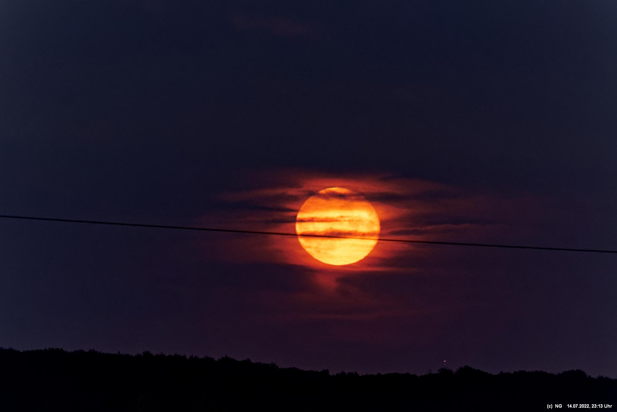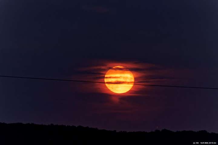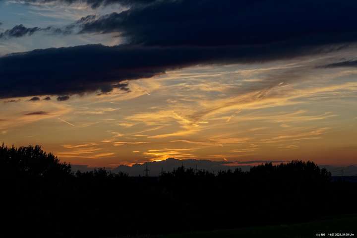 Es ging wieder auf die Halde Scholver Feld (GE-Buer). Gehofft hatte ich auf einen schönen Sonnenuntergang und noch auf den Aufgang des Supermondes. Anfangs waren noch einige Pärchen oben. Als es dunkler und kälter wurde, waren die alle bald verschwunden. Der Sonnenuntergang (21:45 Uhr) fing prächtig an. Doch am entscheidenden Ende schob sich eine kleine Wolkenwand vor die Sonne (wieder einmal). Dann hieß es warten bis 23:00 Uhr zum Mondaufgang. Es war schon dunkel und auch langsam und dem ordentlichen Wind ziemlich frisch. Dann war es so weit. Ich konnte den Mondaufgang sehen, aber es waren Schleierwolken davor. Als die Hoffnung auf freie Mondsicht stieg, kamen dann doch wieder die Wolken. Egal - es war hoch interessant!