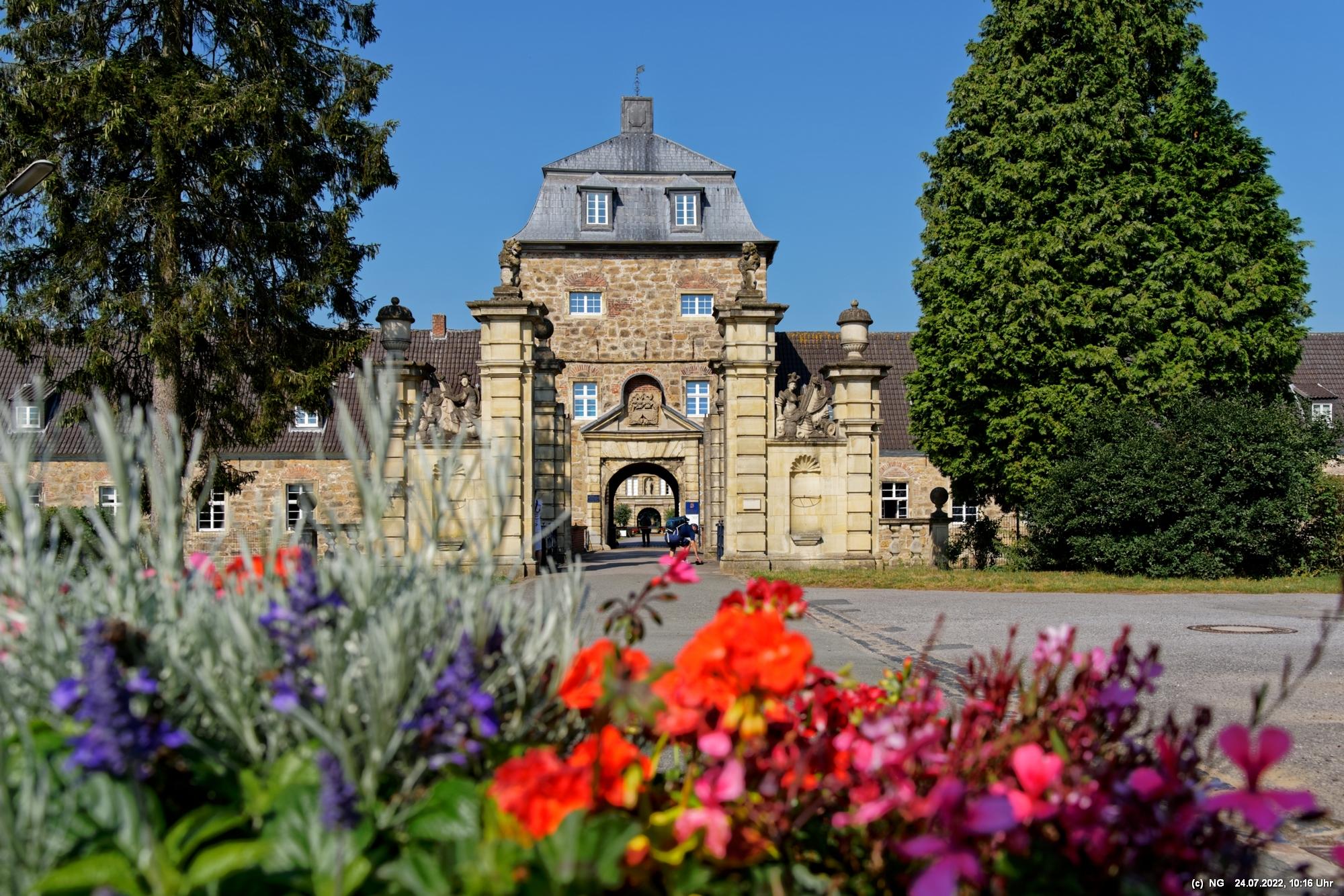 Die barocke Anlage schuf ein unbekannter Baumeister Ende des 17. Jahrhunderts ganz im Stil seiner Zeit aus einer alten Burg. Bauherren waren die Herren von Westerholt-Hackfurt, Nachfolger der Familie Lembeck. Die Allee führt in gerader Linie über Brücken durch Torbögen und Höfe bis in den Schlosspark.