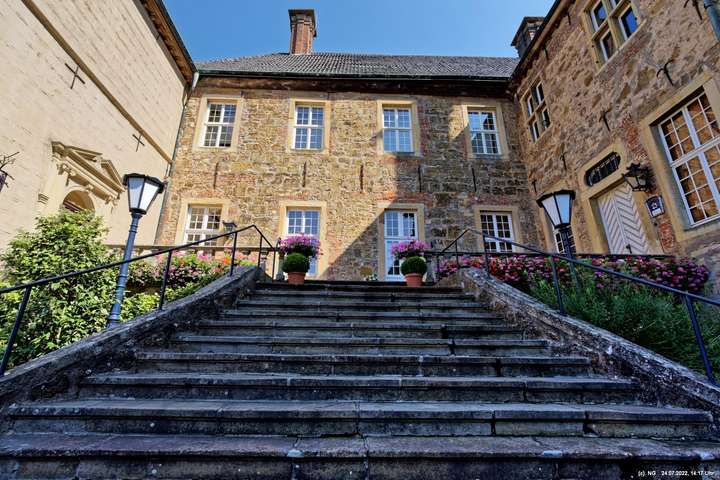 Umgeben von Wäldern, Wiesen und Feldern des Naturparks Hohe-Mark liegt das Wasserschloss Dorsten-Lembeck.