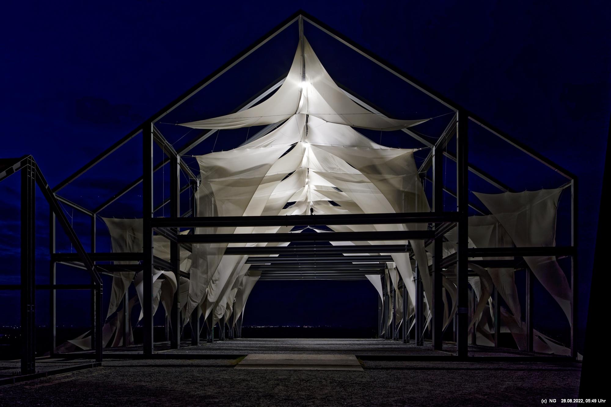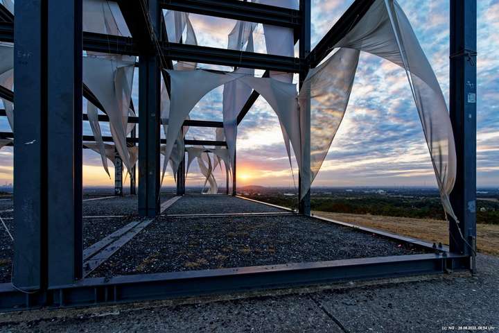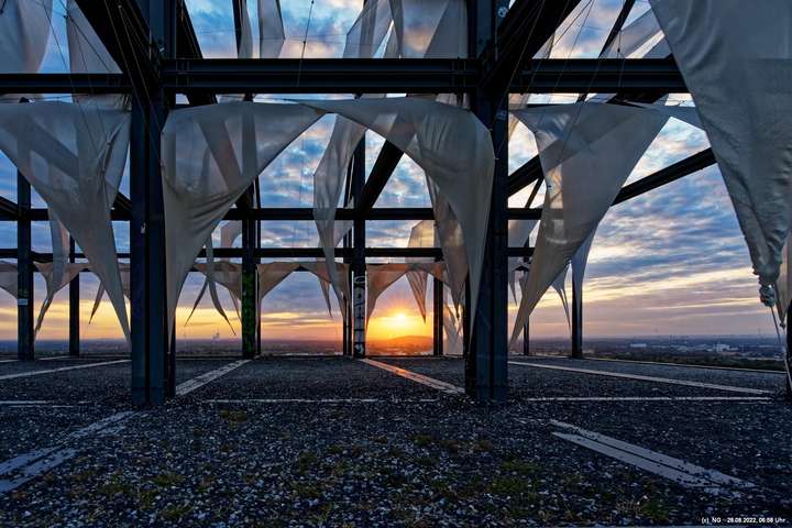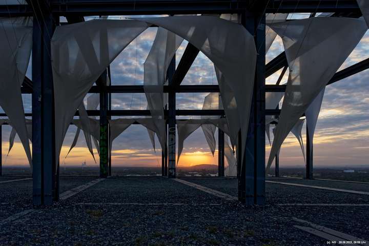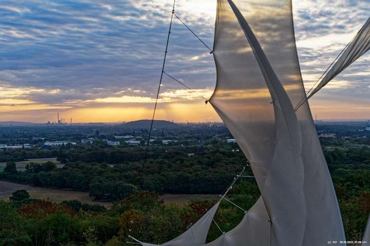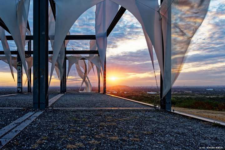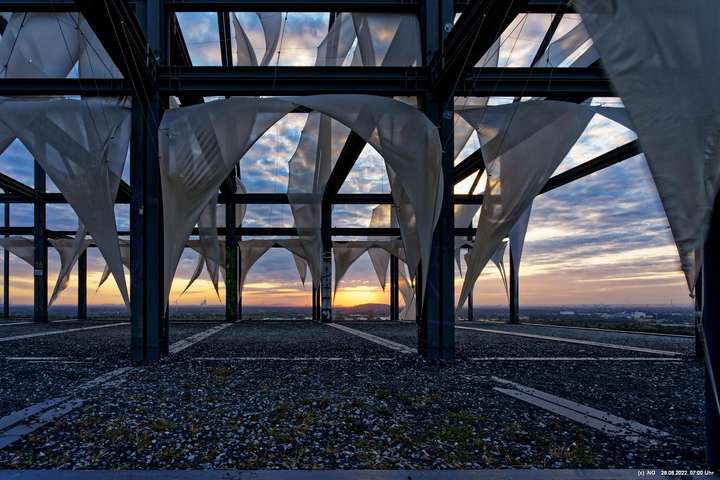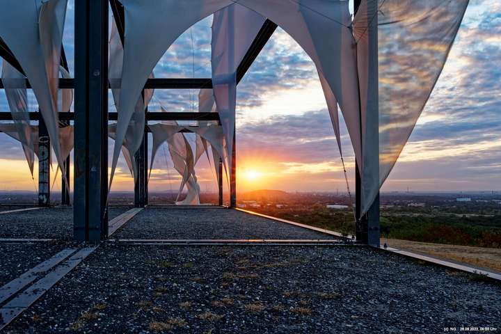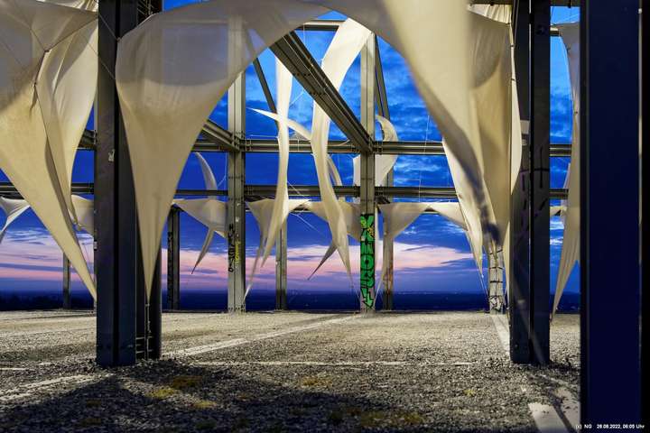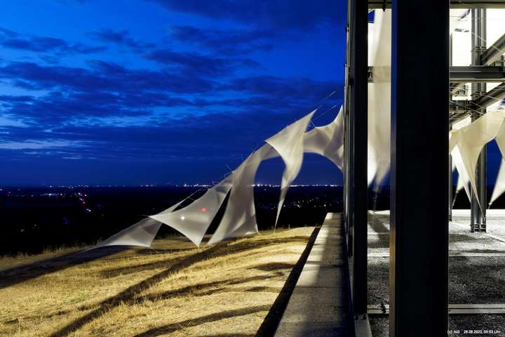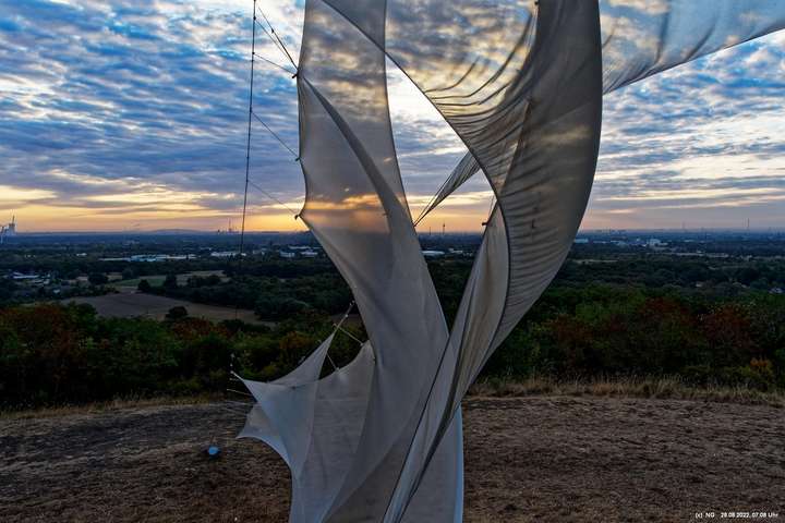 Oben auf der Halde gibt es die Tuchinstallation "Kathedrale des Windes" von Jens J. Meyer (Essen) zu sehen.